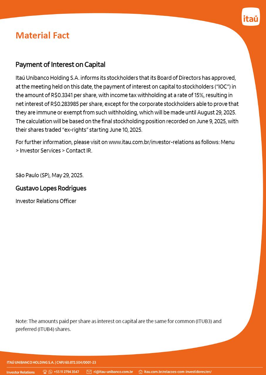 MATERIAL FACT - PAYMENT OF INTEREST ON CAPITAL