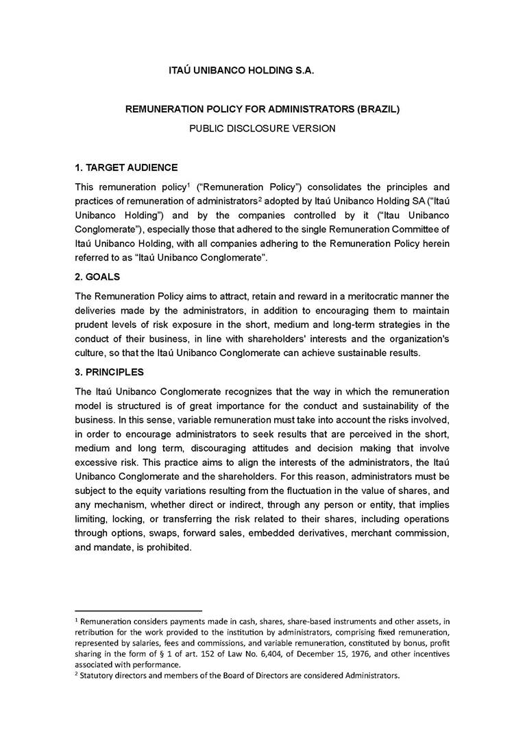 REMUNERATION POLICY FOR ADMINISTRATORS (BRAZIL)