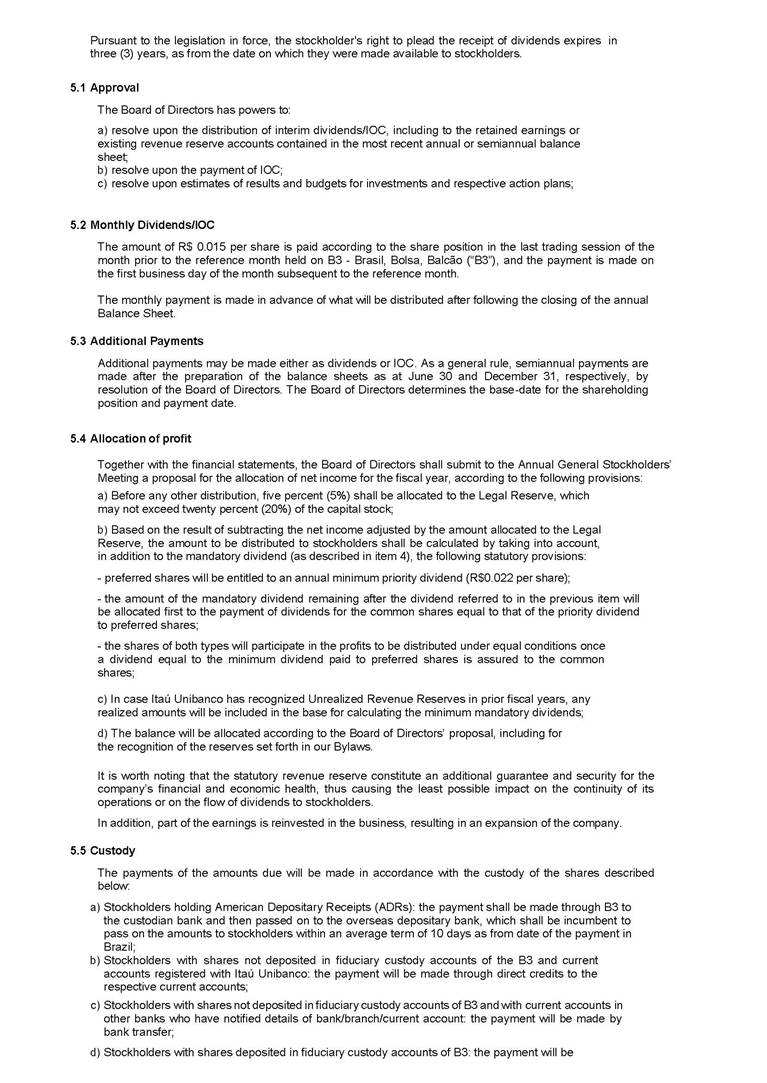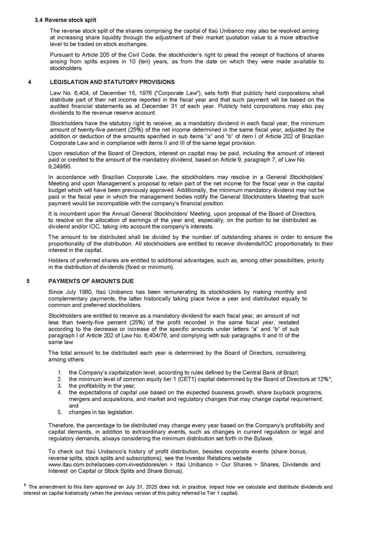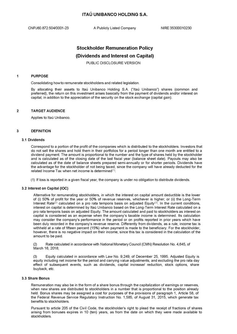 Stockholder Remuneration Policy (Dividends and Interest on Capital)