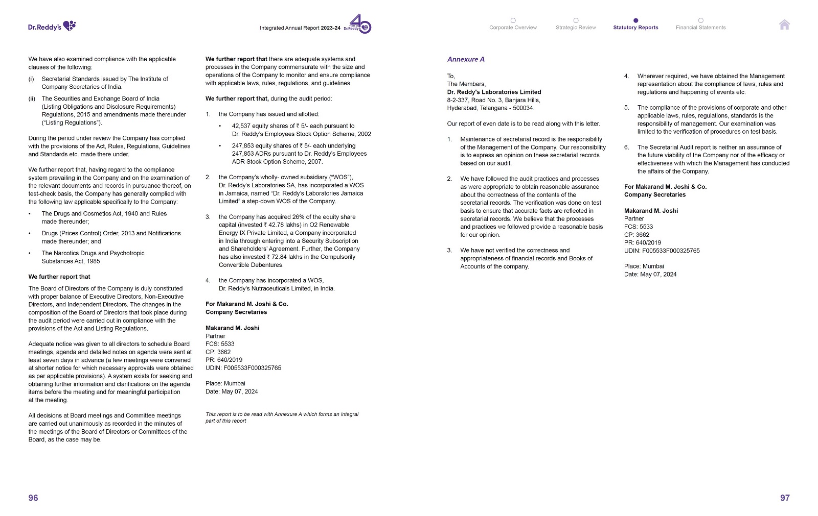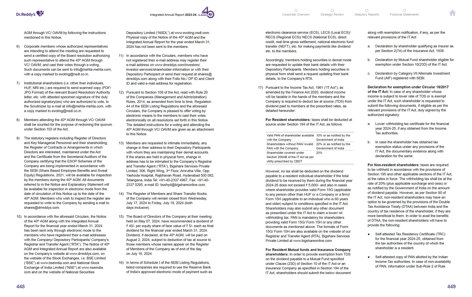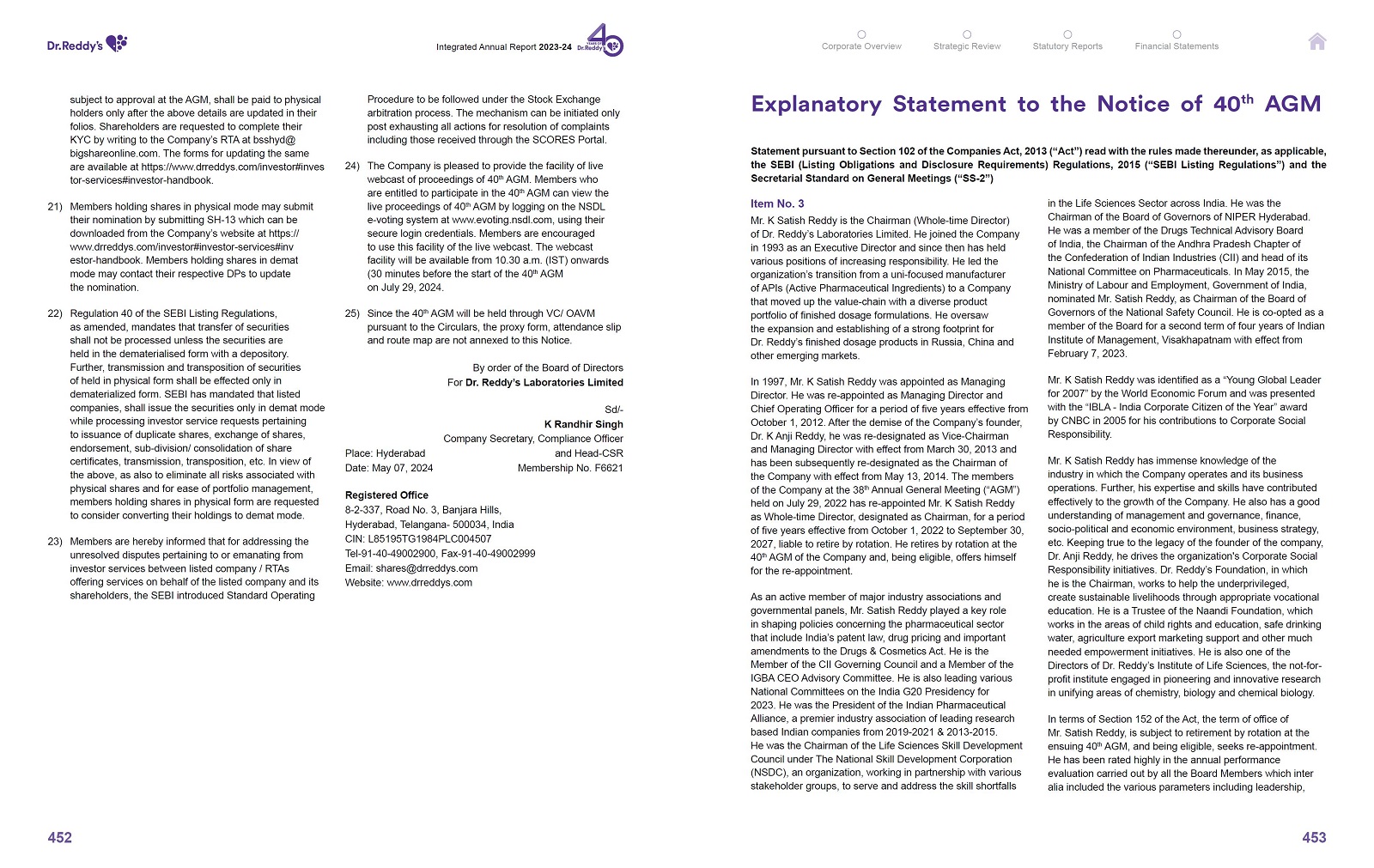 Pursuant to the provisions of the Companies Act 2013, rules framed thereunder and the SEBI (Listing Obligations and Disclosure Requirements) Regulations, 2015, as amended from time to time, we send herewith Notice of the 40th AGM of the Company and the Integrated Annual Report 2023-24.