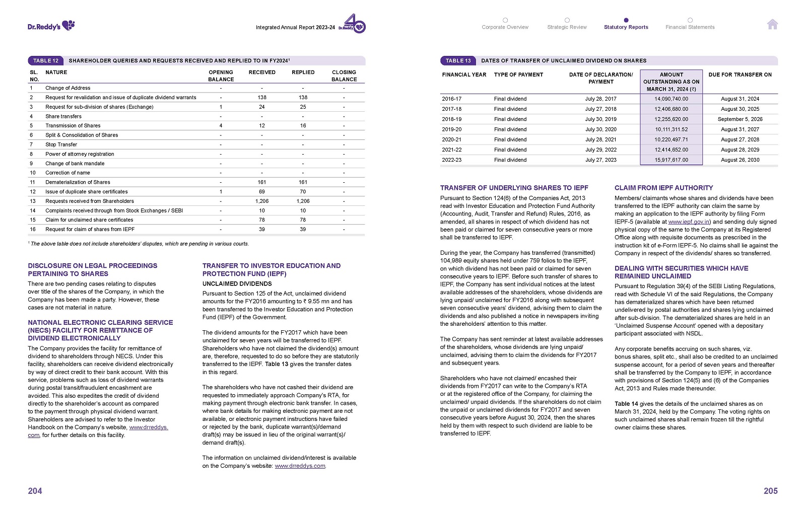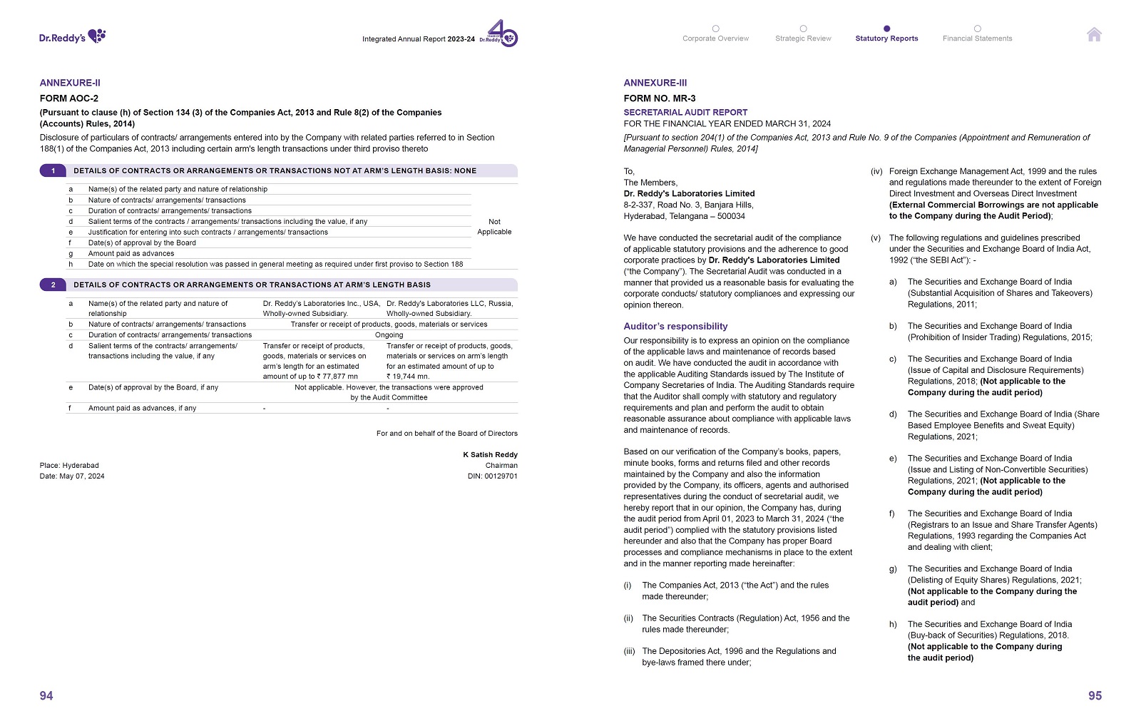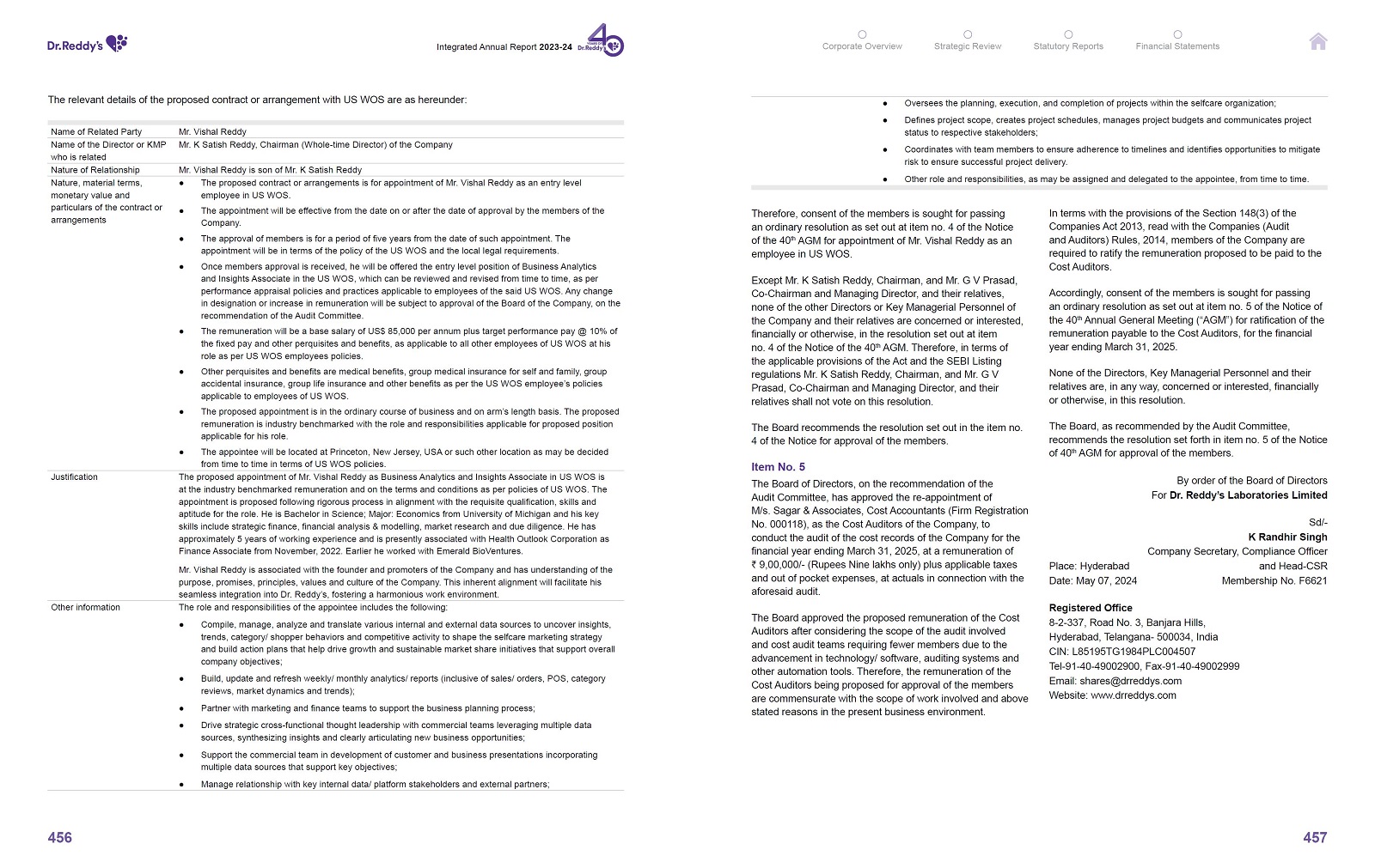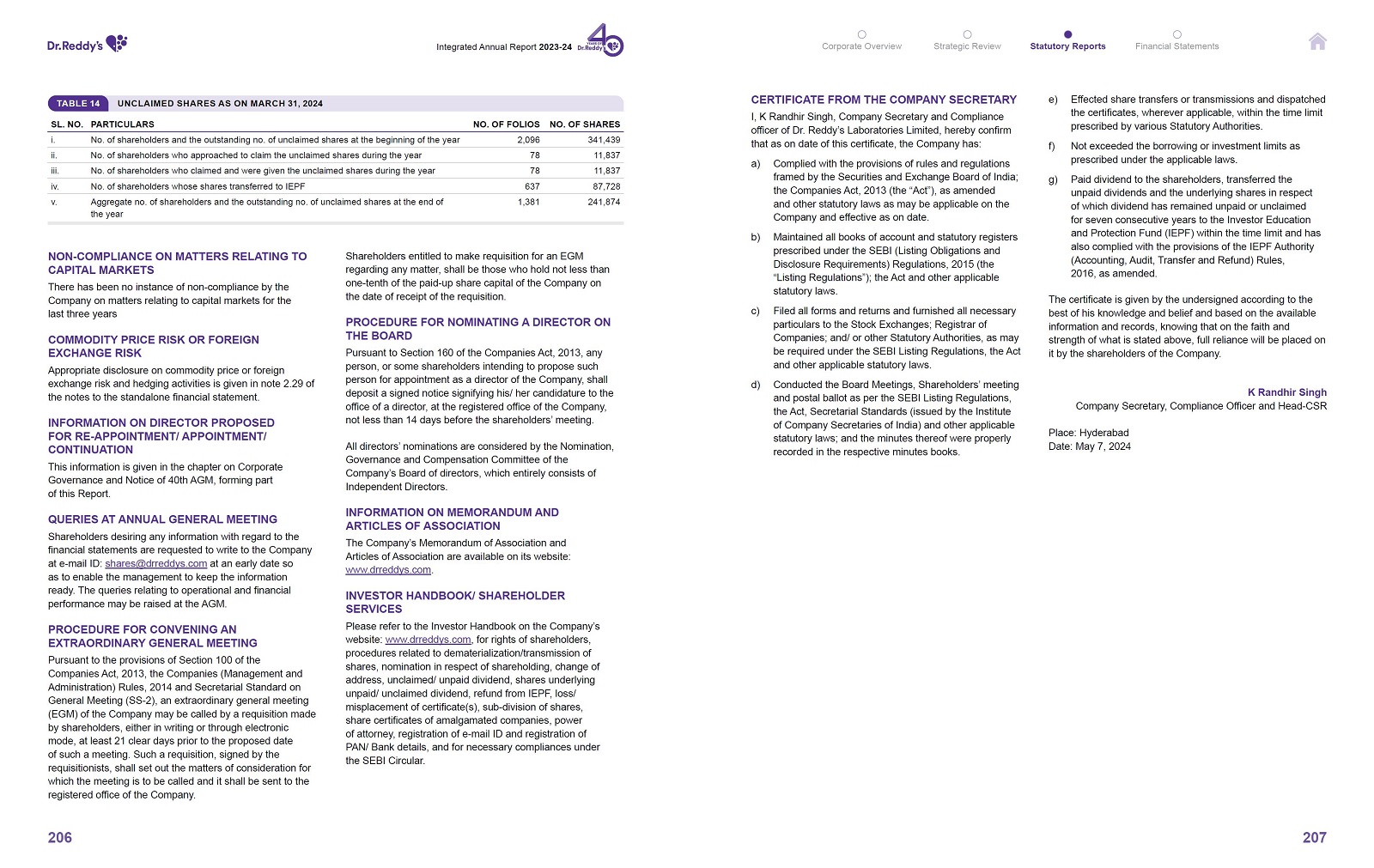 Pursuant to the provisions of the Companies Act 2013, rules framed thereunder and the SEBI (Listing Obligations and Disclosure Requirements) Regulations, 2015, as amended from time to time, we send herewith Notice of the 40th AGM of the Company and the Integrated Annual Report 2023-24.