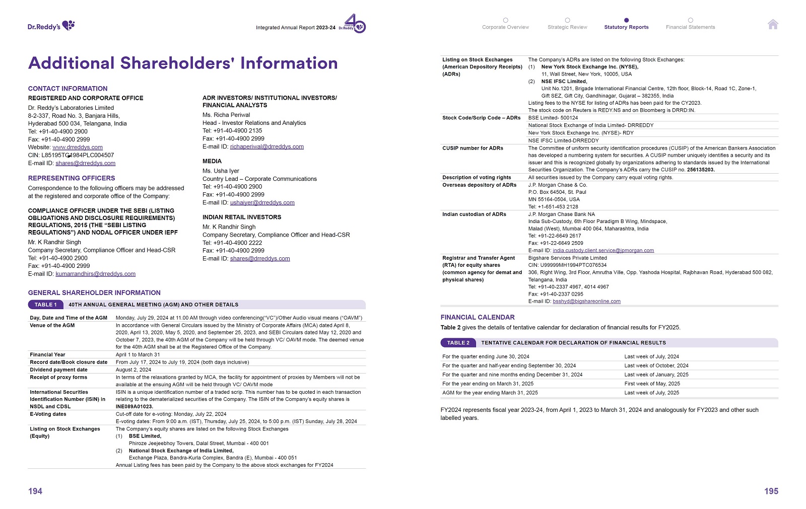 National Stock Exchange of India Ltd. (Scrip Code: DRREDDY-EQ)