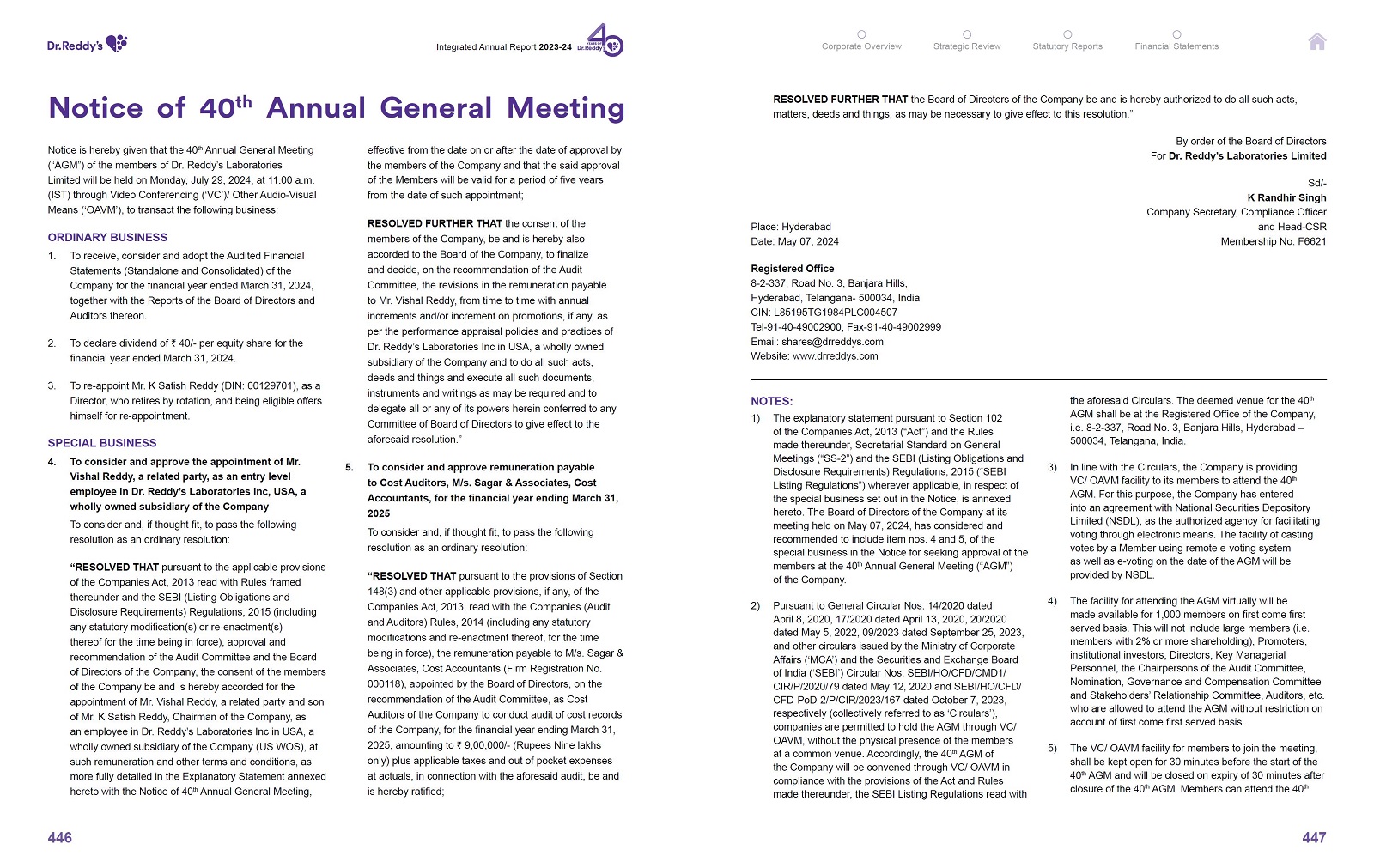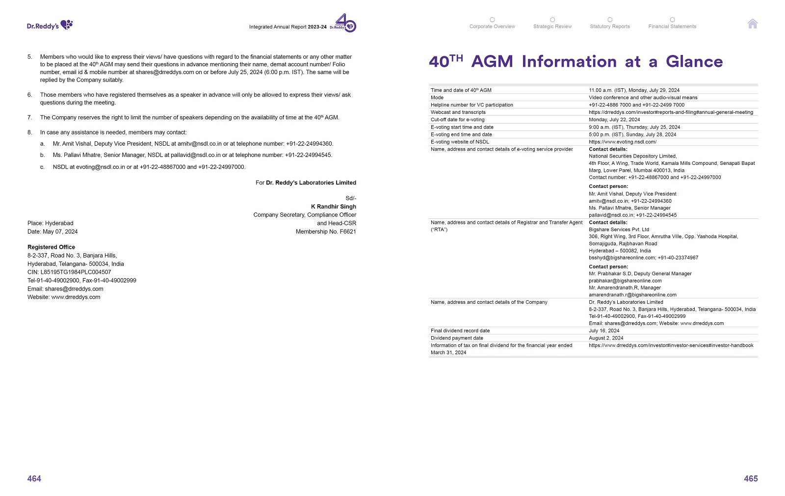 The 40th AGM of the members of the Company is scheduled to be held on Monday, July 29, 2024, through Video conference/ Other Audio-Visual Means (OAVM).