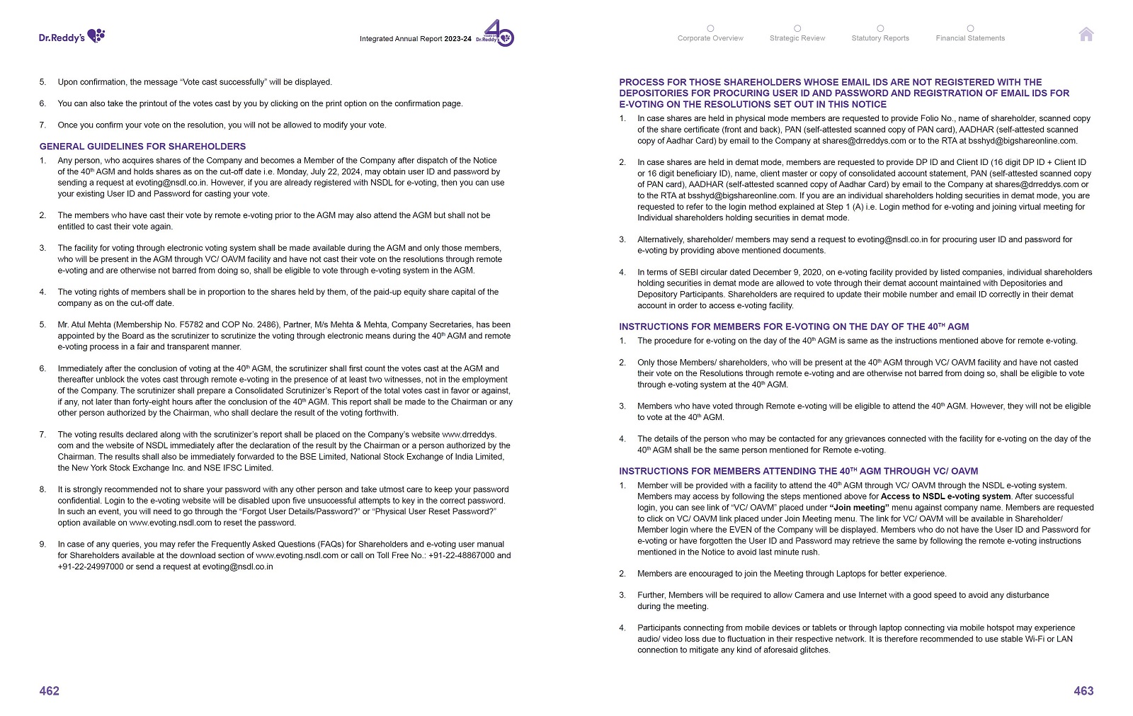 E-voting start time and date 9.00 a.m. IST, Thursday, July 25, 2024