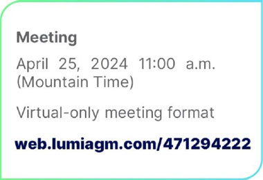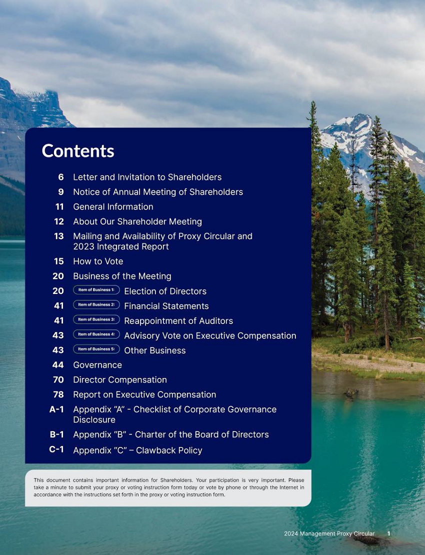Attached are the Notice of Annual Meeting of Shareholders and the Management Proxy Circular. The Management Proxy Circular contains details of the business to be conducted at the Meeting and provides information with respect to our executive compensation program, as well as information on our leading governance practices. During the Meeting, we will receive our audited consolidated financial statements for the year ended Dec. 31, 2023, and the auditors’ report; elect the directors; reappoint the auditors and authorize the directors to fix their remuneration; and participate in the advisory vote on our approach to executive compensation (say on pay).