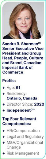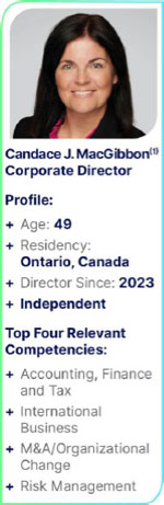 Finally, we would like to extend our gratitude to the Honourable Rona Ambrose for her service to the Company. She has announced that she will not stand for re-election and will retire from the Board following the Meeting. She has been a valuable contributor to our Board since 2017 and we thank her for her leadership and insights during her tenure, especially as Chair of the Governance, Safety and Sustainability Committee.