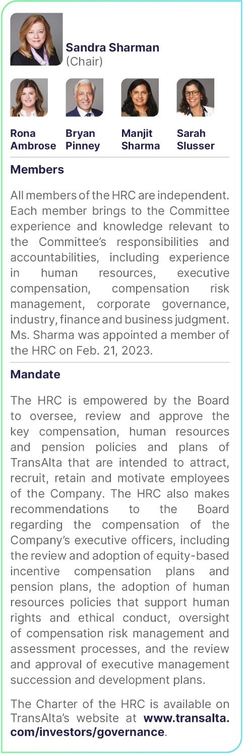 In particular, this Proxy Circular contains forward-looking statements including, but not limited to, forward-looking statements pertaining to: the business and procedure of the Meeting, the composition of our Board of Directors (the "Board") following the Meeting; the Company’s strategic plan and targets, including our current sustainability targets (as defined below) and the practices of the Company relating to Board and workplace diversity targets; the strategic objectives of the Company and that the execution of the Company’s strategy will realize value for Shareholders; optimizing and diversifying our existing assets and further expanding our overall portfolio in Canada, the US and Australia; investments in a range of clean and renewable technologies; our executive compensation philosophy and practices, including the mix of short- and long-term incentives; the Company’s governance policies; the Company’s internal talent pipeline; and the Company’s pension plans.