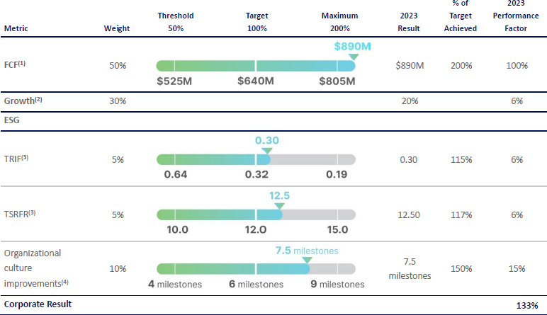 See the “Environmental, Social and Governance” section for further information and the illustration below which shows our results as of Dec. 31, 2023.