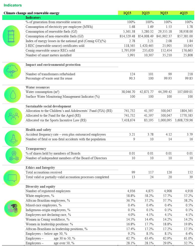 The Company's maintenance in the yearbook demonstrates Cemig's continuous commitment to adopting the best ESG practices, which are determining factors for sustainable growth, with the purpose of creating value for its shareholders, employees, suppliers, and society.