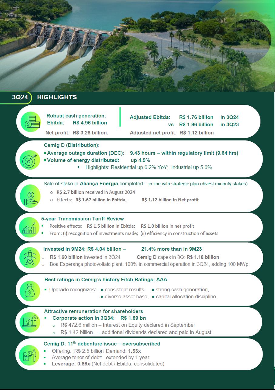1.Notice to the Market dated October 11, 2024 – Fitch upgrades CEMIG ratings to “AAA”