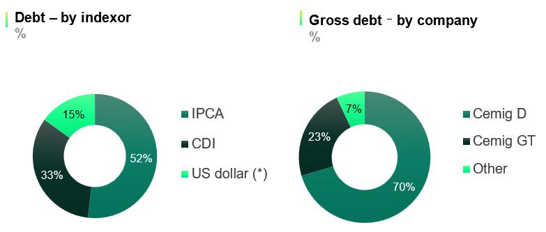 Such payment refers to the issue of Eurobonds by Cemig GT, between late 2017 and mid-2018, totaling US$1.5 billion, with a maturity of seven years, semi-annual interest payment, and principal payment in December 2024. Aiming to protect against foreign exchange variation, Cemig GT contracted a hedge transaction through a combination of derivative operations. To take targeted actions for the prudent management of its liabilities and reduce foreign currency exposure risks, the Company started a process of partial buybacks between 2021 and 2023, totaling US$1.119 million.