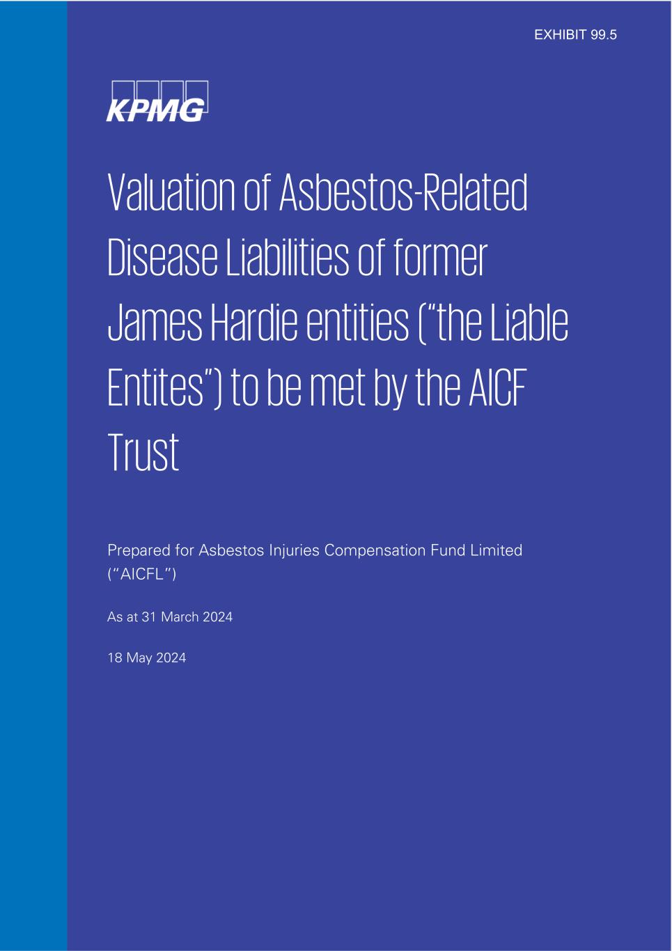 Valuation of Asbestos-Related Disease Liabilities of former James Hardie entities (“the Liable Entites”) to be met by the AICF Trust Prepared for Asbestos Injuries Compensation Fund Limited (“AICFL”) As at 31 March 2024 18 May 2024 EXHIBIT 99.5