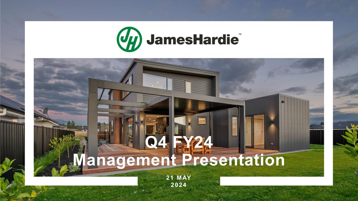Page 23 J A M E S H A R D I E Q 4 F Y 2 4 R E S U L T S JAMES HARDIE – A GLOBAL GROWTH COMPANY Responsible Corporate Citizenship Demand Creation Brand of Choice Innovative Solutions Localized Manufacturing Experienced Management Team Strong Cash Generation & Balance Sheet Attractive Returns Premium Products and Services Hardie Operating System “HOS” 1. CAGR for the time period FY14 to FY24 2. Comparison of average Global Operating Cash Flow FY22-FY24 and FY12-FY14 Homeowner Focused, Customer and Contractor Driven 10% 14%3x 45% Global Net Sales 10 Year CAGR1 Global Adj. ROCE Avg. FY20-FY24 Global Operating Cash Flow 3 Year Avg FY24 vs FY142 Global Adj. Net Income 10 Year CAGR1