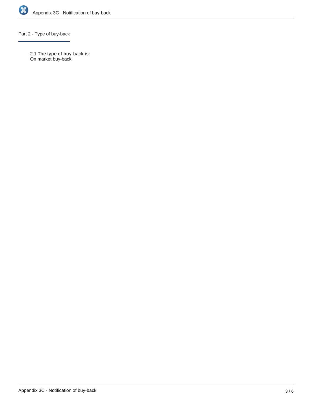 Appendix 3C - Notification of buy-back Appendix 3C - Notification of buy-back 3 / 6 Part 2 - Type of buy-back 2.1 The type of buy-back is: On market buy-back