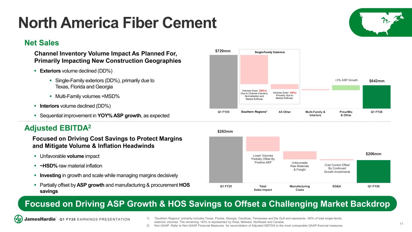 10 Q1 FY26 EARNINGS PRESENTATION Q1 FY26 Financial Results Delivered Results Largely Consistent with Our Expectations Despite Headwinds Across Each of Our Markets Net Sales $900mm (9%) Adjusted EBITDA1 $226mm (21%) Adjusted EBITDA Margin1 25.1% (370bps) Adjusted Diluted EPS1 $0.29 (28%) Free Cash Flow1 $104mm +88% 1) Non-GAAP. Refer to Non-GAAP Financial Measures for reconciliation of Adjusted EBITDA, Adjusted EBITDA Margin, Adjusted Diluted EPS and Free Cash Flow to the most comparable GAAP financial measures.