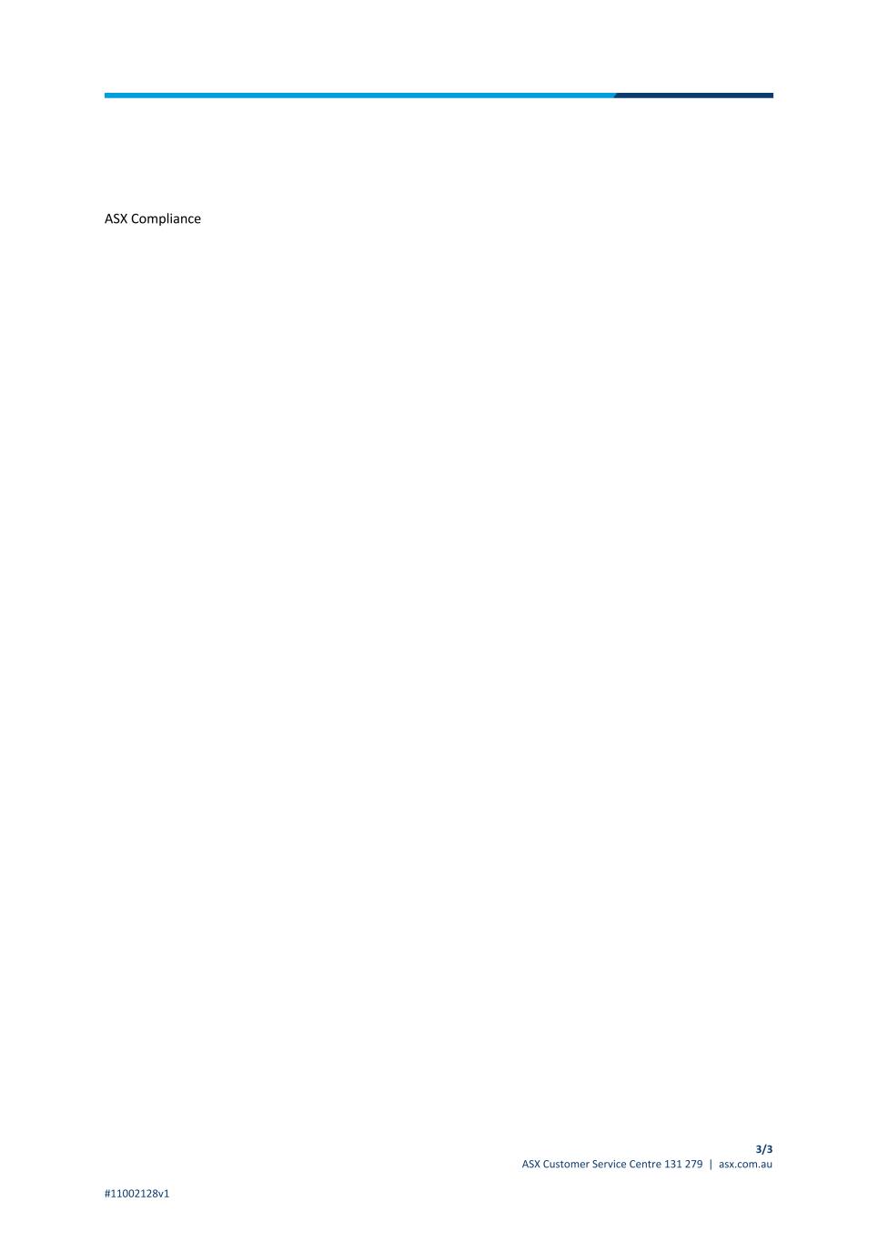 3/3 ASX Customer Service Centre 131 279 | asx.com.au #11002128v1 ASX Compliance