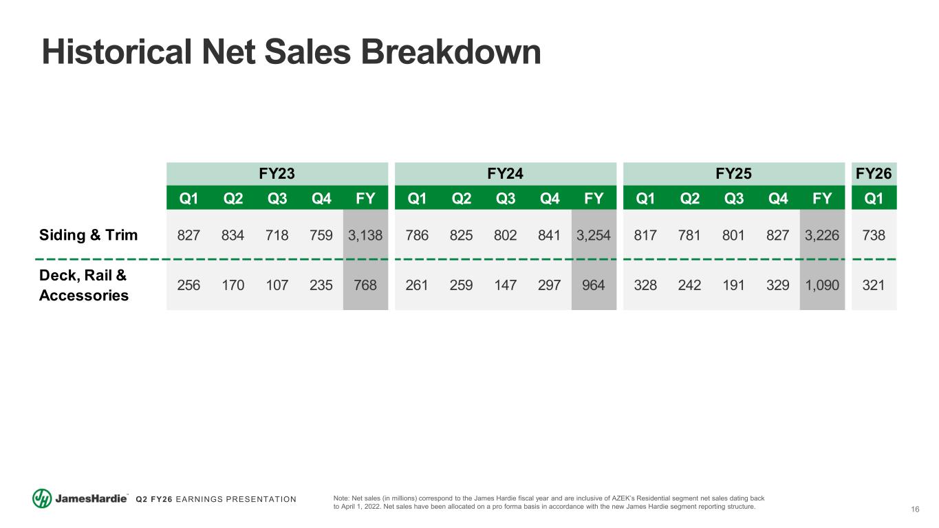 15 Q2 FY26 EARNINGS PRESENTATION A Leader in Exterior Home & Outdoor Living Solutions A Product Portfolio Consisting of Best-in-Class Brands Across Attractive Categories A Winning Strategy to Drive Profitable Growth in R&R and New Construction The Right Team to Enable Our Growth, Innovation and Continuous Improvement Plans Globally A Robust Financial Profile and Synergy Opportunity Driving Shareholder Value Creation