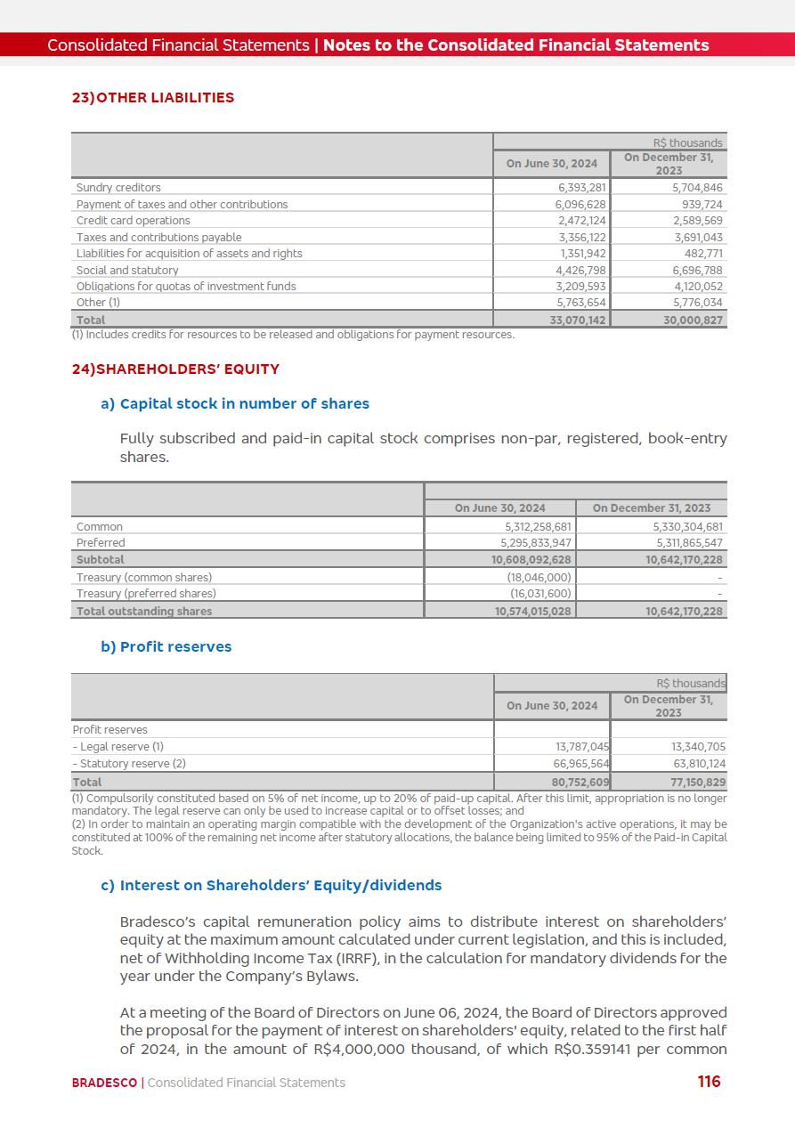 6-K 1 bbdbook2q24_6k.htm 6-K
