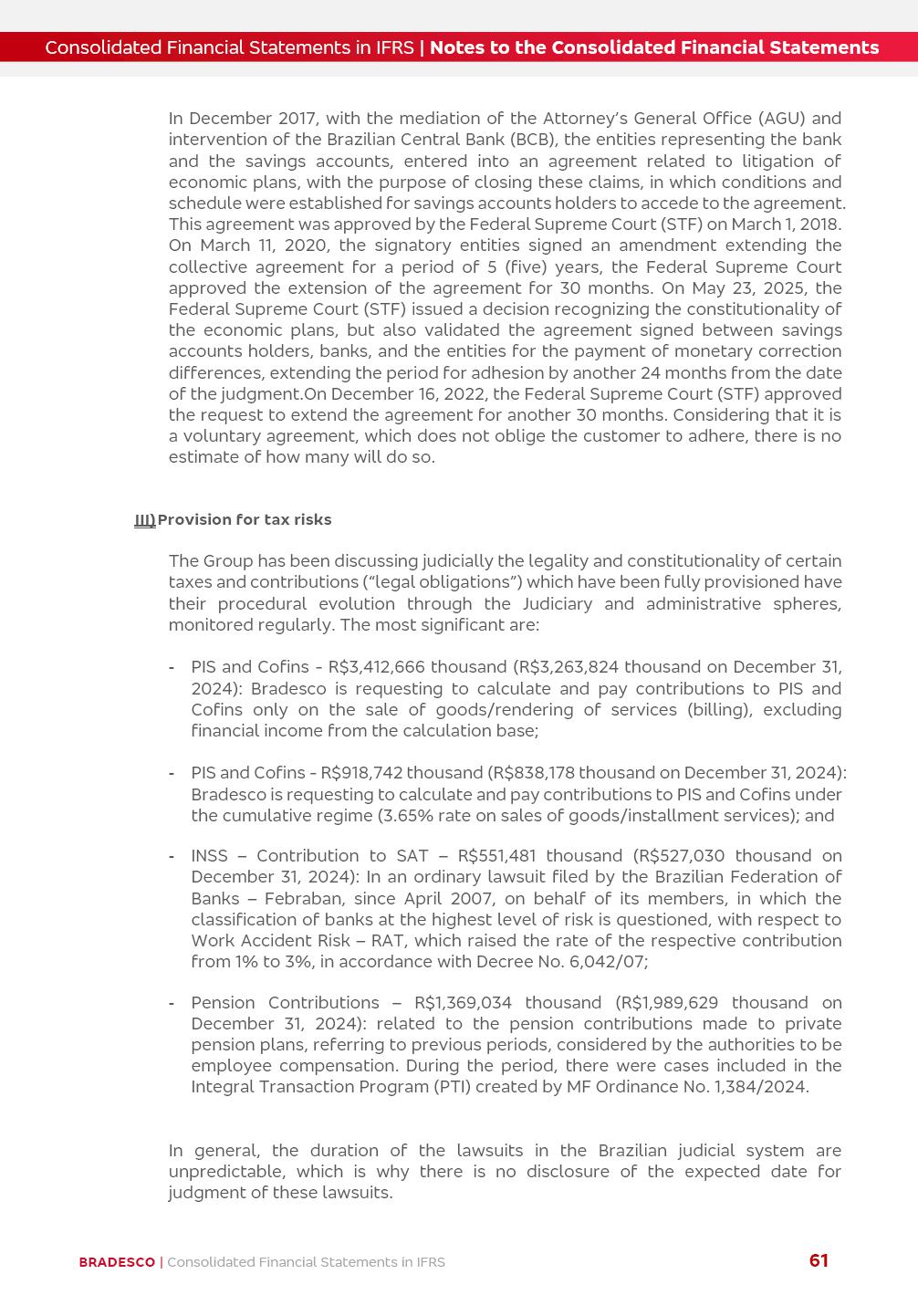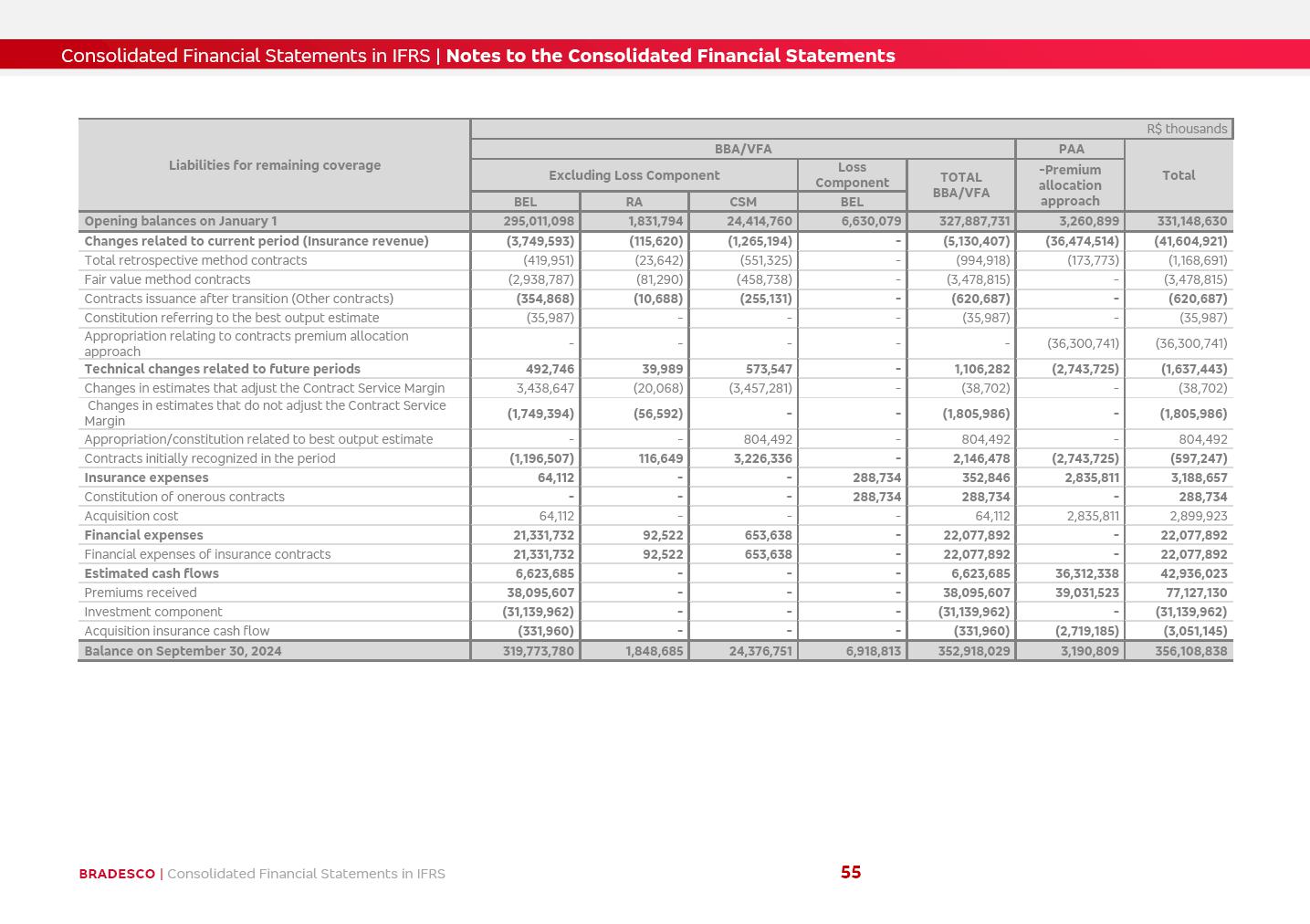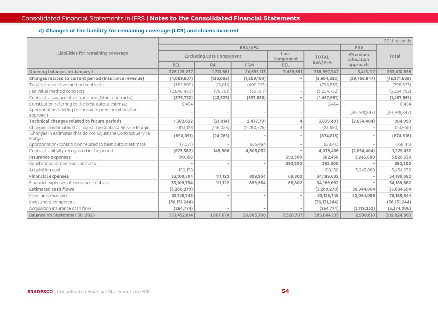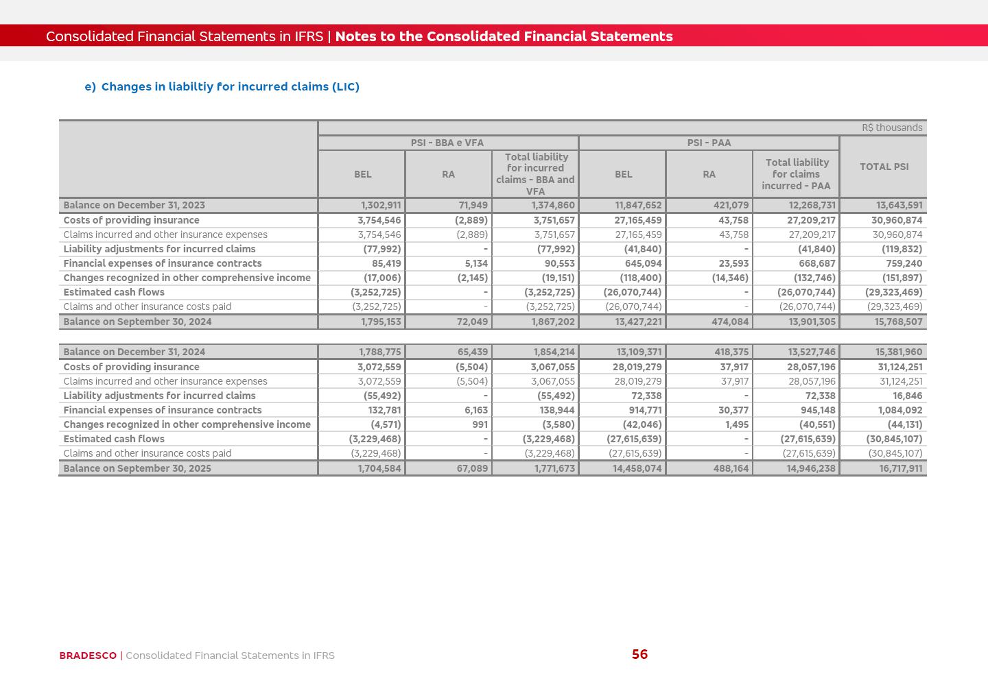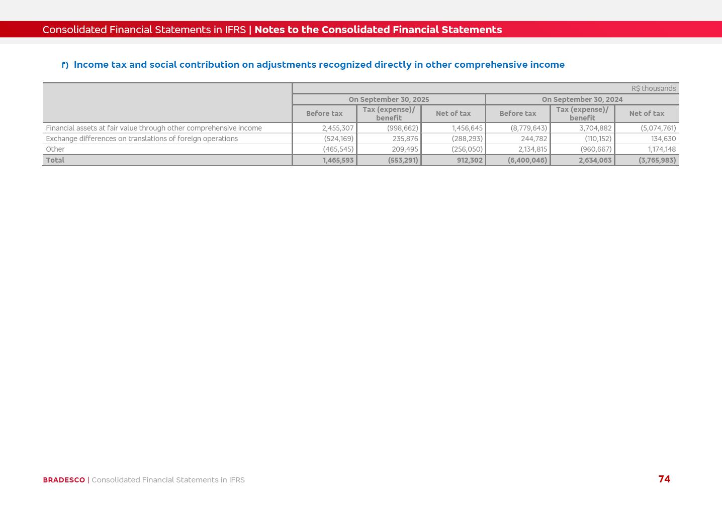 Consolidated Financial Statements 3Q25 in accordance with International Financial Reporting Standards (IFRS) issued by the International Accounting Standards Boards (IASB) Management Report BRADESCO | Management Report | Consolidated Financial Statements in IFRS 2 Dear Shareholders, We hereby present the Consolidated Financial Statements of Banco Bradesco S.A. related to the first nine months of 2025. We follow all International Financial Reporting Standards (IFRS) practices issued by the International Accounting Standards Board (IASB). Economic Comment The Brazilian economy showed mixed signals in the last quarter. On the one hand, there is already a slowdown in some sectors. On the other hand, the labor market remains heated, sustaining the dynamism of consumption. This accommodation is expected to intensify in the coming months, reflecting the Selic rate and the reduction of the fiscal momentum in the year. Our projections indicate that the GDP should grow 2.0% in 2025. The Central Bank of Brazil halted the rate hike cycle, after bringing the Selic rate to 15%. Although inflation expectations and the current inflation are still above expectation, there are signs of price decompression. We believe that inflation will continue to slow down in the coming months, favored by the accommodation of economic activity, the appreciation of the real against the dollar and the fall in cost inflation. This will allow the Central Bank of Brazil to start cutting the basic interest rate at the beginning of 2026. Uncertainties remain high on the international scene. The North-American economic policy represents the main vector of uncertainty for the performance of the global economy, also representing structural pressure on the dollar. This context is aggravated by the intensification of geopolitical disputes around the world. Highlights in the period In July 2025, Banco Bradesco S.A. (“Bradesco”) noticed to its shareholders and to the market in general the relevant fact that revised the Guidance for 2025, in compliance with Paragraph 4 of article 157 of Law No. 6,404/76 and CVM Resolution No. 44/21, increasing the projection of the Fee and Commission Income from “4% to 8%” to “5% to 9%” and the projection of the Income from Insurance, Pension Plans and Capitalization Operations from “6% to 10%” to “9% to 13%”. In September 2025, Bradesco disclosed to its shareholders and to the market in general that Atlântica Hospitais e Participações S.A. (an indirect subsidiary), firmed an Investment Agreement with the Rede D’Or São Luiz S.A. group (“Rede D’Or”) for the inclusion of Hospital Glória D’Or in the Atlântica D’Or hospital network, thus expanding the partnership signed with Rede D’Or, disclosed to the market on May 8 and November 1, 2024, retaining the existing corporate shareholding, with the 50.01% stake for Rede D’Or and 49.99% stake for Atlântica. It also informed that the expansion of the partnership is aligned with the strategy of Atlântica to invest in the health sector value chain through partnerships with players established in the operation of the hospitals. Finally, in September 2025, Bradesco approved, at a meeting of the Board of Directors, the proposal of the Board of Executive Officers to pay interest on intermediate equity, in the total amount of R$3,000,000,000.00, i.e. R$0.270146729 per common share and R$0.297161402 per preferred share, whose payment will be made by April 30, 2026. BRADESCO | Management Report | Consolidated Financial Statements in IFRS 3 . highlighted information 9M25 TOTAL DEPOSITS (Sept25 vs. Sept24) R$667.1 bi (+8.2%) R$17.4 bi R$175.6 bi +5.1% y/y EARNINGS PER SHARE BOOK VALUE PER SHARE BOOK NET INCOME R$1.54 common R$1.70 preferred R$16.61 SHAREHOLDERS’ EQUITY (1) MARKET VALUE TIER I CAPITAL R$174.1 bi 13.4% SECURITIES (Sept25 vs. Sept24) R$832.7 bi (+11.4%) FVPL: R$454.6 bi (+31.4%) FVOCI: R$125.7 bi (-45.4%) Amortized Cost: R$252.4 bi (+47.4%) EXPANDED LOAN PORTFOLIO (Sept25 vs. Sept24) R$1,034.2 bi (+9.6%) INDIVIDUALS: R$451.6 bi (+13.8%) COMPANIES: R$582.7 bi (+6.5%) ALLOWANCE FOR EXPANDED LOANS (Sept25 vs. Sept24) R$55.9 bi (stable) INTEREST ON SHAREHOLDERS’ EQUITY R$10.6 bi (gross) +30.4% y/y (1) Equity attributable to shareholders of the parente. +0.7% y/y BRADESCO | Management Report | Consolidated Financial Statements in IFRS 4 Technology and innovation Bradesco’s digital transformation continues at an accelerated pace, consolidating technology as a strategic pillar to generate value for clients and the business. Guided by the Customer-centricity pillars, AI First, Business Acceleration and Efficiency, we continue to develop customized, secure and efficient digital solutions, anticipating data and behavior-based needs. The Bridge platform, which democratizes the use of generative AI for developers and business areas, continues to expand use cases with simplified integration and scalability, re-leveraging already built services. This evolution allows innovative solutions to reach the market faster, reinforcing our positioning in artificial intelligence. We are going beyond the AI First concept, we want to be technologically AI Ready and advance in the ambition to become an AI Powered bank, with practical applications that increase productivity, hyperpersonalization of experiences, with robust governance, security, risk monitoring and client engagement. Artificial intelligence has also been consolidated as a driver of productivity and experience. BIA Clientes with Generative AI is already available for 100% of the clients, with 87% resolution in the chat and integration in journeys like Pix Inteligente (Smart Pix) on WhatsApp. BIA Corporativa supports 100% of employees, with more than 2 million interactions supporting the search for content and responses. BIA Tech drives the development cycle with 64% more efficiency in writing stories, +80 thousand stories evaluated with GenAI, thousands of automatic code 