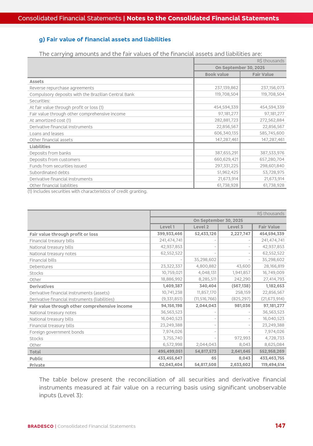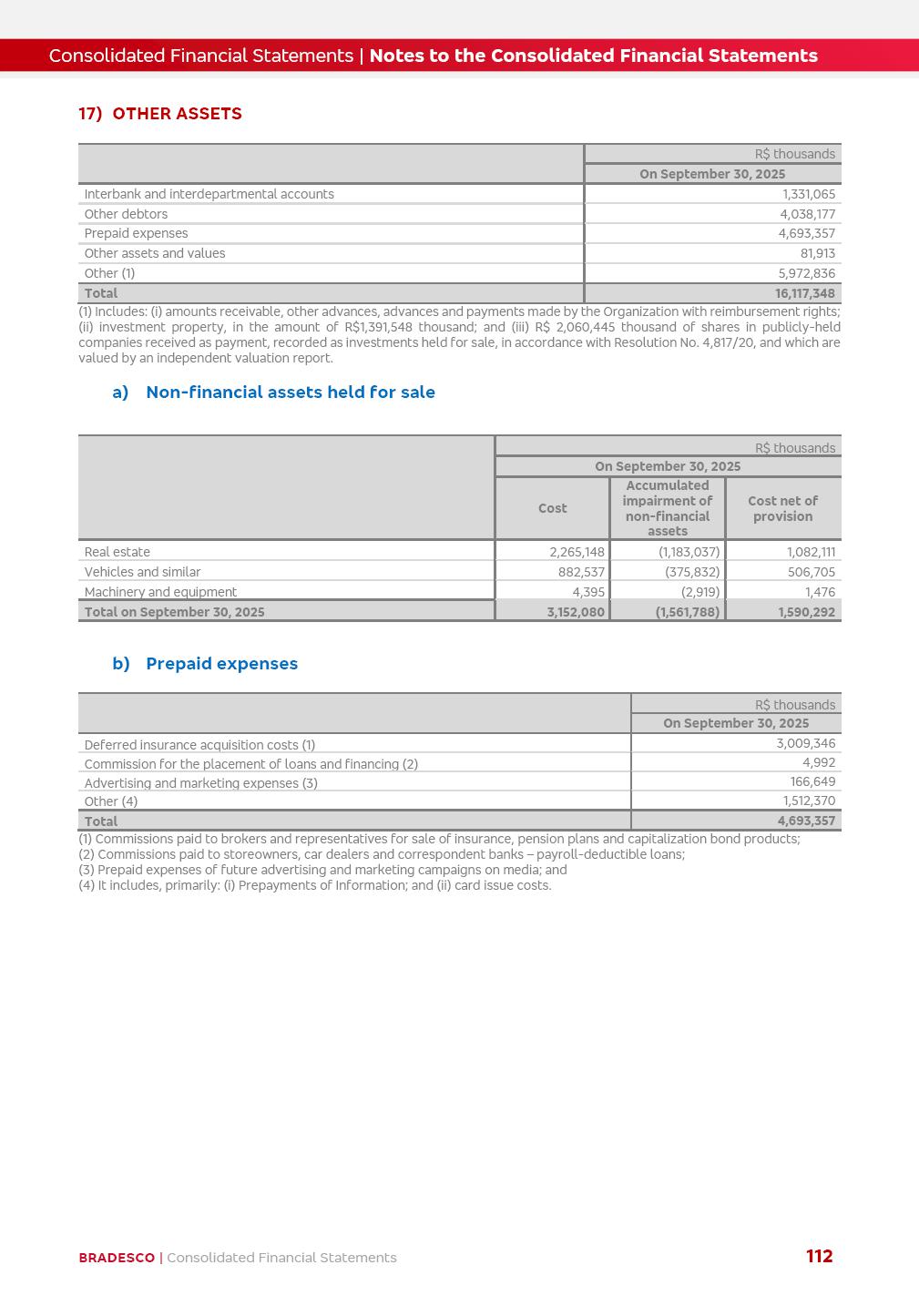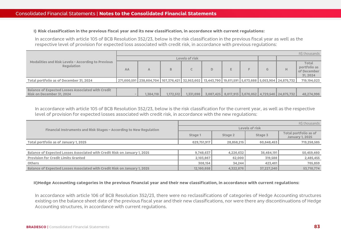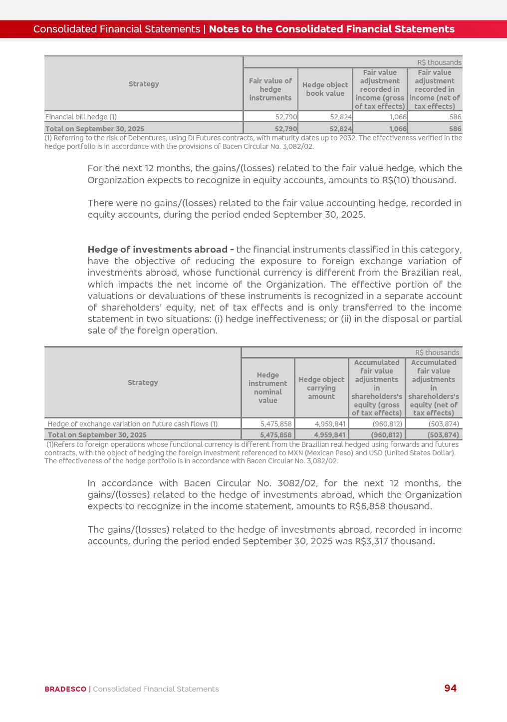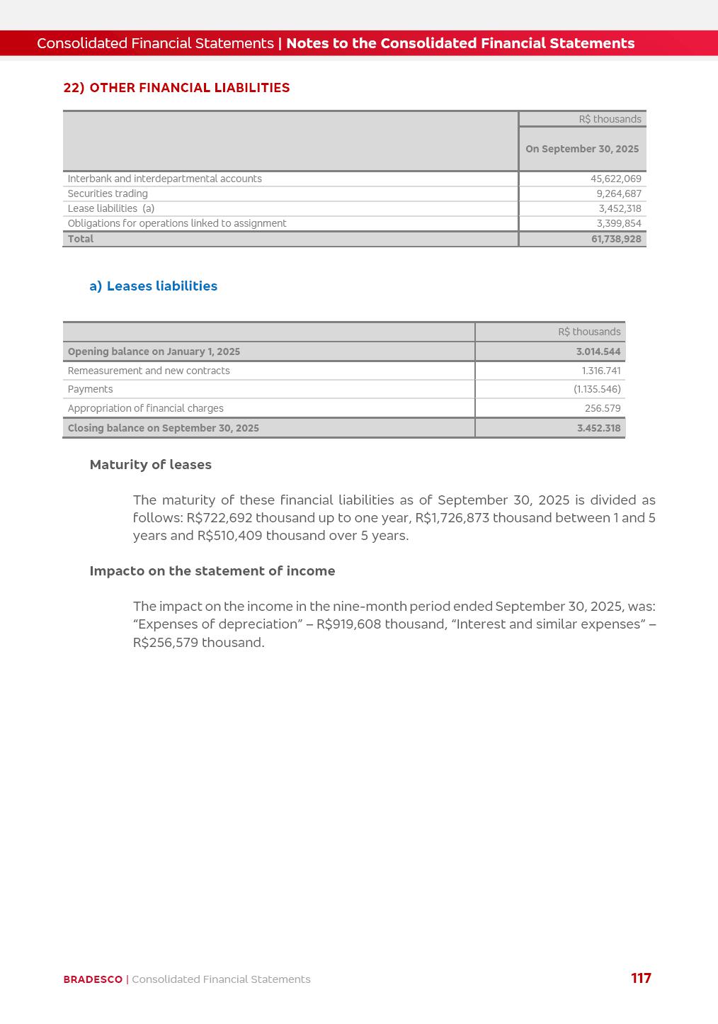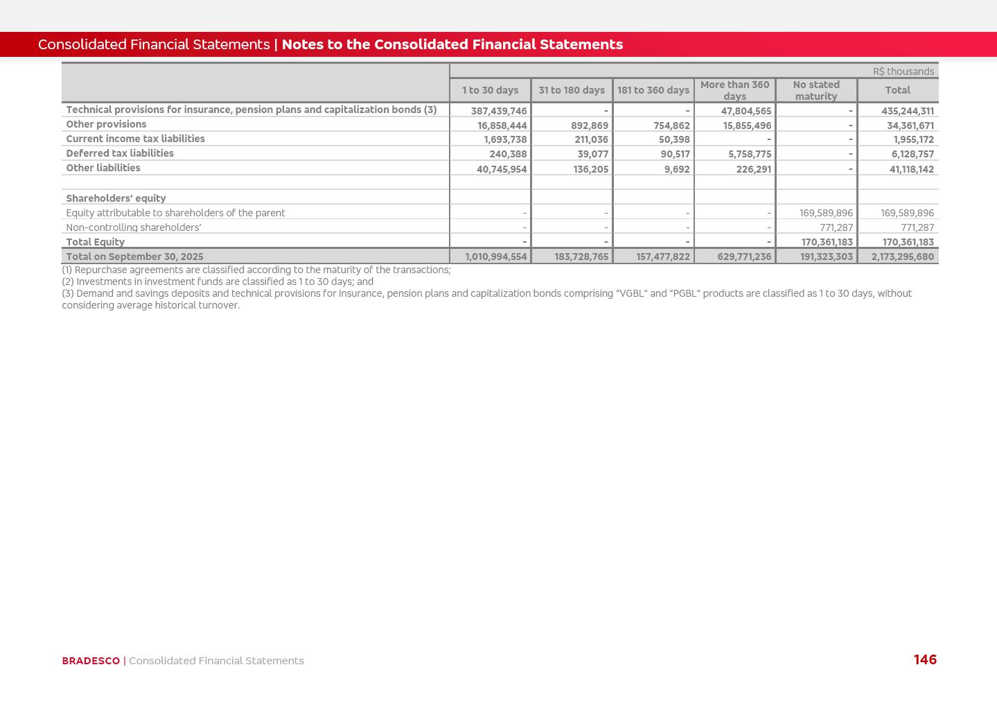 click on the items below to navigate through the document: 3Q25 managerial analysis of results management report consolidated financial statements videoconference commenting on the results October 30th at 9:30 AM (US Eastern Time) economic and financial analysis reportBradesco | Economic and Financial Analysis Report 3 Table of Contents Managerial Analysis of Results 5 press release 6 highlights 3Q25 7 recurring net income statement 8 net interest income 9 funding sources 10 loan portfolio 11 expenses with expanded loan loss provisions 16 loan indicators 17 fee and commission income 19 operating expenses 21 Bradesco Seguros 22 basel 27 guidance, indicators & economic perspectives 28 Additional Information 29 corporate strategy | customer-centric 30 NPS 31 our people 32 sustainability 33 digital in figures | BIA 34 Bradesco Principal 35 Bradesco Expresso 36 international operations | My Account 37 Bradesco Bank 38 Ágora Investimentos 39 Digio | next 40 service points, clients and market share 41 return to shareholders 42 additional information 43 selected information 45 consolidated balance sheet – Bradesco 46 consolidated balance sheet – Insurance 47 statement of income – managerial vs. recurring | BRGAAP vs. IFRS comparative 48 Independent Auditor’s Report 49 Consolidated Financial Statements 53 Bradesco | Economic and Financial Analysis Report 4 Some numbers included in this Report have been subjected to rounding adjustments. As a result, some amounts indicated as total amounts in some charts may not be the arithmetic sum of the preceding numbers. Percentage variations not presented in the framework of this report, are related, in their majority, to the low value balances compared with the other periods presented. As of January 2025, we adopted in our Financial Statements the new accounting practices established by CMN Resolutions No. 4,966 and No. 4,975. For management purposes, we kept the information of the previous periods as already disclosed, which do not present relevant differences in the historical analysis of the results. For some credit indicators, when mentioned, we carry out historical data for comparability purposes on a pro-forma basis. In our financial statements the Organization opted for the exemption provided by the Standard not to resubmit comparative information from previous periods resulting from the changes. Managerial Analysis of Results Bradesco | Economic and Financial Analysis Report 6 press release Bradesco is undergoing a transformation, fueling a continued positive performance. In the third quarter of the year, we took another step in boosting our profitability. We continue with the same commercial traction, while keeping delinquency indicators under control, prioritizing risk-adjusted returns. The transformation is advancing, supporting our evolution and enhancing our long-term competitiveness. Recurring net income was R$6.2 billion in 3Q25, an increase of 2.3% q/q and 18.8% y/y. As a result, ROAE topped 14.7% in the quarter. Total revenue reached R$35.0 billion in the quarter, increasing by 3.0% q/q and 13.1% y/y, driven by an expressive performance across all lines: net interest income, fee and commission income and income from insurance. The NII reached R$18.7 billion in the quarter, up by 3.7% q/q and 16.9% y/y. Client NII totaled R$18.6 billion, up by 4.8% q/q and 19.0% y/y, mainly driven by the increase in the loan portfolio and the average spread, which improved from 8.8% in 2Q25 to 9.0% in 3Q25, benefiting from higher efficiency in funding. Market NII was R$99 million in 3Q25, decreasing from the previous quarter, as expected. The expanded loan portfolio grew by 9.6% y/y and 1.6% q/q in Sept25, driven by the MSME and Individual segments. It is worth highlighting the increase in the share of secured credit lines, which went from 58.5% in Jun25 to 59.5% in Sept25. In terms of MSME, products such as receivables discounting and working capital loans (FGI and FGO - government-backed guarantee funds) stand out, and for Individuals, in payroll-deductible loans, rural loans, and high-income credit card lines. In September 2025, the delinquency ratio (over 90 days NPL) remained stable at 4.1%. Delinquency in MSME posted an improvement of 0.6 p.p. q/q, reflecting the quality of recent vintages, while Individuals loan indicator was impacted by the higher level of delays in John Deere Bank operations, which are collateralized and subject to a distinct recovery timeline. The cost of credit increased slightly, from 3.2% in 2Q25 to 3.3% in 3Q25, reflecting an increase of provisions for specific wholesale cases and John Deere Bank. We highlight the decrease of R$1.8 billion in the restructured portfolio against the previous quarter and of R$8.2 billion in the annual comparison. The quality of our credit portfolio showed improvement, being that stage 1 loan participation rose 30 bps while stage 3 fell 20 bps, resulting from better originations and the sequential cleanup of problematic assets. Fee and commission income increased by 2.8% q/q and 6.9% y/y. The positive standouts over the quarter included fees from consortia, cards, loan operations and asset management. Once again, the operational performance of insurance activities was significant, with income from insurance operations reaching of R$5.7 billion (1.0% q/q and 13.0% y/y) and net income of R$2.5 billion (10.3% q/q and 6.5% y/y). The ROAE of the insurance company was 22.4% in 3Q25. Operating expenses increased by 3.7% q/q and 9.6% y/y, in line with expectations. This growth rate largely reflects the investments being made in the bank and its affiliates. Analyzing only personnel and administrative expenses, there was a 5.5% y/y growth in 3Q25, which shrinks to 2.5% when we exclude the profit-sharing expenses, below inflation of 5.2% for the period, underlining the strong cost-control measures currently in place within the Organization. With that, we maintained our efficiency ratio stable at abou