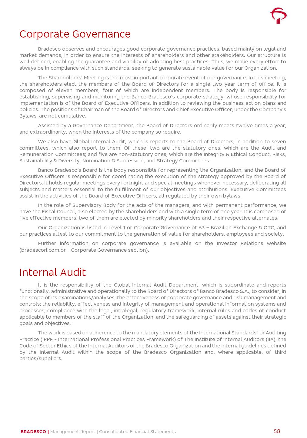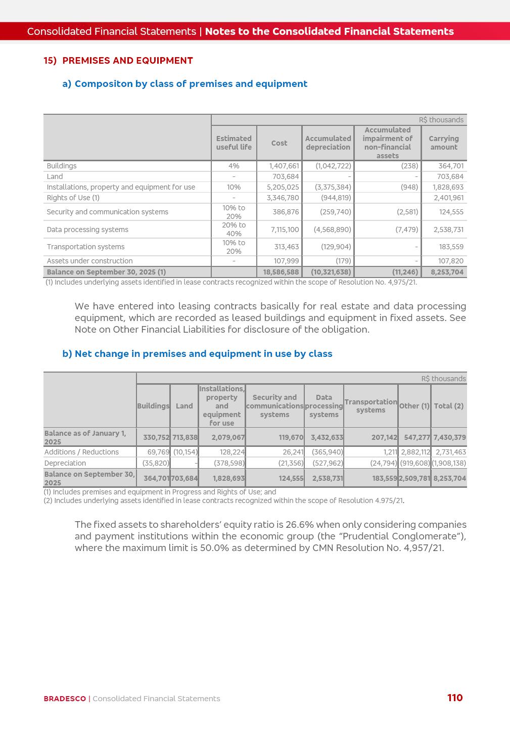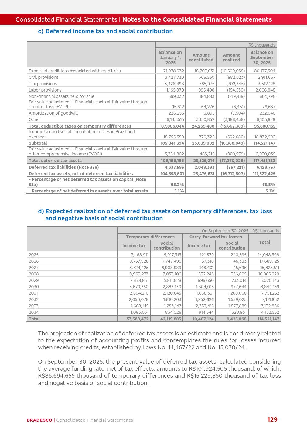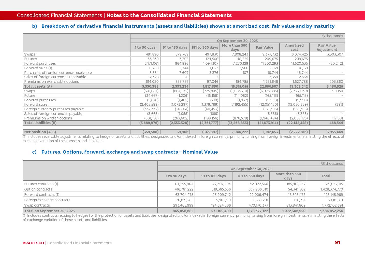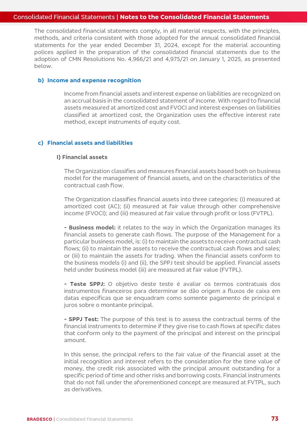 click on the items below to navigate through the document: 3Q25 managerial analysis of results management report consolidated financial statements videoconference commenting on the results October 30th at 9:30 AM (US Eastern Time) economic and financial analysis reportBradesco | Economic and Financial Analysis Report 3 Table of Contents Managerial Analysis of Results 5 press release 6 highlights 3Q25 7 recurring net income statement 8 net interest income 9 funding sources 10 loan portfolio 11 expenses with expanded loan loss provisions 16 loan indicators 17 fee and commission income 19 operating expenses 21 Bradesco Seguros 22 basel 27 guidance, indicators & economic perspectives 28 Additional Information 29 corporate strategy | customer-centric 30 NPS 31 our people 32 sustainability 33 digital in figures | BIA 34 Bradesco Principal 35 Bradesco Expresso 36 international operations | My Account 37 Bradesco Bank 38 Ágora Investimentos 39 Digio | next 40 service points, clients and market share 41 return to shareholders 42 additional information 43 selected information 45 consolidated balance sheet – Bradesco 46 consolidated balance sheet – Insurance 47 statement of income – managerial vs. recurring | BRGAAP vs. IFRS comparative 48 Independent Auditor’s Report 49 Consolidated Financial Statements 53 Bradesco | Economic and Financial Analysis Report 4 Some numbers included in this Report have been subjected to rounding adjustments. As a result, some amounts indicated as total amounts in some charts may not be the arithmetic sum of the preceding numbers. Percentage variations not presented in the framework of this report, are related, in their majority, to the low value balances compared with the other periods presented. As of January 2025, we adopted in our Financial Statements the new accounting practices established by CMN Resolutions No. 4,966 and No. 4,975. For management purposes, we kept the information of the previous periods as already disclosed, which do not present relevant differences in the historical analysis of the results. For some credit indicators, when mentioned, we carry out historical data for comparability purposes on a pro-forma basis. In our financial statements the Organization opted for the exemption provided by the Standard not to resubmit comparative information from previous periods resulting from the changes. Managerial Analysis of Results Bradesco | Economic and Financial Analysis Report 6 press release Bradesco is undergoing a transformation, fueling a continued positive performance. In the third quarter of the year, we took another step in boosting our profitability. We continue with the same commercial traction, while keeping delinquency indicators under control, prioritizing risk-adjusted returns. The transformation is advancing, supporting our evolution and enhancing our long-term competitiveness. Recurring net income was R$6.2 billion in 3Q25, an increase of 2.3% q/q and 18.8% y/y. As a result, ROAE topped 14.7% in the quarter. Total revenue reached R$35.0 billion in the quarter, increasing by 3.0% q/q and 13.1% y/y, driven by an expressive performance across all lines: net interest income, fee and commission income and income from insurance. The NII reached R$18.7 billion in the quarter, up by 3.7% q/q and 16.9% y/y. Client NII totaled R$18.6 billion, up by 4.8% q/q and 19.0% y/y, mainly driven by the increase in the loan portfolio and the average spread, which improved from 8.8% in 2Q25 to 9.0% in 3Q25, benefiting from higher efficiency in funding. Market NII was R$99 million in 3Q25, decreasing from the previous quarter, as expected. The expanded loan portfolio grew by 9.6% y/y and 1.6% q/q in Sept25, driven by the MSME and Individual segments. It is worth highlighting the increase in the share of secured credit lines, which went from 58.5% in Jun25 to 59.5% in Sept25. In terms of MSME, products such as receivables discounting and working capital loans (FGI and FGO - government-backed guarantee funds) stand out, and for Individuals, in payroll-deductible loans, rural loans, and high-income credit card lines. In September 2025, the delinquency ratio (over 90 days NPL) remained stable at 4.1%. Delinquency in MSME posted an improvement of 0.6 p.p. q/q, reflecting the quality of recent vintages, while Individuals loan indicator was impacted by the higher level of delays in John Deere Bank operations, which are collateralized and subject to a distinct recovery timeline. The cost of credit increased slightly, from 3.2% in 2Q25 to 3.3% in 3Q25, reflecting an increase of provisions for specific wholesale cases and John Deere Bank. We highlight the decrease of R$1.8 billion in the restructured portfolio against the previous quarter and of R$8.2 billion in the annual comparison. The quality of our credit portfolio showed improvement, being that stage 1 loan participation rose 30 bps while stage 3 fell 20 bps, resulting from better originations and the sequential cleanup of problematic assets. Fee and commission income increased by 2.8% q/q and 6.9% y/y. The positive standouts over the quarter included fees from consortia, cards, loan operations and asset management. Once again, the operational performance of insurance activities was significant, with income from insurance operations reaching of R$5.7 billion (1.0% q/q and 13.0% y/y) and net income of R$2.5 billion (10.3% q/q and 6.5% y/y). The ROAE of the insurance company was 22.4% in 3Q25. Operating expenses increased by 3.7% q/q and 9.6% y/y, in line with expectations. This growth rate largely reflects the investments being made in the bank and its affiliates. Analyzing only personnel and administrative expenses, there was a 5.5% y/y growth in 3Q25, which shrinks to 2.5% when we exclude the profit-sharing expenses, below inflation of 5.2% for the period, underlining the strong cost-control measures currently in place within the Organization. With that, we maintained our efficiency ratio stable at abou
