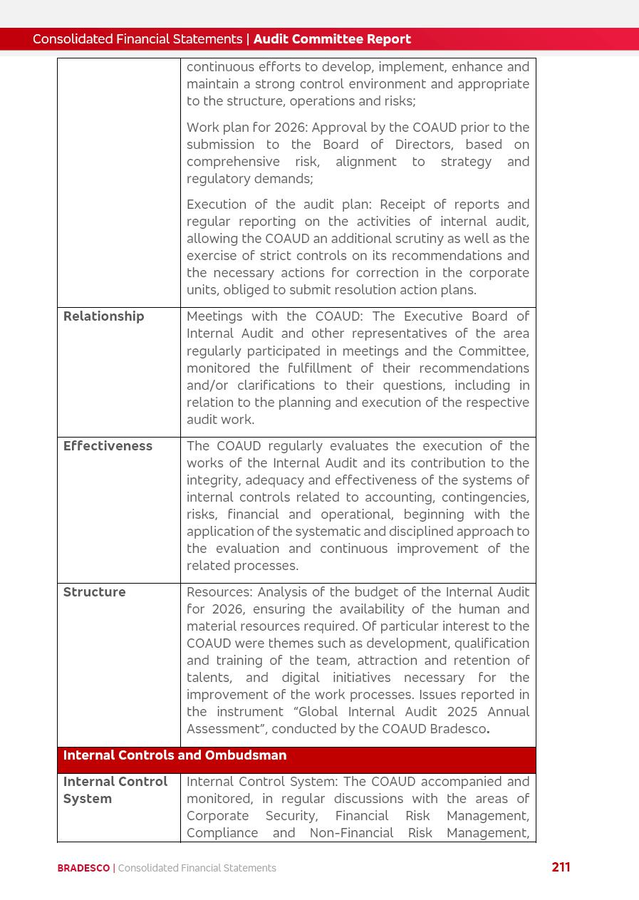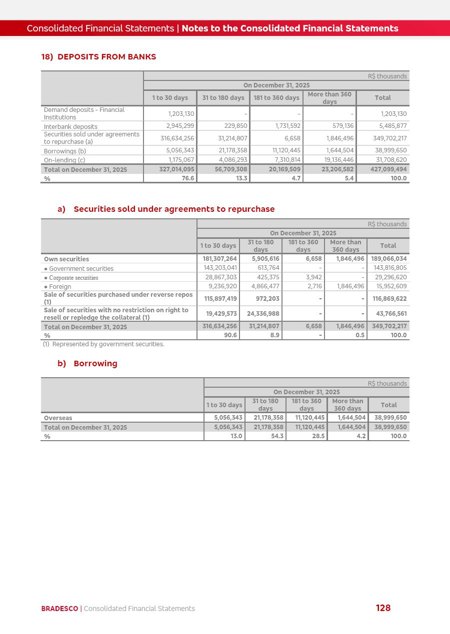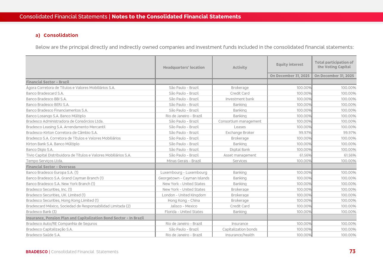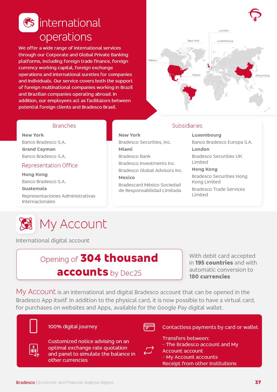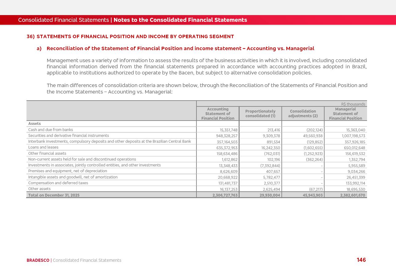 click on the items below to navigate through the document: 4Q 25 managerial analysis of results management report consolidated financial statements videoconference commenting on the results February 6th at 8:30 AM (US Eastern Time) economic and financial analysis reportBradesco | Economic and Financial Analysis Report 3 Table of Contents Managerial Analysis of Results 5 press release 6 highlights 4Q25 7 recurring net income statement 8 net interest income 9 funding sources 10 loan portfolio 11 expenses with expanded loan loss provisions 16 loan indicators 17 fee and commission income 19 operating expenses 21 Bradesco Seguros 22 basel 27 guidance, indicators & economic perspectives 28 Additional Information 29 corporate strategy | customer-centric 30 NPS 31 our people 32 sustainability 33 digital in figures | BIA 34 Bradesco Principal 35 Bradesco Expresso 36 international operations | My Account 37 Bradesco Bank 38 Ágora Investimentos 39 Digio 40 service points, clients and market share 41 return to shareholders 42 additional information 43 selected information 45 consolidated balance sheet – Bradesco 46 consolidated balance sheet – Insurance 47 statement of income – managerial vs. recurring | BRGAAP vs. IFRS comparative 48 Independent Auditor’s Report 49 Consolidated Financial Statements 53 Bradesco | Economic and Financial Analysis Report 4 Some numbers included in this Report have been subjected to rounding adjustments. As a result, some amounts indicated as total amounts in some charts may not be the arithmetic sum of the preceding numbers. Percentage variations not presented in the framework of this report, are related, in their majority, to the low value balances compared with the other periods presented. As of January 2025, we adopted in our Financial Statements the new accounting practices established by CMN Resolutions No. 4,966 and No. 4,975. For management purposes, we kept the information of the previous periods as already disclosed, which do not present relevant differences in the historical analysis of the results. For some credit indicators, when mentioned, we carry out historical data for comparability purposes on a pro-forma basis. In our financial statements the Organization opted for the exemption provided by the Standard not to resubmit comparative information from previous periods resulting from the changes. Managerial Analysis of Results Bradesco | Economic and Financial Analysis Report 6 press release Bradesco remains committed to expand profitability gradually and safely through the accelerated execution of the transformation plan. Our priority is to ensure the sustainability of the business by growing responsibly, keeping the cost of credit under control, investing in the transformation of the Organization, and reinforcing a customer centric approach in all decisions. In 2025, our commercial traction was reflected in impressive revenue growth across all of our core product lines. We maintained our risk appetite, new credit vintages with high quality and delinquency ratios under control. As a result, in 4Q25 we reported a Return on Equity (ROE) higher than our cost of capital, with eight straight quarters of profitability growth. Investments in our transformation have placed temporary pressure on expenses, but they are intended to boost our competitiveness in the short, medium and long term. The integration between "change the bank" and "run the bank" is intensifying, as the benefits of transformation continue to enhance operational performance and make it more sustainable. Net income was R$6.5 billion in 4Q25, resulting in ROAE of 15.2%, generating a profit of R$24.7 billion in 2025 and growth of 26.1% in 2025 vs. 2024. Total revenues topped R$36.1 billion for the quarter, growing 2.9% q/q and 9.8% y/y, driven by the performance of the net interest income and fee and commission income. Net interest income came to R$19.2 billion for the quarter, expanding 2.9% q/q and 13.2% y/y. Client NII reached R$19.1 billion, rising 2.7% q/q and 18.4% y/y, mainly due to the effect of the increase in the loan portfolio and efficiency on the funding margin. Market NII totaled R$126 million in 4Q25, in line with expectations, bringing the full-year figure to R$975 million. The expanded loan portfolio came to R$1.089 trillion, growing 11.0% y/y and 5.3% q/q in December 2025, reflecting our traction in the MSME and Individuals segments, and operations with Large Companies carried out at the end of the year. In December 2025, the delinquency ratio (over 90 days NPL) remained stable. Problem assets in the restructured portfolio fell by R$2.4 billion versus the prior quarter and R$10.5 billion in the annual comparison, while cured assets rose 10.7% q/q and 58.2% y/y. Consequently, stage 3 operations declined throughout 2025, with a 40 bps reduction in the last quarter. The cost of credit retreated slightly from 3.3% in 3Q25 to 3.2% in 4Q25, reflecting the quality of the concession and growth of the loan portfolio over the period. Fee and commission income performed strongly, growing 4.6% q/q and 8.0% y/y. The positive standouts over the quarter included capital market, card income and loan operations. The operational performance from insurance operations generated an income of R$5.6 billion (-1.0% q/q and +2.1% y/y) and net income of R$2.8 billion (10.7% q/q and 10.6% y/y). The ROAE of the insurance company was 24.3% in 4Q25. In 2025, the insurance earnings came to R$10.1 billion. Our efficiency ratio (expenses/revenues) improved by 2.2 p.p. over the year, attributed to a 13.2% increase in revenues and sound management of expenses. In 2025, operating expenses rose by 8.5% while administrative and personnel expenses saw a 5.0% bump, which includes the impact of the collective bargaining agreement of 5.68% and increase in profit-sharing expenditures. Temporary pressures seen throughout the year came mainly from our transformation initiatives and a strategic strengthening of the 