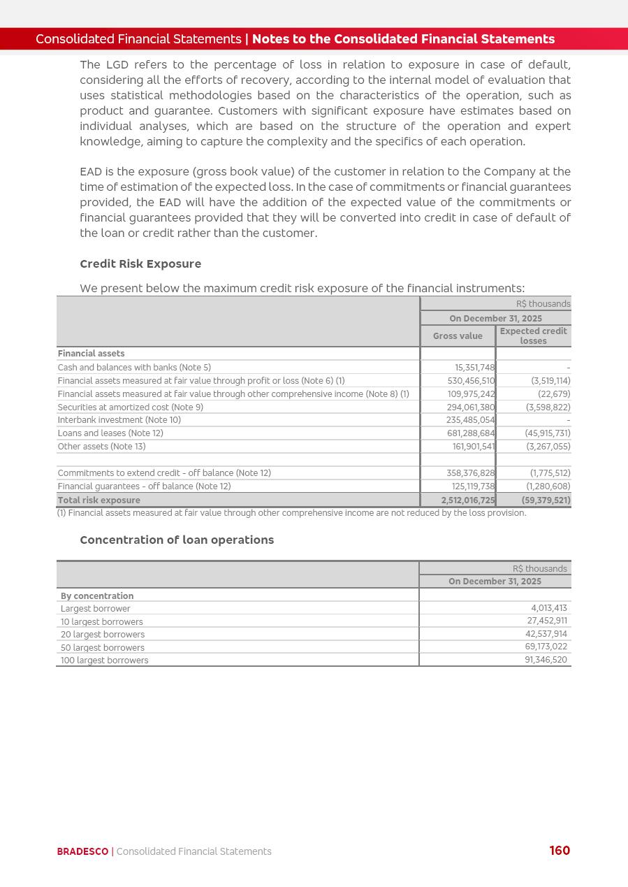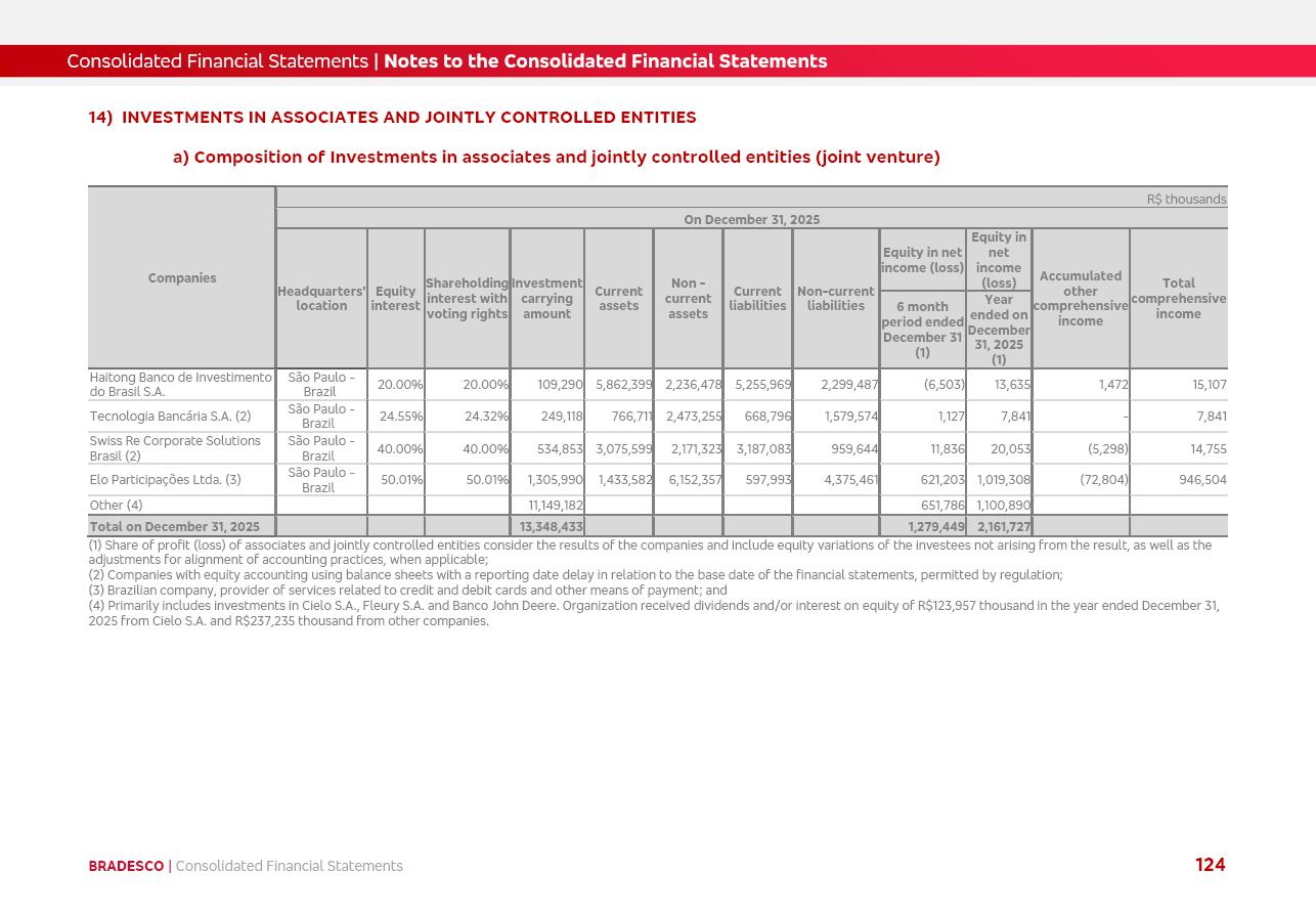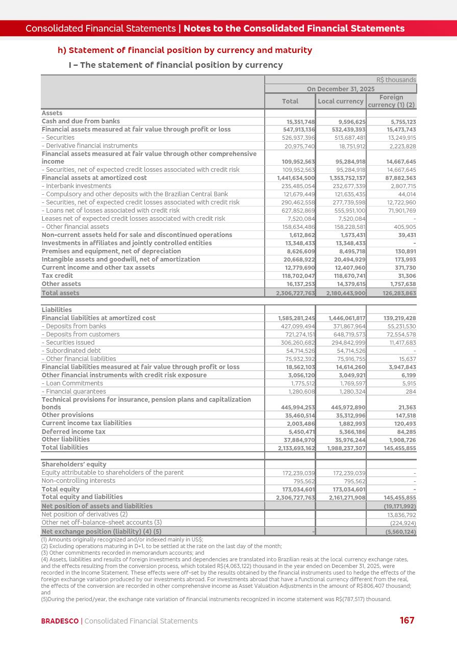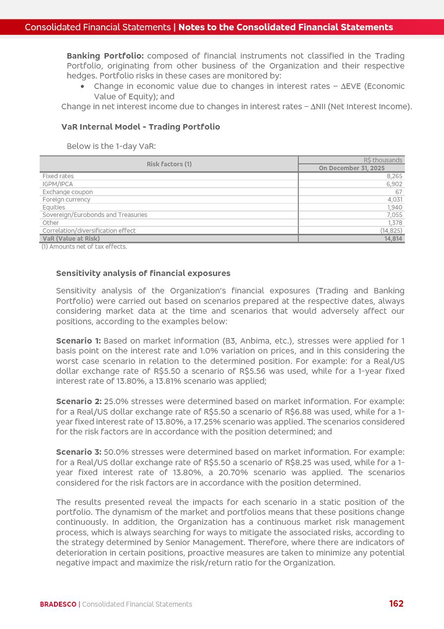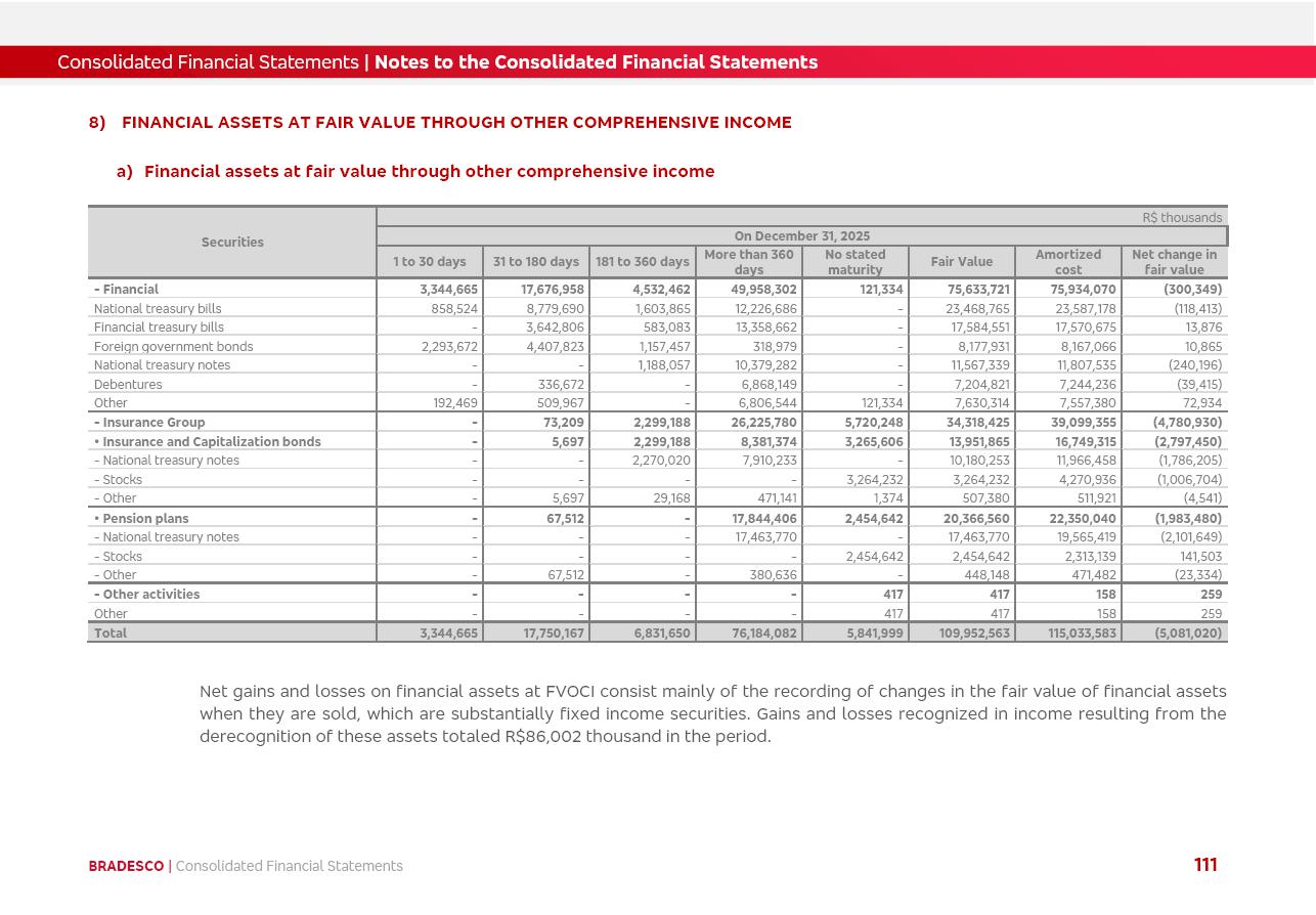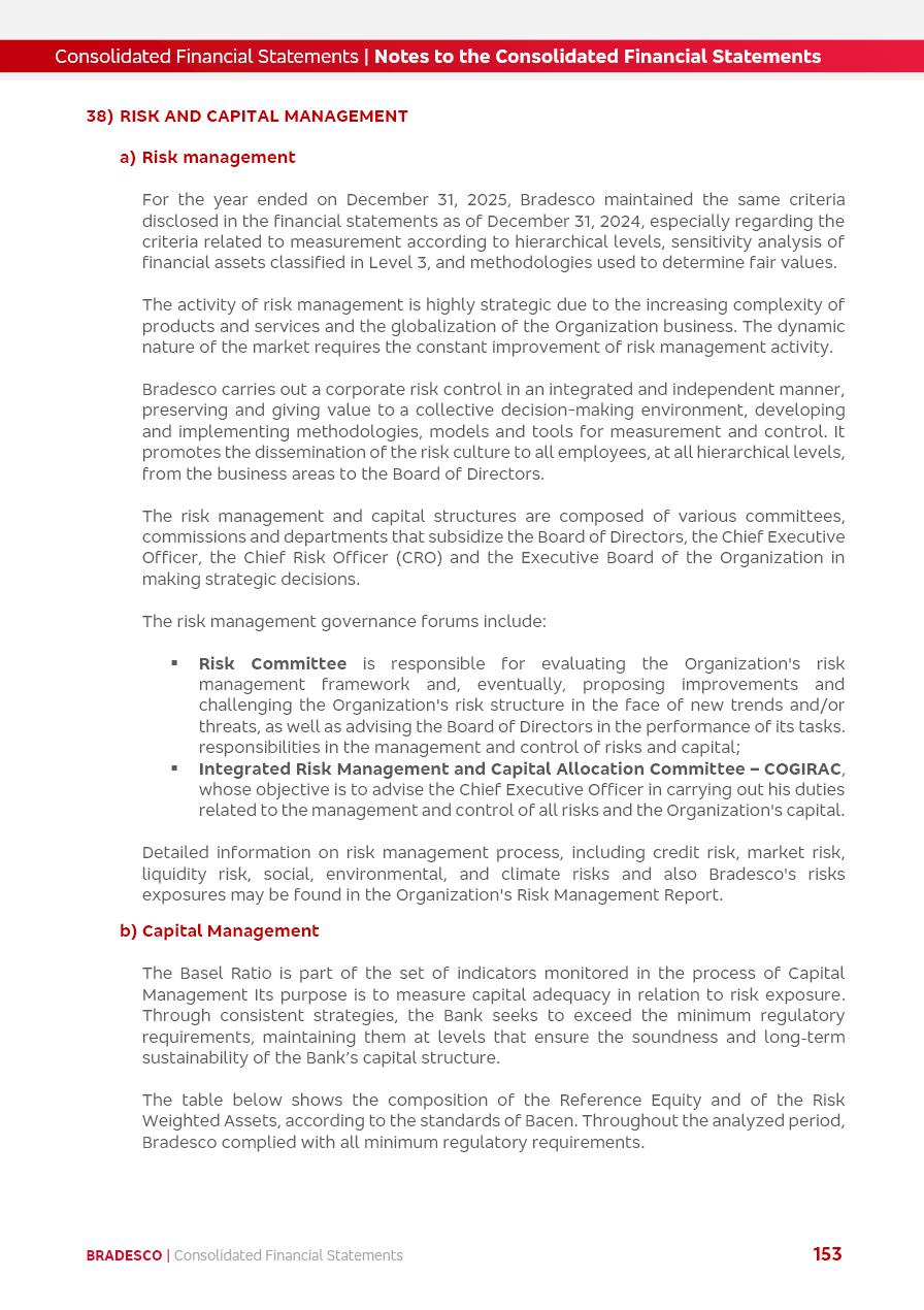 click on the items below to navigate through the document: 4Q 25 managerial analysis of results management report consolidated financial statements videoconference commenting on the results February 6th at 8:30 AM (US Eastern Time) economic and financial analysis reportBradesco | Economic and Financial Analysis Report 3 Table of Contents Managerial Analysis of Results 5 press release 6 highlights 4Q25 7 recurring net income statement 8 net interest income 9 funding sources 10 loan portfolio 11 expenses with expanded loan loss provisions 16 loan indicators 17 fee and commission income 19 operating expenses 21 Bradesco Seguros 22 basel 27 guidance, indicators & economic perspectives 28 Additional Information 29 corporate strategy | customer-centric 30 NPS 31 our people 32 sustainability 33 digital in figures | BIA 34 Bradesco Principal 35 Bradesco Expresso 36 international operations | My Account 37 Bradesco Bank 38 Ágora Investimentos 39 Digio 40 service points, clients and market share 41 return to shareholders 42 additional information 43 selected information 45 consolidated balance sheet – Bradesco 46 consolidated balance sheet – Insurance 47 statement of income – managerial vs. recurring | BRGAAP vs. IFRS comparative 48 Independent Auditor’s Report 49 Consolidated Financial Statements 53 Bradesco | Economic and Financial Analysis Report 4 Some numbers included in this Report have been subjected to rounding adjustments. As a result, some amounts indicated as total amounts in some charts may not be the arithmetic sum of the preceding numbers. Percentage variations not presented in the framework of this report, are related, in their majority, to the low value balances compared with the other periods presented. As of January 2025, we adopted in our Financial Statements the new accounting practices established by CMN Resolutions No. 4,966 and No. 4,975. For management purposes, we kept the information of the previous periods as already disclosed, which do not present relevant differences in the historical analysis of the results. For some credit indicators, when mentioned, we carry out historical data for comparability purposes on a pro-forma basis. In our financial statements the Organization opted for the exemption provided by the Standard not to resubmit comparative information from previous periods resulting from the changes. Managerial Analysis of Results Bradesco | Economic and Financial Analysis Report 6 press release Bradesco remains committed to expand profitability gradually and safely through the accelerated execution of the transformation plan. Our priority is to ensure the sustainability of the business by growing responsibly, keeping the cost of credit under control, investing in the transformation of the Organization, and reinforcing a customer centric approach in all decisions. In 2025, our commercial traction was reflected in impressive revenue growth across all of our core product lines. We maintained our risk appetite, new credit vintages with high quality and delinquency ratios under control. As a result, in 4Q25 we reported a Return on Equity (ROE) higher than our cost of capital, with eight straight quarters of profitability growth. Investments in our transformation have placed temporary pressure on expenses, but they are intended to boost our competitiveness in the short, medium and long term. The integration between "change the bank" and "run the bank" is intensifying, as the benefits of transformation continue to enhance operational performance and make it more sustainable. Net income was R$6.5 billion in 4Q25, resulting in ROAE of 15.2%, generating a profit of R$24.7 billion in 2025 and growth of 26.1% in 2025 vs. 2024. Total revenues topped R$36.1 billion for the quarter, growing 2.9% q/q and 9.8% y/y, driven by the performance of the net interest income and fee and commission income. Net interest income came to R$19.2 billion for the quarter, expanding 2.9% q/q and 13.2% y/y. Client NII reached R$19.1 billion, rising 2.7% q/q and 18.4% y/y, mainly due to the effect of the increase in the loan portfolio and efficiency on the funding margin. Market NII totaled R$126 million in 4Q25, in line with expectations, bringing the full-year figure to R$975 million. The expanded loan portfolio came to R$1.089 trillion, growing 11.0% y/y and 5.3% q/q in December 2025, reflecting our traction in the MSME and Individuals segments, and operations with Large Companies carried out at the end of the year. In December 2025, the delinquency ratio (over 90 days NPL) remained stable. Problem assets in the restructured portfolio fell by R$2.4 billion versus the prior quarter and R$10.5 billion in the annual comparison, while cured assets rose 10.7% q/q and 58.2% y/y. Consequently, stage 3 operations declined throughout 2025, with a 40 bps reduction in the last quarter. The cost of credit retreated slightly from 3.3% in 3Q25 to 3.2% in 4Q25, reflecting the quality of the concession and growth of the loan portfolio over the period. Fee and commission income performed strongly, growing 4.6% q/q and 8.0% y/y. The positive standouts over the quarter included capital market, card income and loan operations. The operational performance from insurance operations generated an income of R$5.6 billion (-1.0% q/q and +2.1% y/y) and net income of R$2.8 billion (10.7% q/q and 10.6% y/y). The ROAE of the insurance company was 24.3% in 4Q25. In 2025, the insurance earnings came to R$10.1 billion. Our efficiency ratio (expenses/revenues) improved by 2.2 p.p. over the year, attributed to a 13.2% increase in revenues and sound management of expenses. In 2025, operating expenses rose by 8.5% while administrative and personnel expenses saw a 5.0% bump, which includes the impact of the collective bargaining agreement of 5.68% and increase in profit-sharing expenditures. Temporary pressures seen throughout the year came mainly from our transformation initiatives and a strategic strengthening of the 