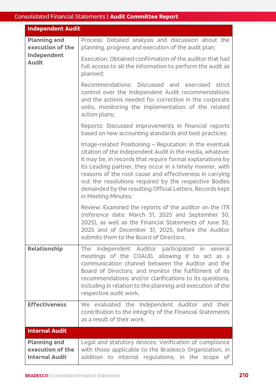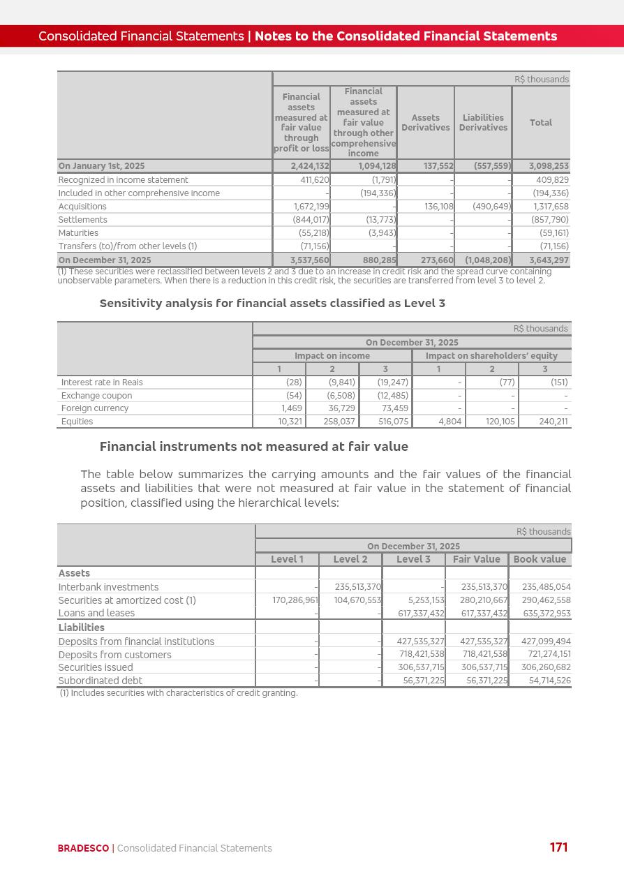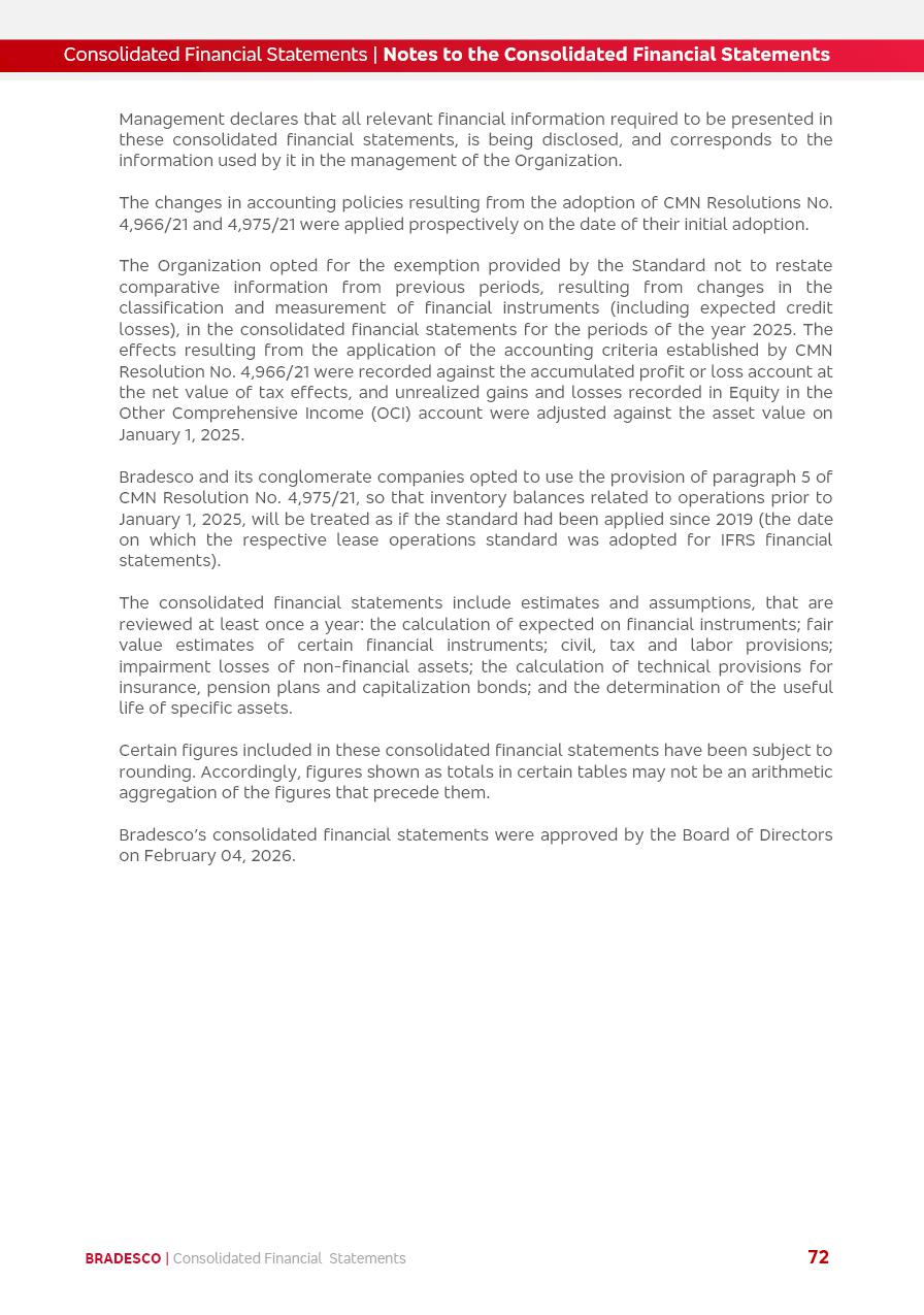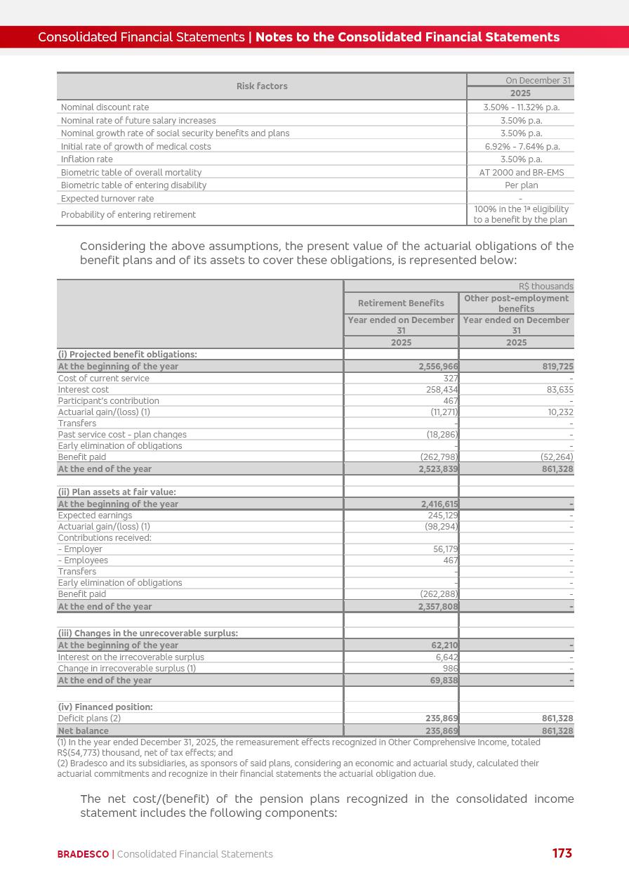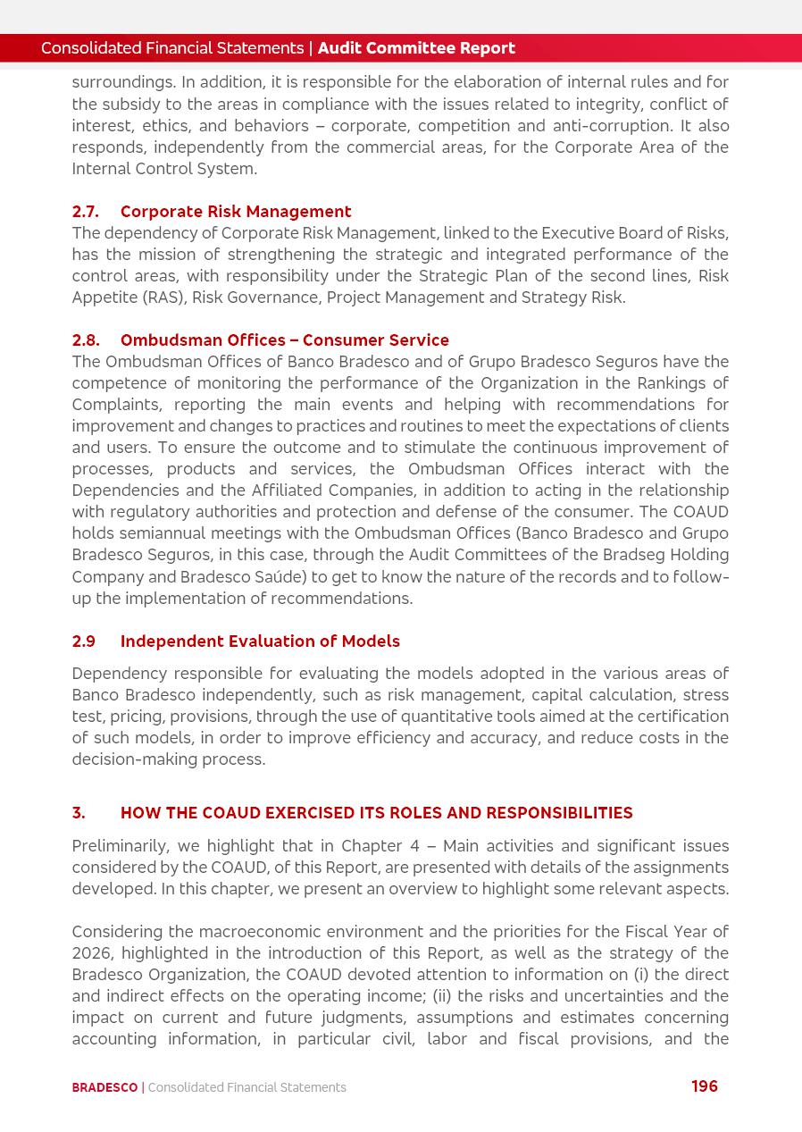 click on the items below to navigate through the document: 4Q 25 managerial analysis of results management report consolidated financial statements videoconference commenting on the results February 6th at 8:30 AM (US Eastern Time) economic and financial analysis reportBradesco | Economic and Financial Analysis Report 3 Table of Contents Managerial Analysis of Results 5 press release 6 highlights 4Q25 7 recurring net income statement 8 net interest income 9 funding sources 10 loan portfolio 11 expenses with expanded loan loss provisions 16 loan indicators 17 fee and commission income 19 operating expenses 21 Bradesco Seguros 22 basel 27 guidance, indicators & economic perspectives 28 Additional Information 29 corporate strategy | customer-centric 30 NPS 31 our people 32 sustainability 33 digital in figures | BIA 34 Bradesco Principal 35 Bradesco Expresso 36 international operations | My Account 37 Bradesco Bank 38 Ágora Investimentos 39 Digio 40 service points, clients and market share 41 return to shareholders 42 additional information 43 selected information 45 consolidated balance sheet – Bradesco 46 consolidated balance sheet – Insurance 47 statement of income – managerial vs. recurring | BRGAAP vs. IFRS comparative 48 Independent Auditor’s Report 49 Consolidated Financial Statements 53 Bradesco | Economic and Financial Analysis Report 4 Some numbers included in this Report have been subjected to rounding adjustments. As a result, some amounts indicated as total amounts in some charts may not be the arithmetic sum of the preceding numbers. Percentage variations not presented in the framework of this report, are related, in their majority, to the low value balances compared with the other periods presented. As of January 2025, we adopted in our Financial Statements the new accounting practices established by CMN Resolutions No. 4,966 and No. 4,975. For management purposes, we kept the information of the previous periods as already disclosed, which do not present relevant differences in the historical analysis of the results. For some credit indicators, when mentioned, we carry out historical data for comparability purposes on a pro-forma basis. In our financial statements the Organization opted for the exemption provided by the Standard not to resubmit comparative information from previous periods resulting from the changes. Managerial Analysis of Results Bradesco | Economic and Financial Analysis Report 6 press release Bradesco remains committed to expand profitability gradually and safely through the accelerated execution of the transformation plan. Our priority is to ensure the sustainability of the business by growing responsibly, keeping the cost of credit under control, investing in the transformation of the Organization, and reinforcing a customer centric approach in all decisions. In 2025, our commercial traction was reflected in impressive revenue growth across all of our core product lines. We maintained our risk appetite, new credit vintages with high quality and delinquency ratios under control. As a result, in 4Q25 we reported a Return on Equity (ROE) higher than our cost of capital, with eight straight quarters of profitability growth. Investments in our transformation have placed temporary pressure on expenses, but they are intended to boost our competitiveness in the short, medium and long term. The integration between "change the bank" and "run the bank" is intensifying, as the benefits of transformation continue to enhance operational performance and make it more sustainable. Net income was R$6.5 billion in 4Q25, resulting in ROAE of 15.2%, generating a profit of R$24.7 billion in 2025 and growth of 26.1% in 2025 vs. 2024. Total revenues topped R$36.1 billion for the quarter, growing 2.9% q/q and 9.8% y/y, driven by the performance of the net interest income and fee and commission income. Net interest income came to R$19.2 billion for the quarter, expanding 2.9% q/q and 13.2% y/y. Client NII reached R$19.1 billion, rising 2.7% q/q and 18.4% y/y, mainly due to the effect of the increase in the loan portfolio and efficiency on the funding margin. Market NII totaled R$126 million in 4Q25, in line with expectations, bringing the full-year figure to R$975 million. The expanded loan portfolio came to R$1.089 trillion, growing 11.0% y/y and 5.3% q/q in December 2025, reflecting our traction in the MSME and Individuals segments, and operations with Large Companies carried out at the end of the year. In December 2025, the delinquency ratio (over 90 days NPL) remained stable. Problem assets in the restructured portfolio fell by R$2.4 billion versus the prior quarter and R$10.5 billion in the annual comparison, while cured assets rose 10.7% q/q and 58.2% y/y. Consequently, stage 3 operations declined throughout 2025, with a 40 bps reduction in the last quarter. The cost of credit retreated slightly from 3.3% in 3Q25 to 3.2% in 4Q25, reflecting the quality of the concession and growth of the loan portfolio over the period. Fee and commission income performed strongly, growing 4.6% q/q and 8.0% y/y. The positive standouts over the quarter included capital market, card income and loan operations. The operational performance from insurance operations generated an income of R$5.6 billion (-1.0% q/q and +2.1% y/y) and net income of R$2.8 billion (10.7% q/q and 10.6% y/y). The ROAE of the insurance company was 24.3% in 4Q25. In 2025, the insurance earnings came to R$10.1 billion. Our efficiency ratio (expenses/revenues) improved by 2.2 p.p. over the year, attributed to a 13.2% increase in revenues and sound management of expenses. In 2025, operating expenses rose by 8.5% while administrative and personnel expenses saw a 5.0% bump, which includes the impact of the collective bargaining agreement of 5.68% and increase in profit-sharing expenditures. Temporary pressures seen throughout the year came mainly from our transformation initiatives and a strategic strengthening of the 