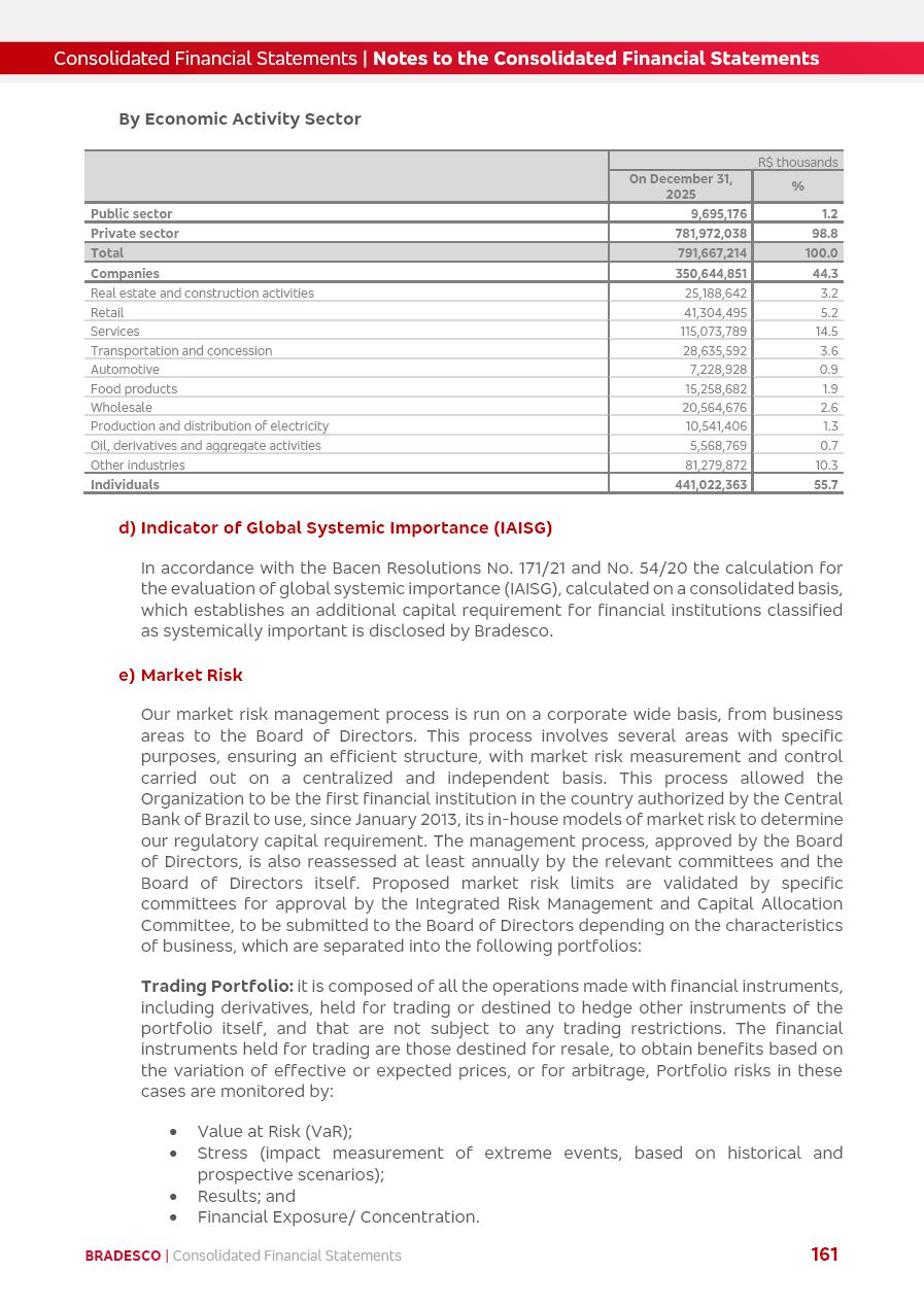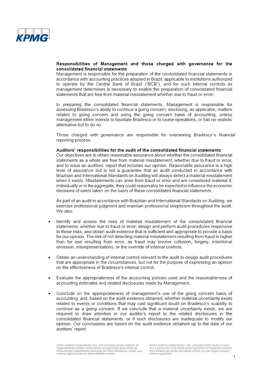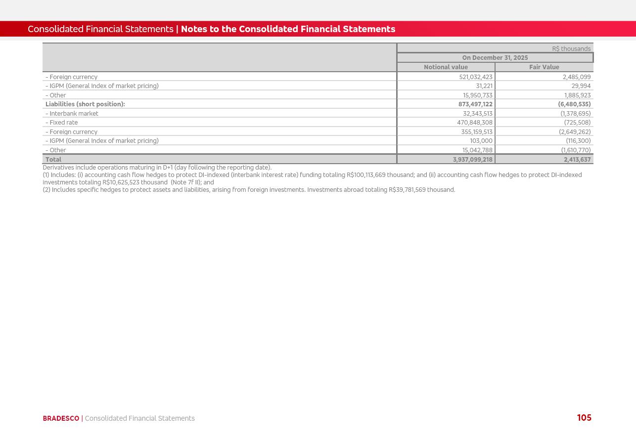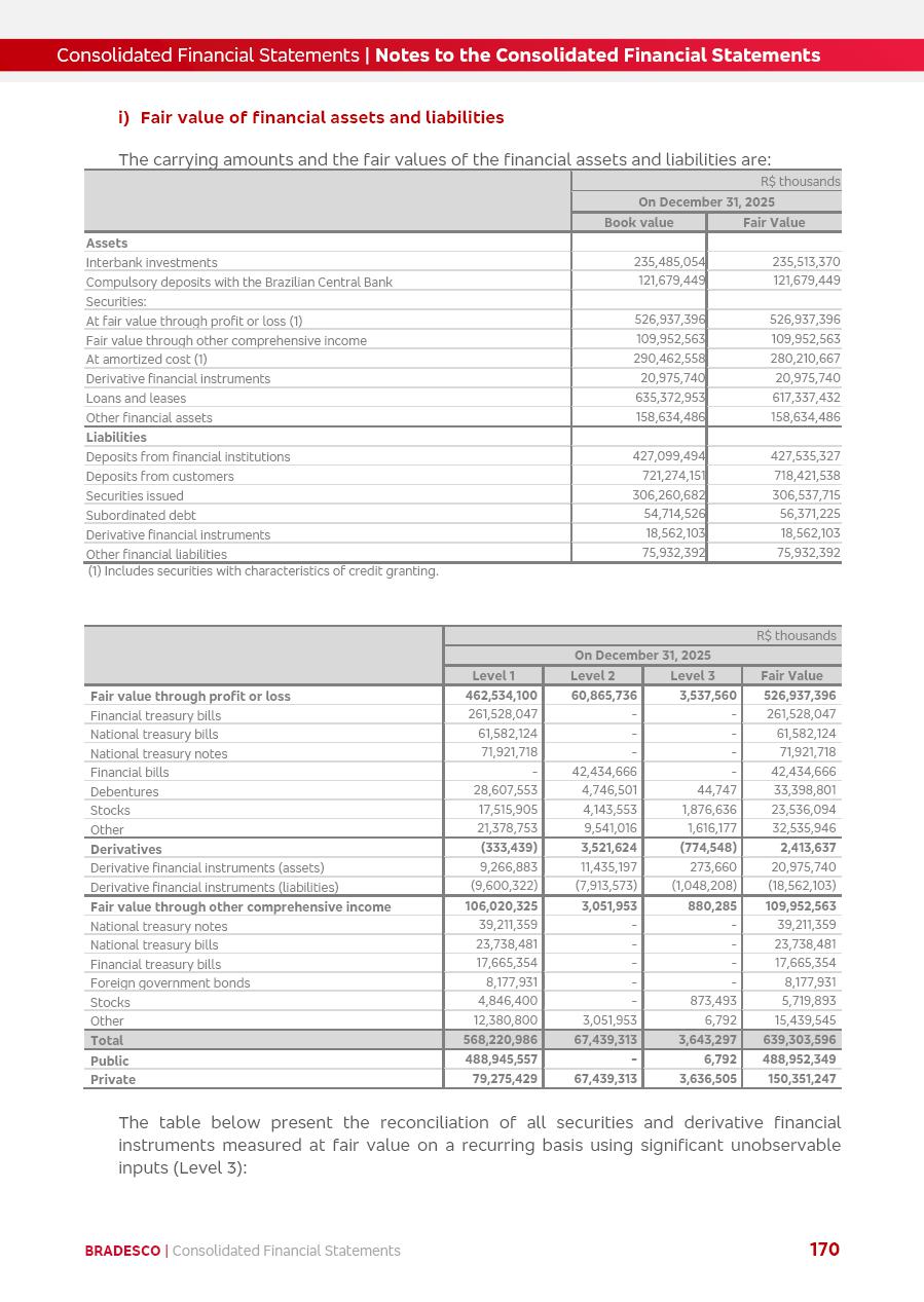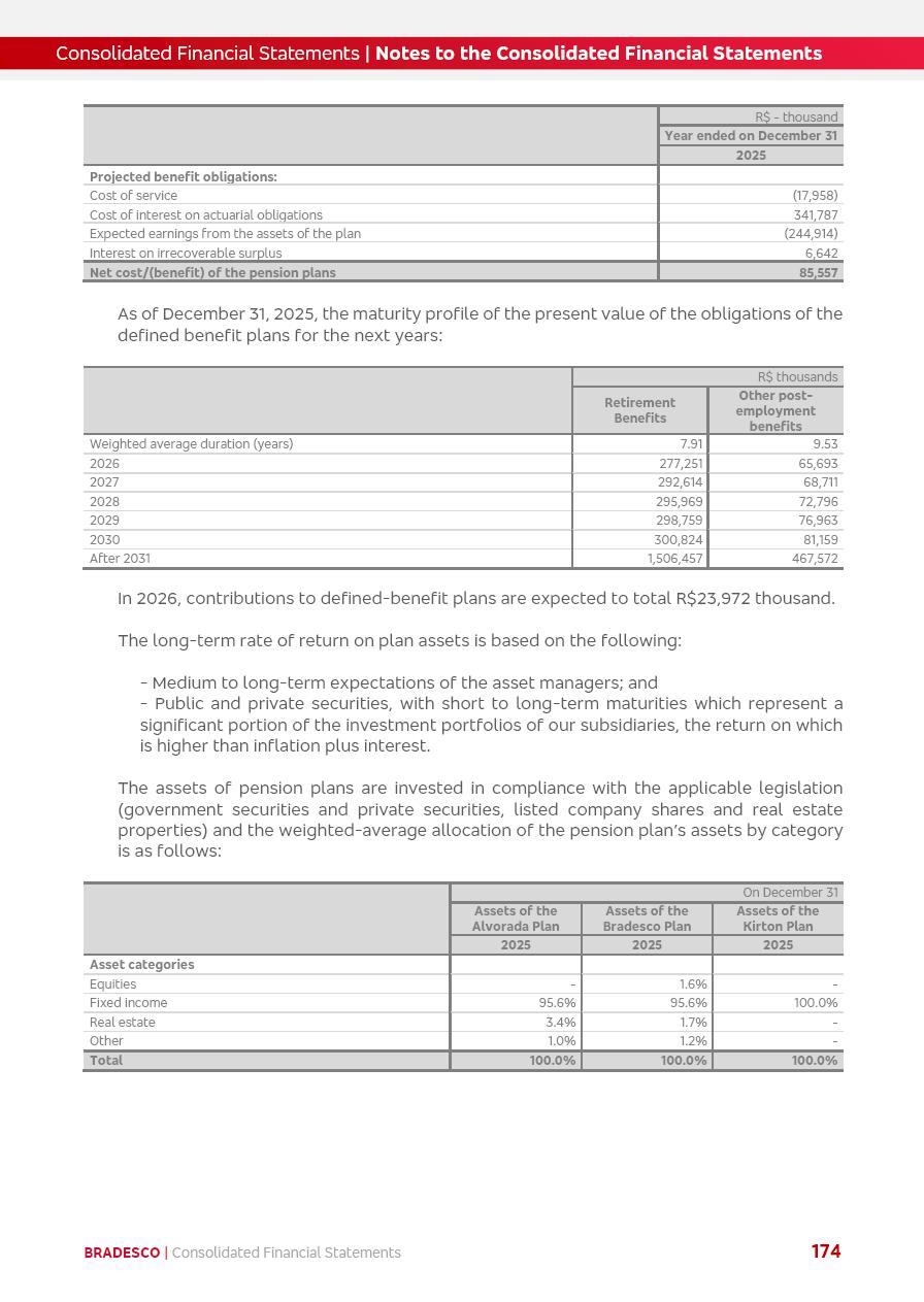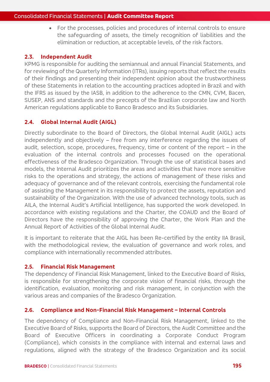 click on the items below to navigate through the document: 4Q 25 managerial analysis of results management report consolidated financial statements videoconference commenting on the results February 6th at 8:30 AM (US Eastern Time) economic and financial analysis reportBradesco | Economic and Financial Analysis Report 3 Table of Contents Managerial Analysis of Results 5 press release 6 highlights 4Q25 7 recurring net income statement 8 net interest income 9 funding sources 10 loan portfolio 11 expenses with expanded loan loss provisions 16 loan indicators 17 fee and commission income 19 operating expenses 21 Bradesco Seguros 22 basel 27 guidance, indicators & economic perspectives 28 Additional Information 29 corporate strategy | customer-centric 30 NPS 31 our people 32 sustainability 33 digital in figures | BIA 34 Bradesco Principal 35 Bradesco Expresso 36 international operations | My Account 37 Bradesco Bank 38 Ágora Investimentos 39 Digio 40 service points, clients and market share 41 return to shareholders 42 additional information 43 selected information 45 consolidated balance sheet – Bradesco 46 consolidated balance sheet – Insurance 47 statement of income – managerial vs. recurring | BRGAAP vs. IFRS comparative 48 Independent Auditor’s Report 49 Consolidated Financial Statements 53 Bradesco | Economic and Financial Analysis Report 4 Some numbers included in this Report have been subjected to rounding adjustments. As a result, some amounts indicated as total amounts in some charts may not be the arithmetic sum of the preceding numbers. Percentage variations not presented in the framework of this report, are related, in their majority, to the low value balances compared with the other periods presented. As of January 2025, we adopted in our Financial Statements the new accounting practices established by CMN Resolutions No. 4,966 and No. 4,975. For management purposes, we kept the information of the previous periods as already disclosed, which do not present relevant differences in the historical analysis of the results. For some credit indicators, when mentioned, we carry out historical data for comparability purposes on a pro-forma basis. In our financial statements the Organization opted for the exemption provided by the Standard not to resubmit comparative information from previous periods resulting from the changes. Managerial Analysis of Results Bradesco | Economic and Financial Analysis Report 6 press release Bradesco remains committed to expand profitability gradually and safely through the accelerated execution of the transformation plan. Our priority is to ensure the sustainability of the business by growing responsibly, keeping the cost of credit under control, investing in the transformation of the Organization, and reinforcing a customer centric approach in all decisions. In 2025, our commercial traction was reflected in impressive revenue growth across all of our core product lines. We maintained our risk appetite, new credit vintages with high quality and delinquency ratios under control. As a result, in 4Q25 we reported a Return on Equity (ROE) higher than our cost of capital, with eight straight quarters of profitability growth. Investments in our transformation have placed temporary pressure on expenses, but they are intended to boost our competitiveness in the short, medium and long term. The integration between "change the bank" and "run the bank" is intensifying, as the benefits of transformation continue to enhance operational performance and make it more sustainable. Net income was R$6.5 billion in 4Q25, resulting in ROAE of 15.2%, generating a profit of R$24.7 billion in 2025 and growth of 26.1% in 2025 vs. 2024. Total revenues topped R$36.1 billion for the quarter, growing 2.9% q/q and 9.8% y/y, driven by the performance of the net interest income and fee and commission income. Net interest income came to R$19.2 billion for the quarter, expanding 2.9% q/q and 13.2% y/y. Client NII reached R$19.1 billion, rising 2.7% q/q and 18.4% y/y, mainly due to the effect of the increase in the loan portfolio and efficiency on the funding margin. Market NII totaled R$126 million in 4Q25, in line with expectations, bringing the full-year figure to R$975 million. The expanded loan portfolio came to R$1.089 trillion, growing 11.0% y/y and 5.3% q/q in December 2025, reflecting our traction in the MSME and Individuals segments, and operations with Large Companies carried out at the end of the year. In December 2025, the delinquency ratio (over 90 days NPL) remained stable. Problem assets in the restructured portfolio fell by R$2.4 billion versus the prior quarter and R$10.5 billion in the annual comparison, while cured assets rose 10.7% q/q and 58.2% y/y. Consequently, stage 3 operations declined throughout 2025, with a 40 bps reduction in the last quarter. The cost of credit retreated slightly from 3.3% in 3Q25 to 3.2% in 4Q25, reflecting the quality of the concession and growth of the loan portfolio over the period. Fee and commission income performed strongly, growing 4.6% q/q and 8.0% y/y. The positive standouts over the quarter included capital market, card income and loan operations. The operational performance from insurance operations generated an income of R$5.6 billion (-1.0% q/q and +2.1% y/y) and net income of R$2.8 billion (10.7% q/q and 10.6% y/y). The ROAE of the insurance company was 24.3% in 4Q25. In 2025, the insurance earnings came to R$10.1 billion. Our efficiency ratio (expenses/revenues) improved by 2.2 p.p. over the year, attributed to a 13.2% increase in revenues and sound management of expenses. In 2025, operating expenses rose by 8.5% while administrative and personnel expenses saw a 5.0% bump, which includes the impact of the collective bargaining agreement of 5.68% and increase in profit-sharing expenditures. Temporary pressures seen throughout the year came mainly from our transformation initiatives and a strategic strengthening of the 