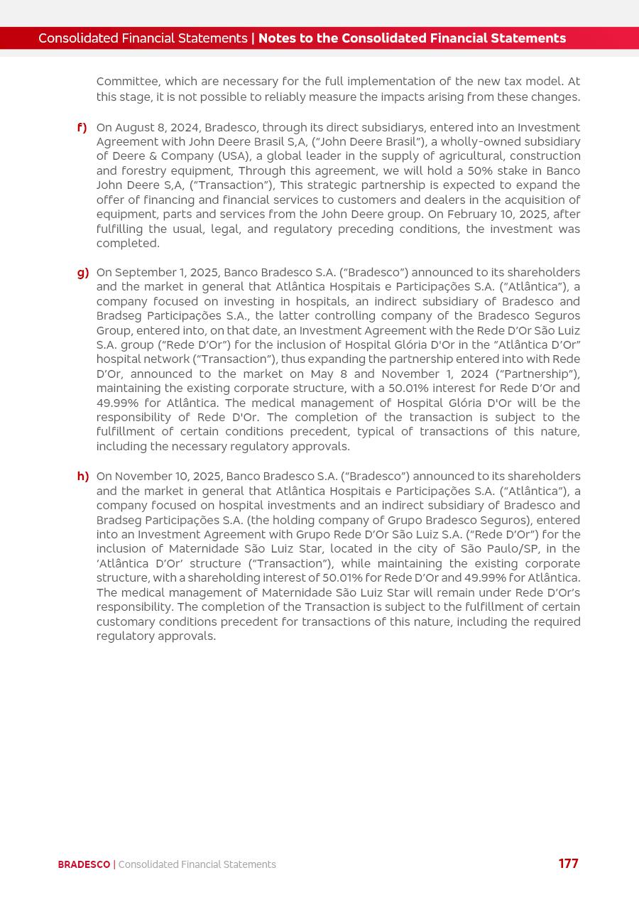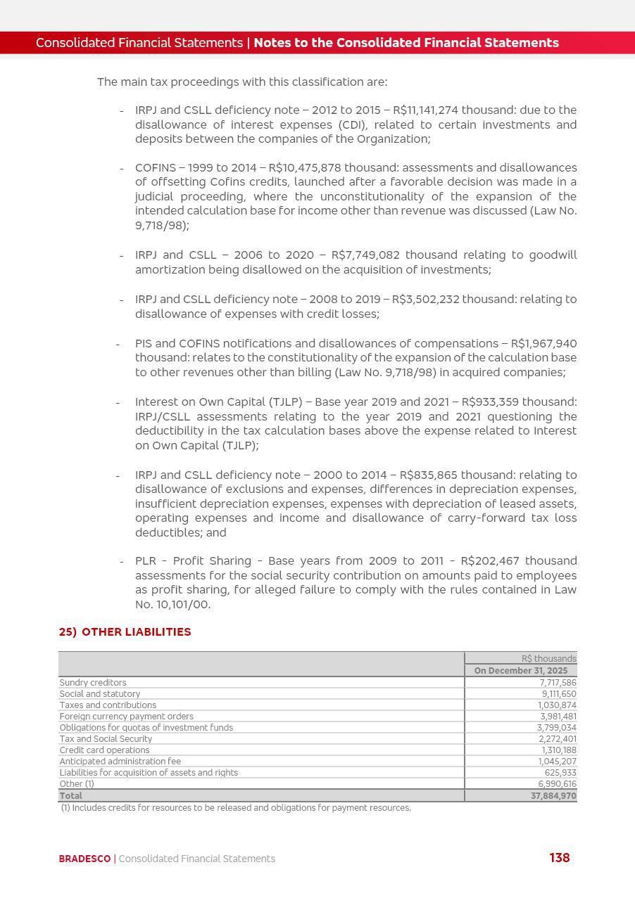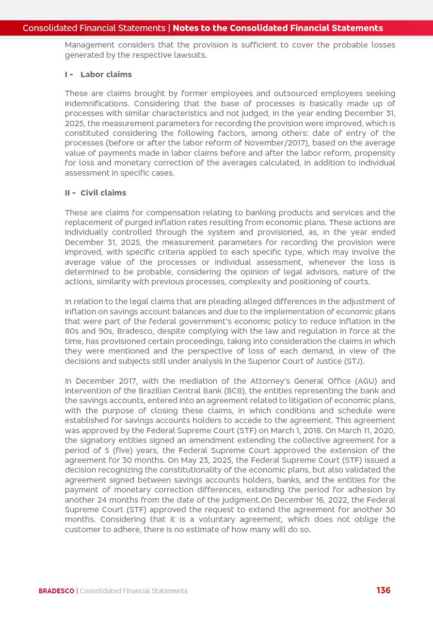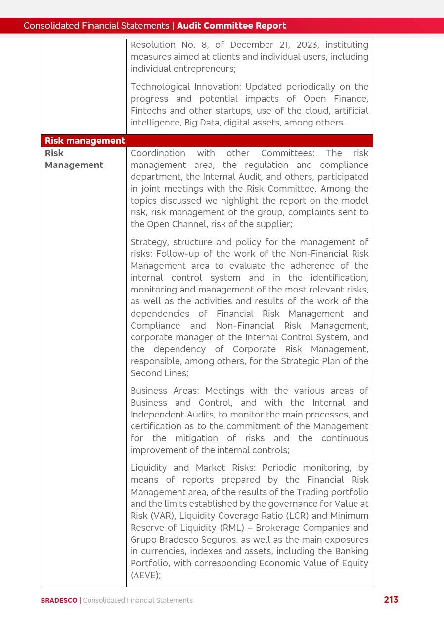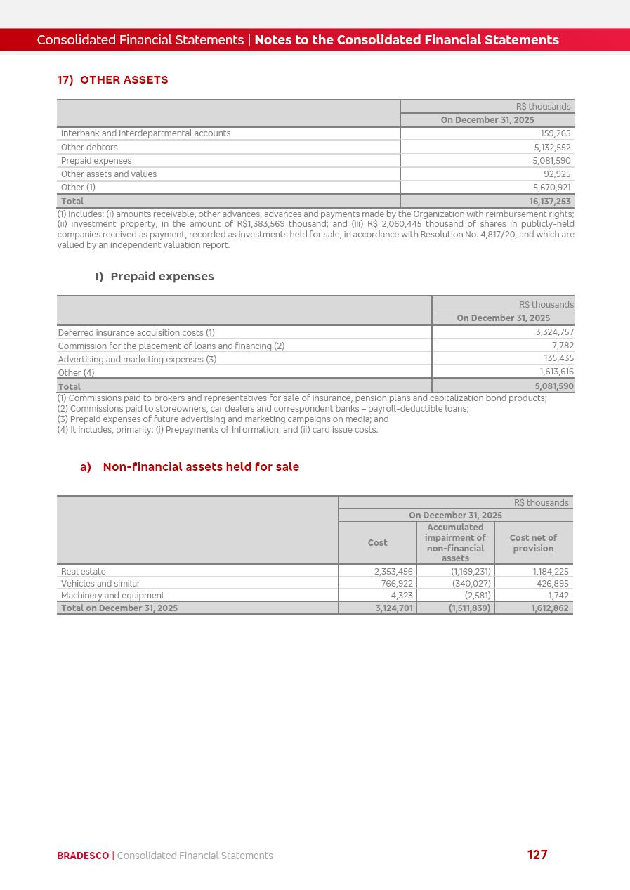 click on the items below to navigate through the document: 4Q 25 managerial analysis of results management report consolidated financial statements videoconference commenting on the results February 6th at 8:30 AM (US Eastern Time) economic and financial analysis reportBradesco | Economic and Financial Analysis Report 3 Table of Contents Managerial Analysis of Results 5 press release 6 highlights 4Q25 7 recurring net income statement 8 net interest income 9 funding sources 10 loan portfolio 11 expenses with expanded loan loss provisions 16 loan indicators 17 fee and commission income 19 operating expenses 21 Bradesco Seguros 22 basel 27 guidance, indicators & economic perspectives 28 Additional Information 29 corporate strategy | customer-centric 30 NPS 31 our people 32 sustainability 33 digital in figures | BIA 34 Bradesco Principal 35 Bradesco Expresso 36 international operations | My Account 37 Bradesco Bank 38 Ágora Investimentos 39 Digio 40 service points, clients and market share 41 return to shareholders 42 additional information 43 selected information 45 consolidated balance sheet – Bradesco 46 consolidated balance sheet – Insurance 47 statement of income – managerial vs. recurring | BRGAAP vs. IFRS comparative 48 Independent Auditor’s Report 49 Consolidated Financial Statements 53 Bradesco | Economic and Financial Analysis Report 4 Some numbers included in this Report have been subjected to rounding adjustments. As a result, some amounts indicated as total amounts in some charts may not be the arithmetic sum of the preceding numbers. Percentage variations not presented in the framework of this report, are related, in their majority, to the low value balances compared with the other periods presented. As of January 2025, we adopted in our Financial Statements the new accounting practices established by CMN Resolutions No. 4,966 and No. 4,975. For management purposes, we kept the information of the previous periods as already disclosed, which do not present relevant differences in the historical analysis of the results. For some credit indicators, when mentioned, we carry out historical data for comparability purposes on a pro-forma basis. In our financial statements the Organization opted for the exemption provided by the Standard not to resubmit comparative information from previous periods resulting from the changes. Managerial Analysis of Results Bradesco | Economic and Financial Analysis Report 6 press release Bradesco remains committed to expand profitability gradually and safely through the accelerated execution of the transformation plan. Our priority is to ensure the sustainability of the business by growing responsibly, keeping the cost of credit under control, investing in the transformation of the Organization, and reinforcing a customer centric approach in all decisions. In 2025, our commercial traction was reflected in impressive revenue growth across all of our core product lines. We maintained our risk appetite, new credit vintages with high quality and delinquency ratios under control. As a result, in 4Q25 we reported a Return on Equity (ROE) higher than our cost of capital, with eight straight quarters of profitability growth. Investments in our transformation have placed temporary pressure on expenses, but they are intended to boost our competitiveness in the short, medium and long term. The integration between "change the bank" and "run the bank" is intensifying, as the benefits of transformation continue to enhance operational performance and make it more sustainable. Net income was R$6.5 billion in 4Q25, resulting in ROAE of 15.2%, generating a profit of R$24.7 billion in 2025 and growth of 26.1% in 2025 vs. 2024. Total revenues topped R$36.1 billion for the quarter, growing 2.9% q/q and 9.8% y/y, driven by the performance of the net interest income and fee and commission income. Net interest income came to R$19.2 billion for the quarter, expanding 2.9% q/q and 13.2% y/y. Client NII reached R$19.1 billion, rising 2.7% q/q and 18.4% y/y, mainly due to the effect of the increase in the loan portfolio and efficiency on the funding margin. Market NII totaled R$126 million in 4Q25, in line with expectations, bringing the full-year figure to R$975 million. The expanded loan portfolio came to R$1.089 trillion, growing 11.0% y/y and 5.3% q/q in December 2025, reflecting our traction in the MSME and Individuals segments, and operations with Large Companies carried out at the end of the year. In December 2025, the delinquency ratio (over 90 days NPL) remained stable. Problem assets in the restructured portfolio fell by R$2.4 billion versus the prior quarter and R$10.5 billion in the annual comparison, while cured assets rose 10.7% q/q and 58.2% y/y. Consequently, stage 3 operations declined throughout 2025, with a 40 bps reduction in the last quarter. The cost of credit retreated slightly from 3.3% in 3Q25 to 3.2% in 4Q25, reflecting the quality of the concession and growth of the loan portfolio over the period. Fee and commission income performed strongly, growing 4.6% q/q and 8.0% y/y. The positive standouts over the quarter included capital market, card income and loan operations. The operational performance from insurance operations generated an income of R$5.6 billion (-1.0% q/q and +2.1% y/y) and net income of R$2.8 billion (10.7% q/q and 10.6% y/y). The ROAE of the insurance company was 24.3% in 4Q25. In 2025, the insurance earnings came to R$10.1 billion. Our efficiency ratio (expenses/revenues) improved by 2.2 p.p. over the year, attributed to a 13.2% increase in revenues and sound management of expenses. In 2025, operating expenses rose by 8.5% while administrative and personnel expenses saw a 5.0% bump, which includes the impact of the collective bargaining agreement of 5.68% and increase in profit-sharing expenditures. Temporary pressures seen throughout the year came mainly from our transformation initiatives and a strategic strengthening of the 