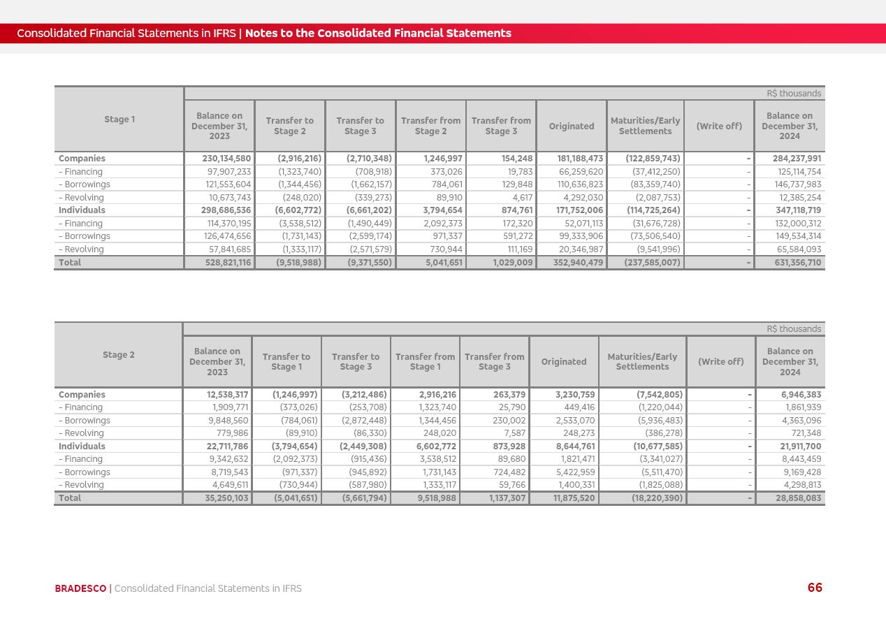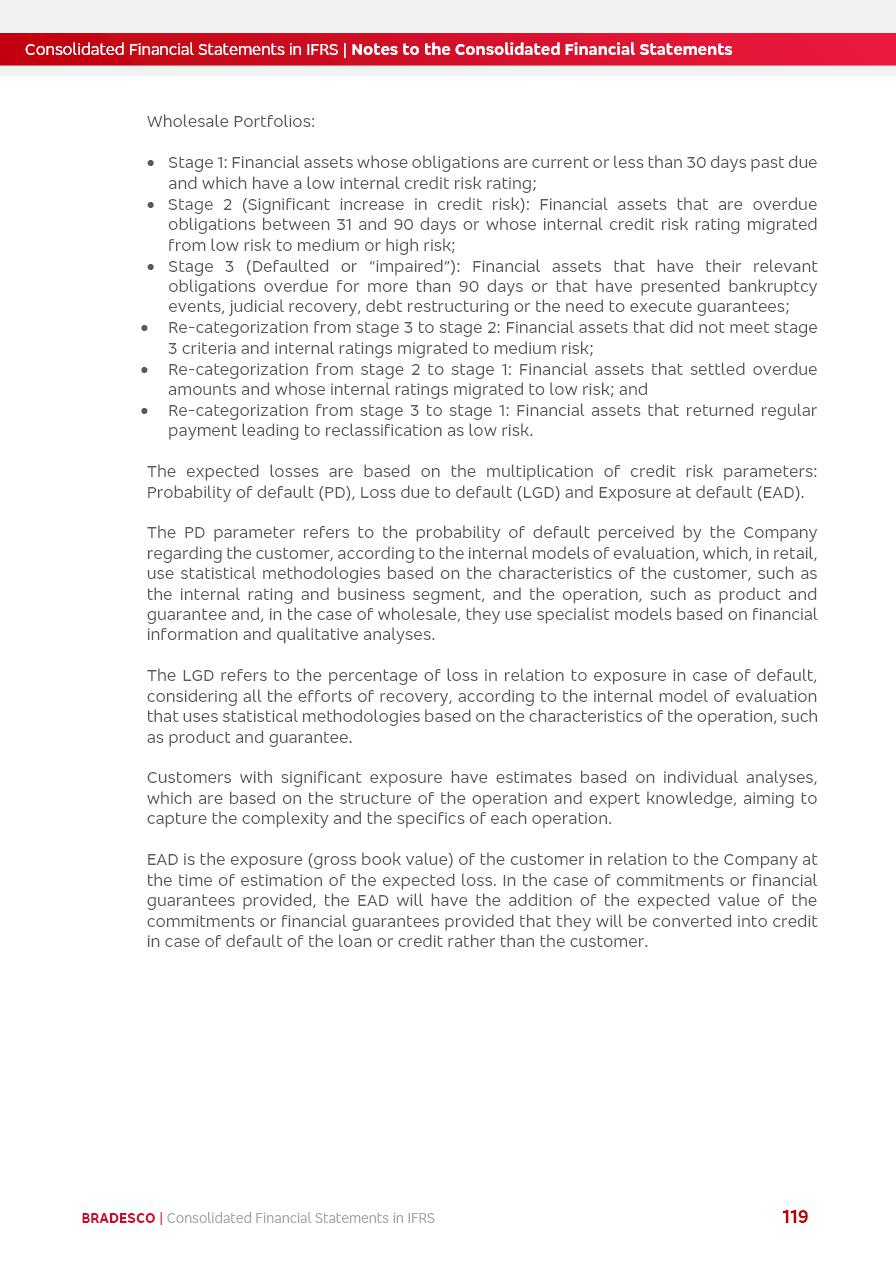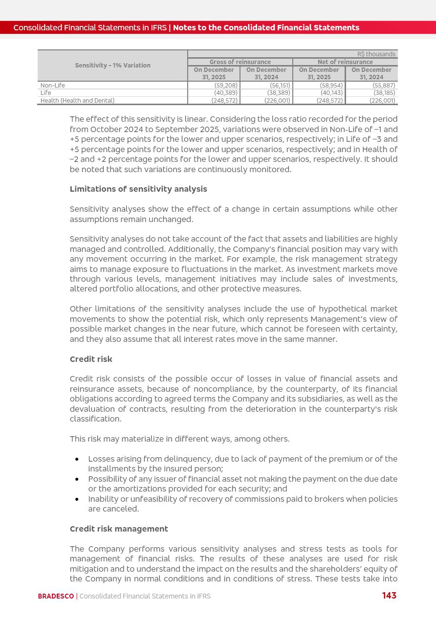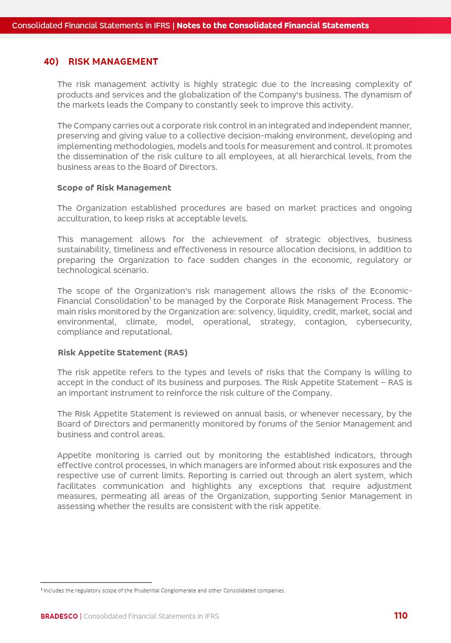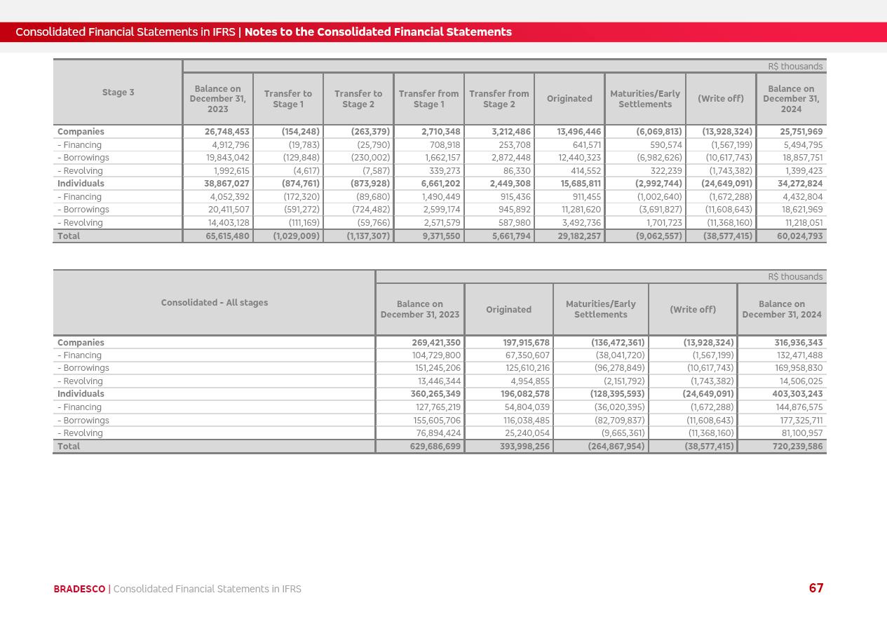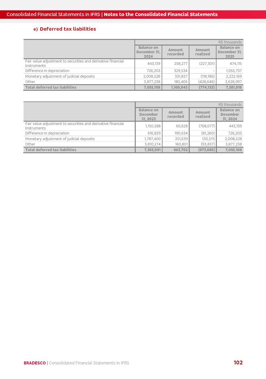 Consolidated Financial Statements 2025 in accordance with International Financial Reporting Standards (IFRS) issued by the International Accounting Standards Boards (IASB) Management Report BRADESCO | Management Report | Consolidated Financial Statements in IFRS 2 Message to Shareholders Throughout our trajectory, we have maintained a firm commitment to serve with excellence, strengthening the brand and reaffirming the relationship of partnership and trust with millions of Brazilians. In 2025, a year marked by a still challenging economic environment and constant changes in the market, our adaptability, resilience and strategic focus were essential. With the commitment and dedication of the teams, we moved forward with consistency in meeting the objectives, preserving the solidity of the operations and expanding initiatives that contribute to the sustainable development of the Country. We believe in the potential of Brazil and the strength of its people, which, with determination, continues to drive economic and social growth. In line with the commitment to transparency and democratization of information, we present in this report a detailed view of the main developments and results achieved in the fiscal year, reinforcing our ethical posture and corporate responsibility. To our shareholders, clients and partners, we thank you for the continued support, the trust in our decisions and the preference that motivates us to move forward, always focusing on delivering value and building an even more promising future. Cidade de Deus, February 04, 2026 Board of Directors and Board of Executive Officers Management Report BRADESCO | Management Report | Consolidated Financial Statements in IFRS 3 Dear Shareholders, We hereby present the Consolidated Financial Statements of Banco Bradesco S.A. related to 2025. We follow all International Financial Reporting Standards (IFRS) practices issued by the International Accounting Standards Board (IASB). Economic Comment The Brazilian economy slowed down in the second half of 2025. The household consumption lost traction throughout the year, responding to the restrictive monetary policy. One-off factors may lead to some re-acceleration of the GDP at the beginning of the year, but our projections indicate a weaker growth in 2026. Inflation closed 2025 within the target range two years above it, with important contributions from exchange rate valuation and accommodation of the economic activity. We believe that deflation will continue in the coming months, allowing the Central Bank of Brazil to start cutting the basic interest rate later this quarter. Uncertainties remain high on the international scene. While the US economy remains resilient, doubts about the US economic policy represent an important risk vector for the global economy. This context is aggravated by geopolitical disputes around the world. Highlights in the period In November 2025, Banco Bradesco S.A. (“Bradesco”) noticed to its shareholders and the market in general the Notice to the Market that Atlântica Hospitais and Participações S.A., a company focused on investment in hospitals, indirectly controlled by Bradesco and Bradseg Participações S.A., firmed an Investment Agreement with Rede D’Or São Luiz S.A. Group for the inclusion of Maternidade São Luiz Star, thus expanding the partnership firmed with Rede D’Or. The expansion of the Partnership is aligned with the strategy of Atlântica to invest in the health sector value chain through partnerships with players established in the operation of hospitals. In December 2025, Bradesco noticed to its shareholders and the market in general, through a Relevant Fact, that the proposal of the Company’s Board of Directors was approved for the payment of complementary interest on own equity, in the total amount of R$3,9 billion, of which R$0.351190748 per common share and R$0.386309823 per preferred share. Closing the fourth quarter of 2025, the Annual Calendar of Corporate Events for 2026 was released and, through a Notice to Shareholders, the planned schedule of the monthly payment of interest on own equity for the fiscal year of 2026, in accordance with the Systematic Monthly Payment of Interest on Own Equity. The disclosure of both documents reinforces Bradesco’s commitment to transparency, predictability and strategic alignment with shareholders and other stakeholders. BRADESCO | Management Report | Consolidated Financial Statements in IFRS 4 . highlighted information 2025 TOTAL DEPOSITS (Dec25 vs. Dec24) R$728.0 bi (+12.2%) R$23.9 bi R$178.4 bi +5.9% y/y EARNINGS PER SHARE BOOK VALUE PER SHARE BOOK NET INCOME R$2.13 common R$2.35 preferred R$16.87 SHAREHOLDERS’ EQUITY (1) MARKET VALUE TIER I CAPITAL R$178.7 bi 13.2% SECURITIES (Dec25 vs. Dec24) R$925.4 bi (+19.4%) FVPL: R$526.9 bi (+49.7%) FVOCI: R$139.0 bi (-11.1%) Amortized Cost: R$259.5 bi (-2.8%) EXPANDED LOAN PORTFOLIO (Dec25 vs. Dec24) R$1,089.2 bi (+11.0%) INDIVIDUALS: R$466.5 bi (+12.7%) COMPANIES: R$622.7 bi (+9.7%) ALLOWANCE FOR EXPANDED LOANS (Dec25 vs. Dec24) R$56.8 bi (-2.6%) INTEREST ON SHAREHOLDERS’ EQUITY R$14.5 bi (gross) +36.4% y/y (1) Equity attributable to shareholders of the parente. +0.8% y/y BRADESCO | Management Report | Consolidated Financial Statements in IFRS 5 Technology and innovation In two years of transformation, technology has become the core value leverage at Bradesco, providing more fluid and personalized customer experience, scalable operational efficiency with agility, security with cyber resilience and real-time prevention. With Agile@Scale, co-managed tribes between business and IT have increased efficiency, quality and value deliveries. In the period, we reduced the lead time by 43% and increased productivity by increasing the volume of deliveries to the business by 118% (vs. Dec23). The implementation of the AI First plan and the consolidation of the Bridge platform have democratized the use of GenAI in products and channels, with gov