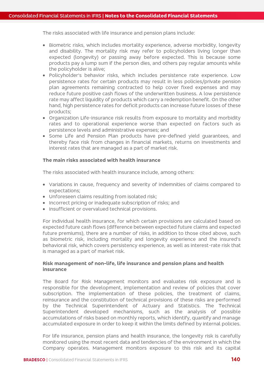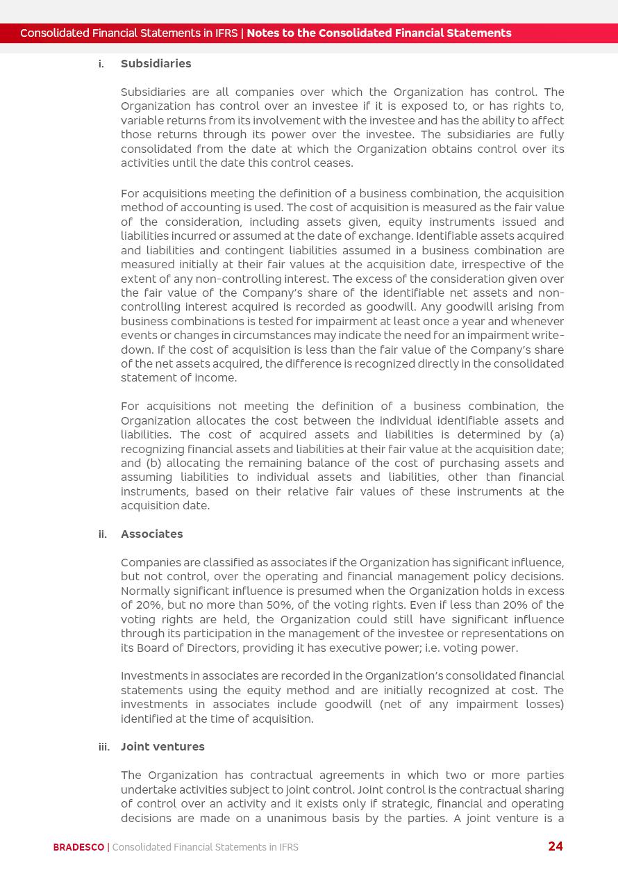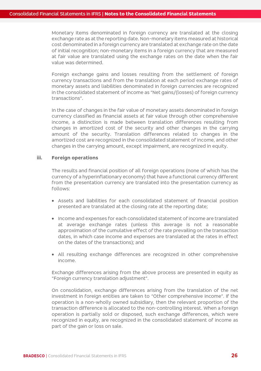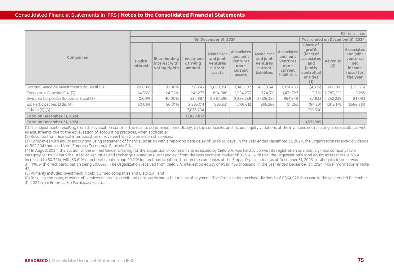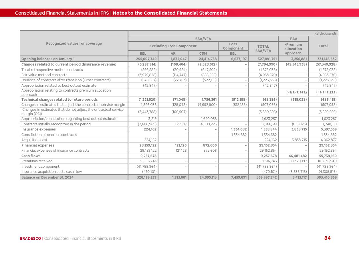 Consolidated Financial Statements 2025 in accordance with International Financial Reporting Standards (IFRS) issued by the International Accounting Standards Boards (IASB) Management Report BRADESCO | Management Report | Consolidated Financial Statements in IFRS 2 Message to Shareholders Throughout our trajectory, we have maintained a firm commitment to serve with excellence, strengthening the brand and reaffirming the relationship of partnership and trust with millions of Brazilians. In 2025, a year marked by a still challenging economic environment and constant changes in the market, our adaptability, resilience and strategic focus were essential. With the commitment and dedication of the teams, we moved forward with consistency in meeting the objectives, preserving the solidity of the operations and expanding initiatives that contribute to the sustainable development of the Country. We believe in the potential of Brazil and the strength of its people, which, with determination, continues to drive economic and social growth. In line with the commitment to transparency and democratization of information, we present in this report a detailed view of the main developments and results achieved in the fiscal year, reinforcing our ethical posture and corporate responsibility. To our shareholders, clients and partners, we thank you for the continued support, the trust in our decisions and the preference that motivates us to move forward, always focusing on delivering value and building an even more promising future. Cidade de Deus, February 04, 2026 Board of Directors and Board of Executive Officers Management Report BRADESCO | Management Report | Consolidated Financial Statements in IFRS 3 Dear Shareholders, We hereby present the Consolidated Financial Statements of Banco Bradesco S.A. related to 2025. We follow all International Financial Reporting Standards (IFRS) practices issued by the International Accounting Standards Board (IASB). Economic Comment The Brazilian economy slowed down in the second half of 2025. The household consumption lost traction throughout the year, responding to the restrictive monetary policy. One-off factors may lead to some re-acceleration of the GDP at the beginning of the year, but our projections indicate a weaker growth in 2026. Inflation closed 2025 within the target range two years above it, with important contributions from exchange rate valuation and accommodation of the economic activity. We believe that deflation will continue in the coming months, allowing the Central Bank of Brazil to start cutting the basic interest rate later this quarter. Uncertainties remain high on the international scene. While the US economy remains resilient, doubts about the US economic policy represent an important risk vector for the global economy. This context is aggravated by geopolitical disputes around the world. Highlights in the period In November 2025, Banco Bradesco S.A. (“Bradesco”) noticed to its shareholders and the market in general the Notice to the Market that Atlântica Hospitais and Participações S.A., a company focused on investment in hospitals, indirectly controlled by Bradesco and Bradseg Participações S.A., firmed an Investment Agreement with Rede D’Or São Luiz S.A. Group for the inclusion of Maternidade São Luiz Star, thus expanding the partnership firmed with Rede D’Or. The expansion of the Partnership is aligned with the strategy of Atlântica to invest in the health sector value chain through partnerships with players established in the operation of hospitals. In December 2025, Bradesco noticed to its shareholders and the market in general, through a Relevant Fact, that the proposal of the Company’s Board of Directors was approved for the payment of complementary interest on own equity, in the total amount of R$3,9 billion, of which R$0.351190748 per common share and R$0.386309823 per preferred share. Closing the fourth quarter of 2025, the Annual Calendar of Corporate Events for 2026 was released and, through a Notice to Shareholders, the planned schedule of the monthly payment of interest on own equity for the fiscal year of 2026, in accordance with the Systematic Monthly Payment of Interest on Own Equity. The disclosure of both documents reinforces Bradesco’s commitment to transparency, predictability and strategic alignment with shareholders and other stakeholders. BRADESCO | Management Report | Consolidated Financial Statements in IFRS 4 . highlighted information 2025 TOTAL DEPOSITS (Dec25 vs. Dec24) R$728.0 bi (+12.2%) R$23.9 bi R$178.4 bi +5.9% y/y EARNINGS PER SHARE BOOK VALUE PER SHARE BOOK NET INCOME R$2.13 common R$2.35 preferred R$16.87 SHAREHOLDERS’ EQUITY (1) MARKET VALUE TIER I CAPITAL R$178.7 bi 13.2% SECURITIES (Dec25 vs. Dec24) R$925.4 bi (+19.4%) FVPL: R$526.9 bi (+49.7%) FVOCI: R$139.0 bi (-11.1%) Amortized Cost: R$259.5 bi (-2.8%) EXPANDED LOAN PORTFOLIO (Dec25 vs. Dec24) R$1,089.2 bi (+11.0%) INDIVIDUALS: R$466.5 bi (+12.7%) COMPANIES: R$622.7 bi (+9.7%) ALLOWANCE FOR EXPANDED LOANS (Dec25 vs. Dec24) R$56.8 bi (-2.6%) INTEREST ON SHAREHOLDERS’ EQUITY R$14.5 bi (gross) +36.4% y/y (1) Equity attributable to shareholders of the parente. +0.8% y/y BRADESCO | Management Report | Consolidated Financial Statements in IFRS 5 Technology and innovation In two years of transformation, technology has become the core value leverage at Bradesco, providing more fluid and personalized customer experience, scalable operational efficiency with agility, security with cyber resilience and real-time prevention. With Agile@Scale, co-managed tribes between business and IT have increased efficiency, quality and value deliveries. In the period, we reduced the lead time by 43% and increased productivity by increasing the volume of deliveries to the business by 118% (vs. Dec23). The implementation of the AI First plan and the consolidation of the Bridge platform have democratized the use of GenAI in products and channels, with gov