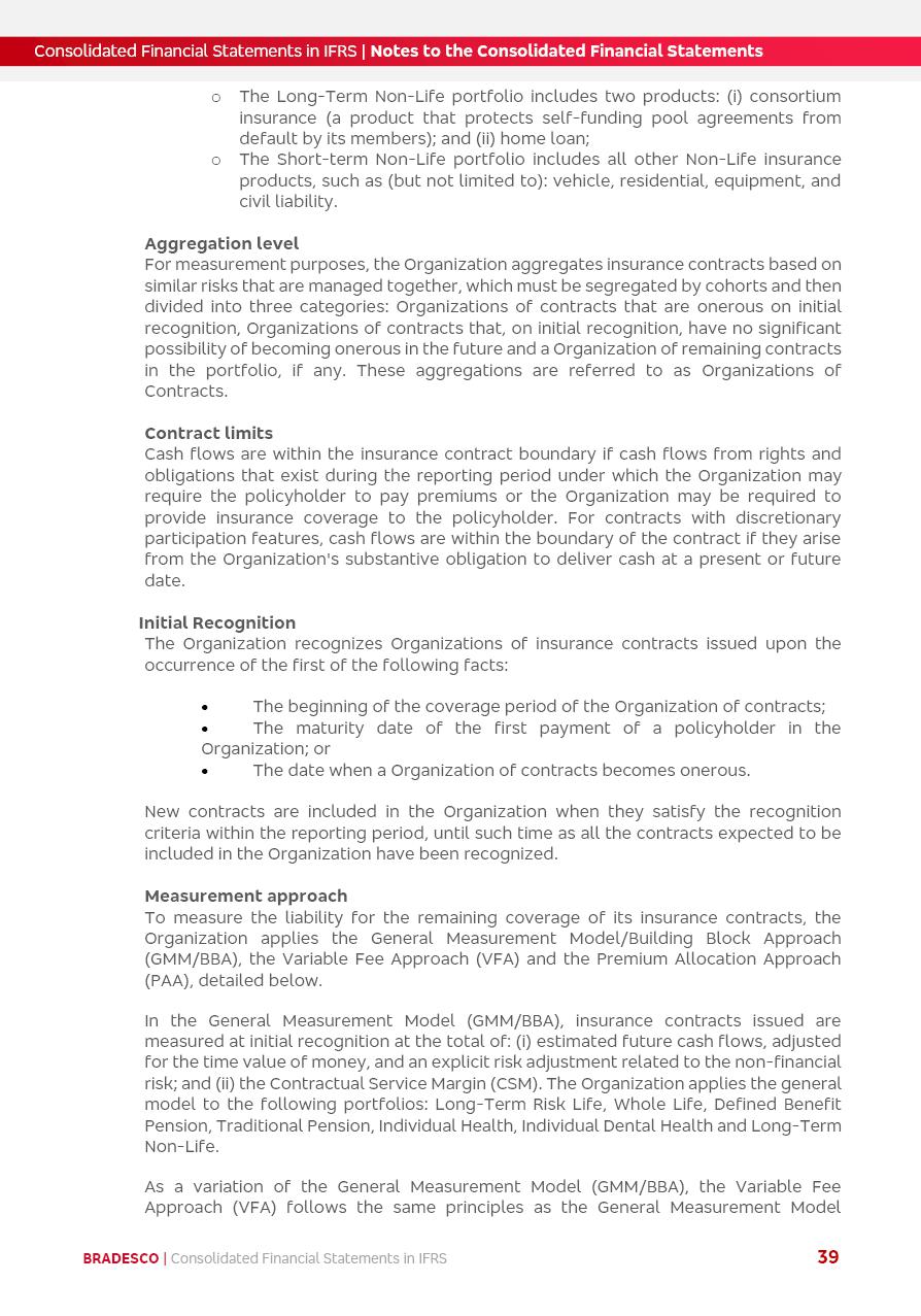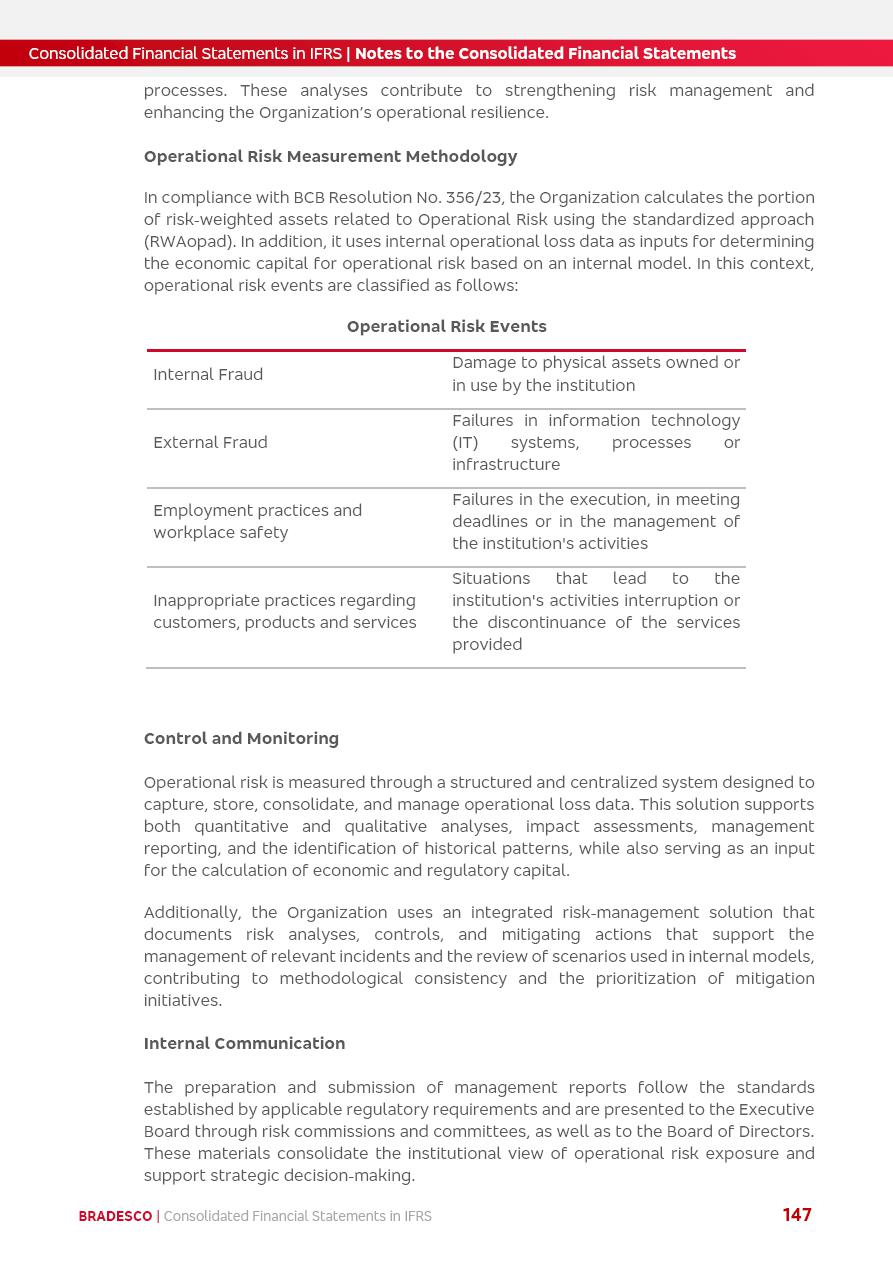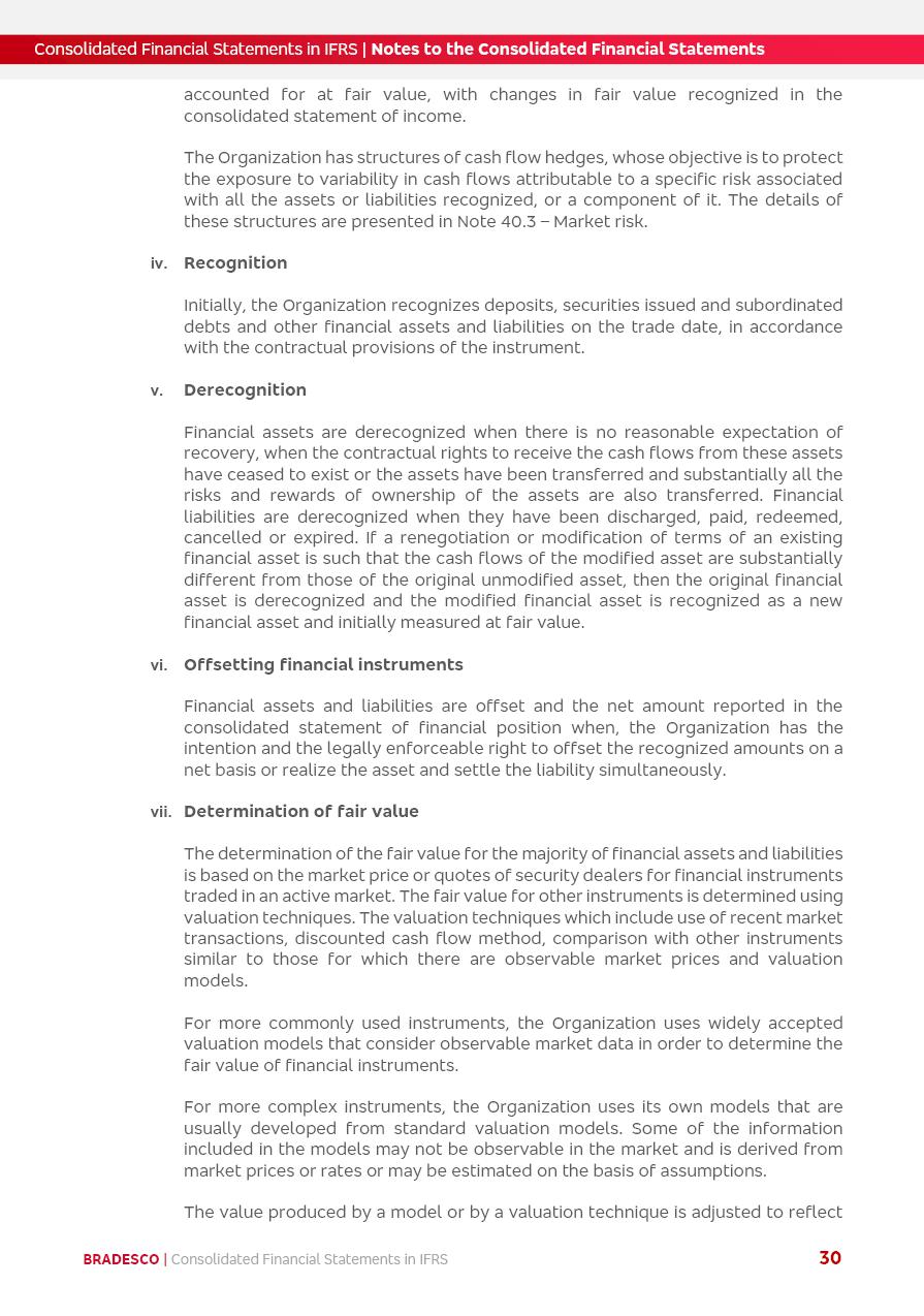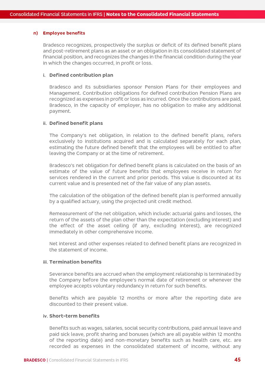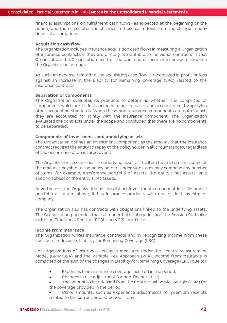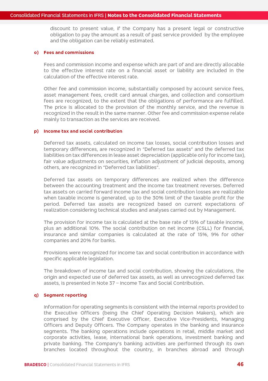 Consolidated Financial Statements 2025 in accordance with International Financial Reporting Standards (IFRS) issued by the International Accounting Standards Boards (IASB) Management Report BRADESCO | Management Report | Consolidated Financial Statements in IFRS 2 Message to Shareholders Throughout our trajectory, we have maintained a firm commitment to serve with excellence, strengthening the brand and reaffirming the relationship of partnership and trust with millions of Brazilians. In 2025, a year marked by a still challenging economic environment and constant changes in the market, our adaptability, resilience and strategic focus were essential. With the commitment and dedication of the teams, we moved forward with consistency in meeting the objectives, preserving the solidity of the operations and expanding initiatives that contribute to the sustainable development of the Country. We believe in the potential of Brazil and the strength of its people, which, with determination, continues to drive economic and social growth. In line with the commitment to transparency and democratization of information, we present in this report a detailed view of the main developments and results achieved in the fiscal year, reinforcing our ethical posture and corporate responsibility. To our shareholders, clients and partners, we thank you for the continued support, the trust in our decisions and the preference that motivates us to move forward, always focusing on delivering value and building an even more promising future. Cidade de Deus, February 04, 2026 Board of Directors and Board of Executive Officers Management Report BRADESCO | Management Report | Consolidated Financial Statements in IFRS 3 Dear Shareholders, We hereby present the Consolidated Financial Statements of Banco Bradesco S.A. related to 2025. We follow all International Financial Reporting Standards (IFRS) practices issued by the International Accounting Standards Board (IASB). Economic Comment The Brazilian economy slowed down in the second half of 2025. The household consumption lost traction throughout the year, responding to the restrictive monetary policy. One-off factors may lead to some re-acceleration of the GDP at the beginning of the year, but our projections indicate a weaker growth in 2026. Inflation closed 2025 within the target range two years above it, with important contributions from exchange rate valuation and accommodation of the economic activity. We believe that deflation will continue in the coming months, allowing the Central Bank of Brazil to start cutting the basic interest rate later this quarter. Uncertainties remain high on the international scene. While the US economy remains resilient, doubts about the US economic policy represent an important risk vector for the global economy. This context is aggravated by geopolitical disputes around the world. Highlights in the period In November 2025, Banco Bradesco S.A. (“Bradesco”) noticed to its shareholders and the market in general the Notice to the Market that Atlântica Hospitais and Participações S.A., a company focused on investment in hospitals, indirectly controlled by Bradesco and Bradseg Participações S.A., firmed an Investment Agreement with Rede D’Or São Luiz S.A. Group for the inclusion of Maternidade São Luiz Star, thus expanding the partnership firmed with Rede D’Or. The expansion of the Partnership is aligned with the strategy of Atlântica to invest in the health sector value chain through partnerships with players established in the operation of hospitals. In December 2025, Bradesco noticed to its shareholders and the market in general, through a Relevant Fact, that the proposal of the Company’s Board of Directors was approved for the payment of complementary interest on own equity, in the total amount of R$3,9 billion, of which R$0.351190748 per common share and R$0.386309823 per preferred share. Closing the fourth quarter of 2025, the Annual Calendar of Corporate Events for 2026 was released and, through a Notice to Shareholders, the planned schedule of the monthly payment of interest on own equity for the fiscal year of 2026, in accordance with the Systematic Monthly Payment of Interest on Own Equity. The disclosure of both documents reinforces Bradesco’s commitment to transparency, predictability and strategic alignment with shareholders and other stakeholders. BRADESCO | Management Report | Consolidated Financial Statements in IFRS 4 . highlighted information 2025 TOTAL DEPOSITS (Dec25 vs. Dec24) R$728.0 bi (+12.2%) R$23.9 bi R$178.4 bi +5.9% y/y EARNINGS PER SHARE BOOK VALUE PER SHARE BOOK NET INCOME R$2.13 common R$2.35 preferred R$16.87 SHAREHOLDERS’ EQUITY (1) MARKET VALUE TIER I CAPITAL R$178.7 bi 13.2% SECURITIES (Dec25 vs. Dec24) R$925.4 bi (+19.4%) FVPL: R$526.9 bi (+49.7%) FVOCI: R$139.0 bi (-11.1%) Amortized Cost: R$259.5 bi (-2.8%) EXPANDED LOAN PORTFOLIO (Dec25 vs. Dec24) R$1,089.2 bi (+11.0%) INDIVIDUALS: R$466.5 bi (+12.7%) COMPANIES: R$622.7 bi (+9.7%) ALLOWANCE FOR EXPANDED LOANS (Dec25 vs. Dec24) R$56.8 bi (-2.6%) INTEREST ON SHAREHOLDERS’ EQUITY R$14.5 bi (gross) +36.4% y/y (1) Equity attributable to shareholders of the parente. +0.8% y/y BRADESCO | Management Report | Consolidated Financial Statements in IFRS 5 Technology and innovation In two years of transformation, technology has become the core value leverage at Bradesco, providing more fluid and personalized customer experience, scalable operational efficiency with agility, security with cyber resilience and real-time prevention. With Agile@Scale, co-managed tribes between business and IT have increased efficiency, quality and value deliveries. In the period, we reduced the lead time by 43% and increased productivity by increasing the volume of deliveries to the business by 118% (vs. Dec23). The implementation of the AI First plan and the consolidation of the Bridge platform have democratized the use of GenAI in products and channels, with gov