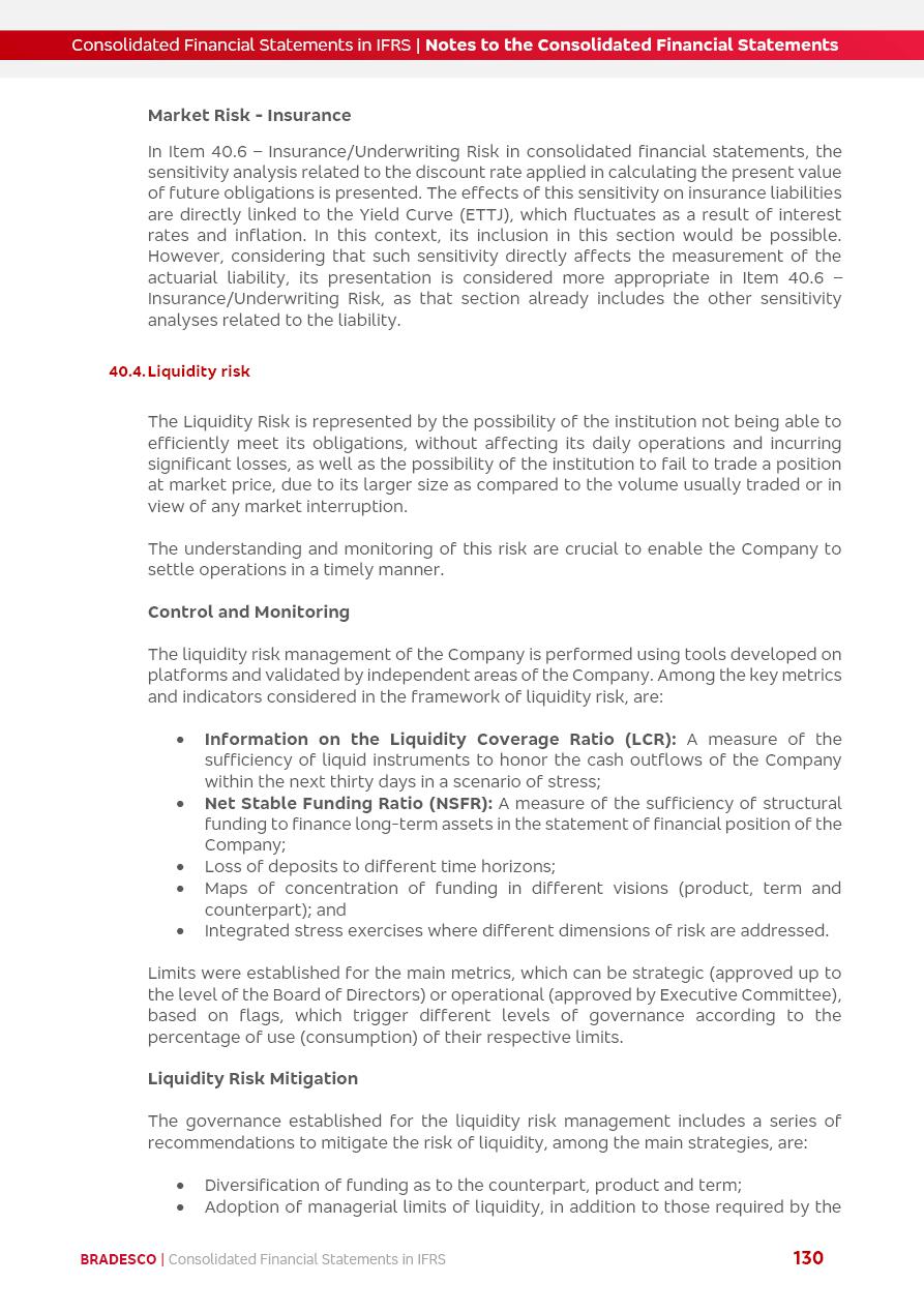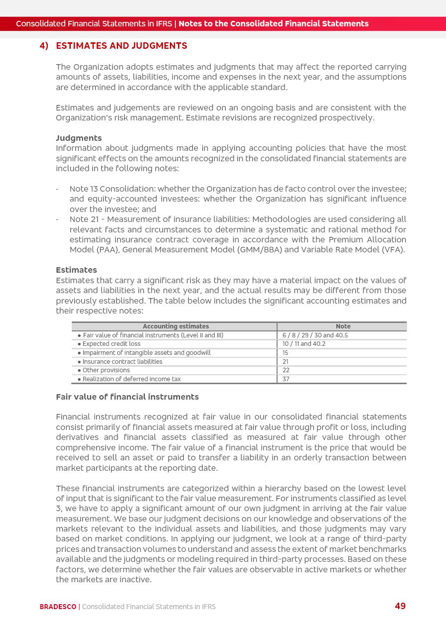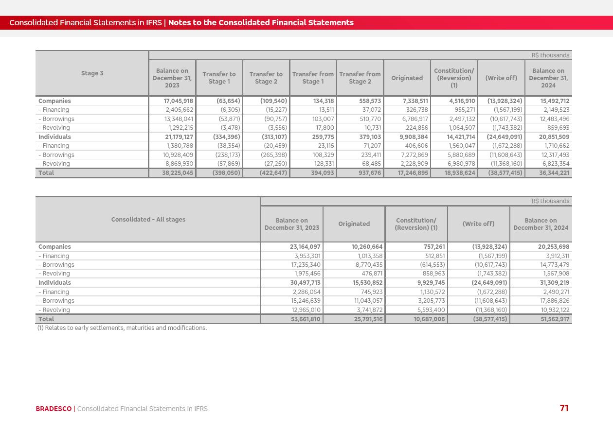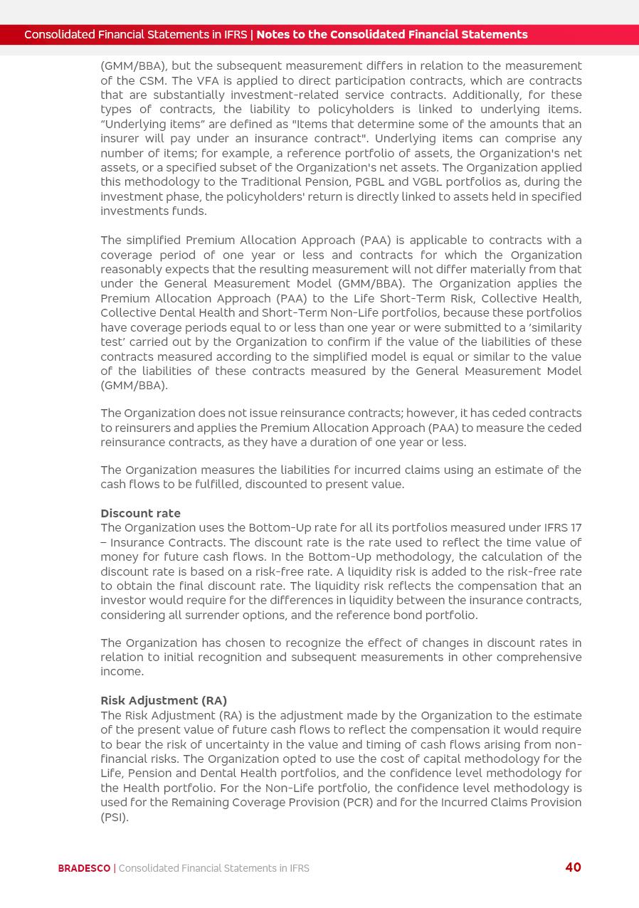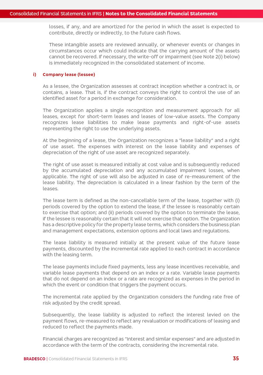 Consolidated Financial Statements 2025 in accordance with International Financial Reporting Standards (IFRS) issued by the International Accounting Standards Boards (IASB) Management Report BRADESCO | Management Report | Consolidated Financial Statements in IFRS 2 Message to Shareholders Throughout our trajectory, we have maintained a firm commitment to serve with excellence, strengthening the brand and reaffirming the relationship of partnership and trust with millions of Brazilians. In 2025, a year marked by a still challenging economic environment and constant changes in the market, our adaptability, resilience and strategic focus were essential. With the commitment and dedication of the teams, we moved forward with consistency in meeting the objectives, preserving the solidity of the operations and expanding initiatives that contribute to the sustainable development of the Country. We believe in the potential of Brazil and the strength of its people, which, with determination, continues to drive economic and social growth. In line with the commitment to transparency and democratization of information, we present in this report a detailed view of the main developments and results achieved in the fiscal year, reinforcing our ethical posture and corporate responsibility. To our shareholders, clients and partners, we thank you for the continued support, the trust in our decisions and the preference that motivates us to move forward, always focusing on delivering value and building an even more promising future. Cidade de Deus, February 04, 2026 Board of Directors and Board of Executive Officers Management Report BRADESCO | Management Report | Consolidated Financial Statements in IFRS 3 Dear Shareholders, We hereby present the Consolidated Financial Statements of Banco Bradesco S.A. related to 2025. We follow all International Financial Reporting Standards (IFRS) practices issued by the International Accounting Standards Board (IASB). Economic Comment The Brazilian economy slowed down in the second half of 2025. The household consumption lost traction throughout the year, responding to the restrictive monetary policy. One-off factors may lead to some re-acceleration of the GDP at the beginning of the year, but our projections indicate a weaker growth in 2026. Inflation closed 2025 within the target range two years above it, with important contributions from exchange rate valuation and accommodation of the economic activity. We believe that deflation will continue in the coming months, allowing the Central Bank of Brazil to start cutting the basic interest rate later this quarter. Uncertainties remain high on the international scene. While the US economy remains resilient, doubts about the US economic policy represent an important risk vector for the global economy. This context is aggravated by geopolitical disputes around the world. Highlights in the period In November 2025, Banco Bradesco S.A. (“Bradesco”) noticed to its shareholders and the market in general the Notice to the Market that Atlântica Hospitais and Participações S.A., a company focused on investment in hospitals, indirectly controlled by Bradesco and Bradseg Participações S.A., firmed an Investment Agreement with Rede D’Or São Luiz S.A. Group for the inclusion of Maternidade São Luiz Star, thus expanding the partnership firmed with Rede D’Or. The expansion of the Partnership is aligned with the strategy of Atlântica to invest in the health sector value chain through partnerships with players established in the operation of hospitals. In December 2025, Bradesco noticed to its shareholders and the market in general, through a Relevant Fact, that the proposal of the Company’s Board of Directors was approved for the payment of complementary interest on own equity, in the total amount of R$3,9 billion, of which R$0.351190748 per common share and R$0.386309823 per preferred share. Closing the fourth quarter of 2025, the Annual Calendar of Corporate Events for 2026 was released and, through a Notice to Shareholders, the planned schedule of the monthly payment of interest on own equity for the fiscal year of 2026, in accordance with the Systematic Monthly Payment of Interest on Own Equity. The disclosure of both documents reinforces Bradesco’s commitment to transparency, predictability and strategic alignment with shareholders and other stakeholders. BRADESCO | Management Report | Consolidated Financial Statements in IFRS 4 . highlighted information 2025 TOTAL DEPOSITS (Dec25 vs. Dec24) R$728.0 bi (+12.2%) R$23.9 bi R$178.4 bi +5.9% y/y EARNINGS PER SHARE BOOK VALUE PER SHARE BOOK NET INCOME R$2.13 common R$2.35 preferred R$16.87 SHAREHOLDERS’ EQUITY (1) MARKET VALUE TIER I CAPITAL R$178.7 bi 13.2% SECURITIES (Dec25 vs. Dec24) R$925.4 bi (+19.4%) FVPL: R$526.9 bi (+49.7%) FVOCI: R$139.0 bi (-11.1%) Amortized Cost: R$259.5 bi (-2.8%) EXPANDED LOAN PORTFOLIO (Dec25 vs. Dec24) R$1,089.2 bi (+11.0%) INDIVIDUALS: R$466.5 bi (+12.7%) COMPANIES: R$622.7 bi (+9.7%) ALLOWANCE FOR EXPANDED LOANS (Dec25 vs. Dec24) R$56.8 bi (-2.6%) INTEREST ON SHAREHOLDERS’ EQUITY R$14.5 bi (gross) +36.4% y/y (1) Equity attributable to shareholders of the parente. +0.8% y/y BRADESCO | Management Report | Consolidated Financial Statements in IFRS 5 Technology and innovation In two years of transformation, technology has become the core value leverage at Bradesco, providing more fluid and personalized customer experience, scalable operational efficiency with agility, security with cyber resilience and real-time prevention. With Agile@Scale, co-managed tribes between business and IT have increased efficiency, quality and value deliveries. In the period, we reduced the lead time by 43% and increased productivity by increasing the volume of deliveries to the business by 118% (vs. Dec23). The implementation of the AI First plan and the consolidation of the Bridge platform have democratized the use of GenAI in products and channels, with gov