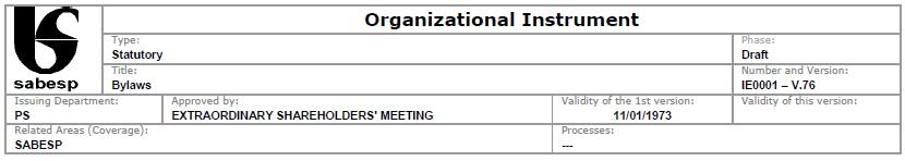 ARTICLE 1 – Companhia de Saneamento Básico do Estado de São Paulo – SABESP (“Company”) is a publicly-held company governed by these Bylaws, Federal Law 6,404, of December 15, 1976, and other applicable legal provisions.