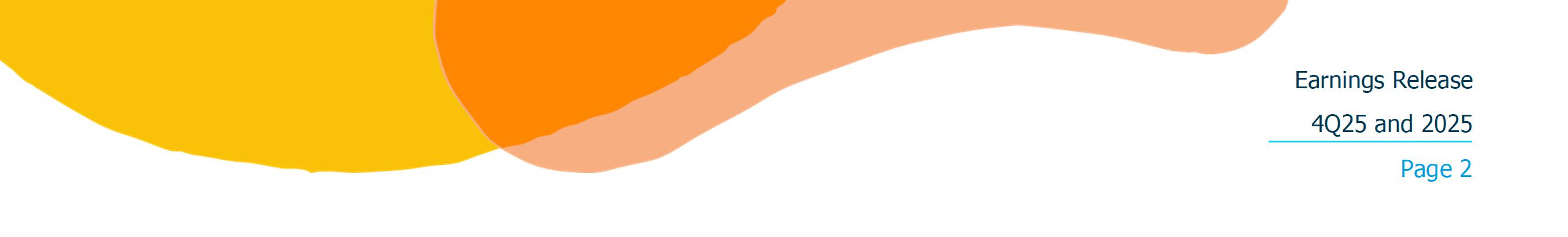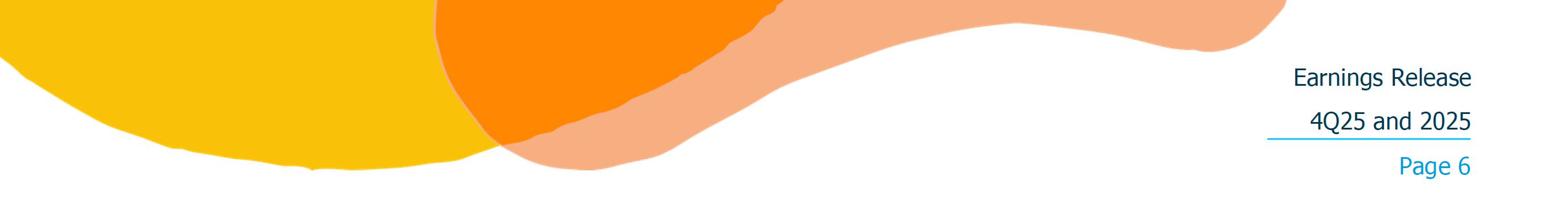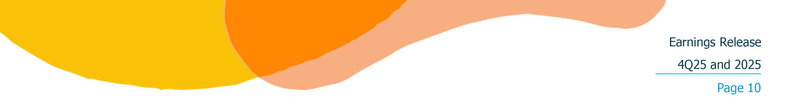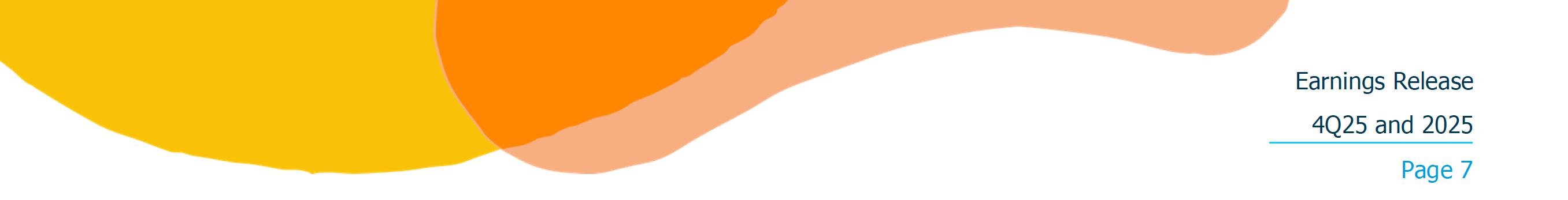 The quarter maintained the momentum of efficiency gains, with reductions in general and administrative expenses, headcount reduction, power optimization with shifts to the free market, and a lower allowance for doubtful accounts. These factors contributed to a 13% gain in Adj EBITDA, totaling R$3.4 bn in 4Q25, and offset the effect of higher benchmark rates (Selic) in financial expenses to maintain Net Income stable at R$1.9 bn y/y.