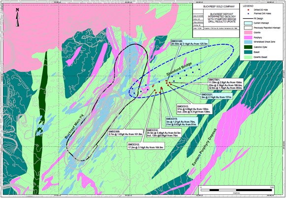 The Stamford Bridge Zone is a potentially significant shear zone and geologically similar to the Buckreef Main Zone. It is situated between the Buckreef Main Zone and the Eastern Porphyry deposit and Anfield Zone, to the Southeast (see Figure 1).