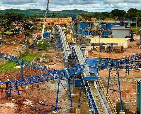 Figure 1: 2,000 tpd Processing Plant at Buckreef Gold, showing CIL tanks and conveyor feed to the ball mills