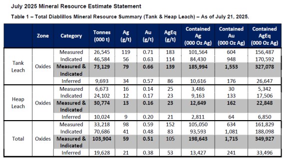 Figure 1. Diablillos Project Plan View of Mineral Resource Estimate (taken from Figure 2, AbraSilver news release dated July 29, 2025).