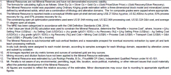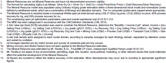 Comments on the Updated MRE. The updated Diablillos MRE reports total (i.e., tank and heap leach) measured resources of 33,218 Ktonnes @ 98 g/t Ag (105,050 Koz contained) and 0.59 g/t Au (634 Koz contained) and indicated resources of 70,686 Ktonnes @ 41 g/t Ag (93,593 Koz contained) and 0.48 g/t Au (1,081 Koz contained). In addition, the updated MRE includes total inferred resources of 19,628 Ktonnes @ 21 g/t Ag (13,427 Koz contained) and 0.38 g/t Au (241 Koz contained).