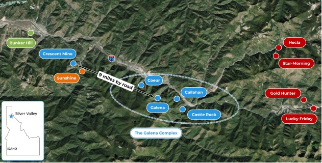 Figure 1: Location of the Crescent Mine in relation to the Galena Complex and other selected properties in Idaho's Silver Valley