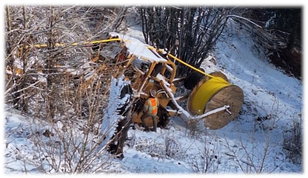 Figure 1: Connecting grid power to the hooper adit - ripping a cable trench using a D-6 CAT Cable Trencher