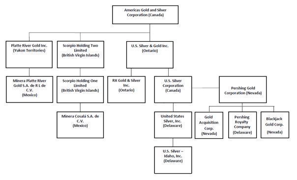 Americas Gold and Silver was incorporated as Scorpio Mining Corporation (“Scorpio Mining”) pursuant to articles of incorporation dated May 12, 1998, under the Canada Business Corporations Act with authorized share capital of an unlimited number of common shares (the “Common Shares”). On December 23, 2014, a merger of equals transaction between Scorpio Mining and U.S. Silver & Gold Inc. (“U.S. Silver”) was completed to combine their respective businesses by way of a plan of arrangement of U.S. Silver pursuant to section 182 of the Business Corporations Act (Ontario). Following the merger of equals, the combined company changed its name to Americas Silver Corporation (“Americas Silver”) by way of articles of amendment dated May 19, 2015. On April 3, 2019, Americas Silver completed its acquisition of Pershing Gold Corporation (“Pershing Gold”) pursuant to a plan of merger under Nevada law (the “Pershing Gold Transaction”). Following the completion of the Pershing Gold Transaction, the Company changed its name to “Americas Gold and Silver Corporation” pursuant to articles of amendment dated effective September 3, 2019. The Company’s principal and registered office is located at 145 King Street West, Suite 2870, Toronto, Ontario, Canada M5H 1J8.