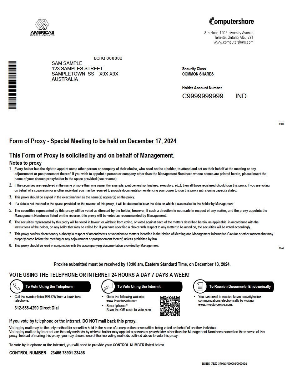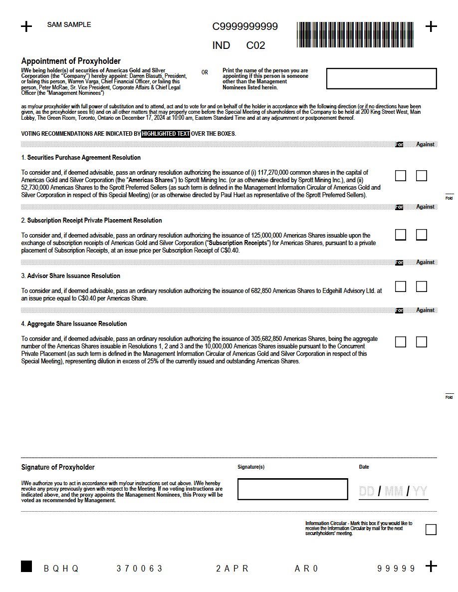 EX-99.2 3 usas_ex992.htm FORM OF PROXY usas_ex992.htm