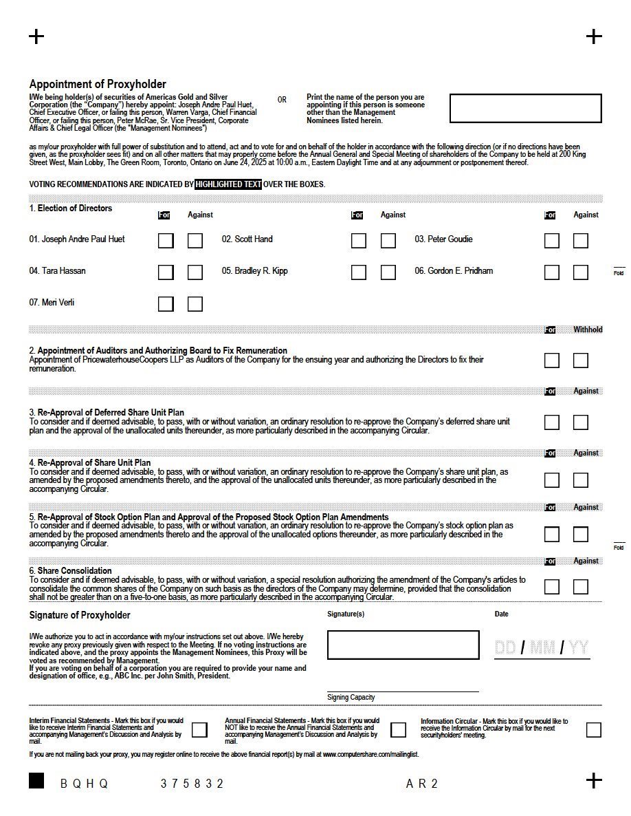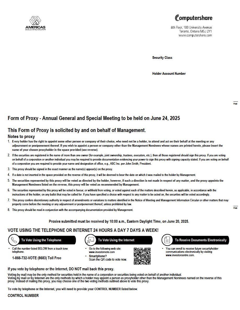 EX-99.3 4 usas_ex993.htm FORM OF PROXY usas_ex993.htm