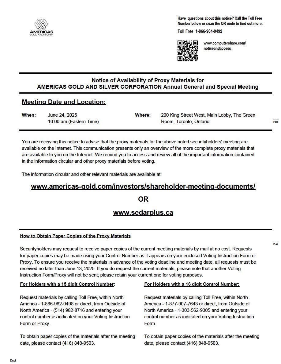 EX-99.4 5 usas_ex994.htm NOTICE OF AVAILABILITY OF PROXY MATERIALS usas_ex994.htm