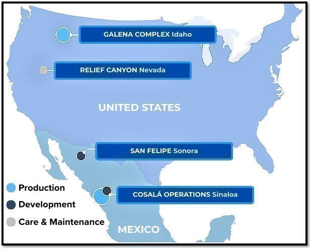 The Company is a silver-focused producer with two operations in the world's leading silver mining regions: the Galena Complex in Idaho, USA and the Cosalá Operations in Sinaloa, Mexico. The Company also owns Relief Canyon mine (“Relief Canyon”) which is currently on care and maintenance in Nevada, USA.