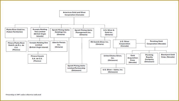 Figure 1. Americas Gold and Silver Corporation’s organizational structure.
