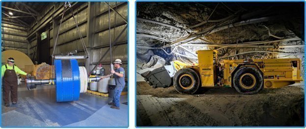 Figure 1 – Galena New Equipment Deliveries: New hoist motor shown on left and new underground loader shown on right