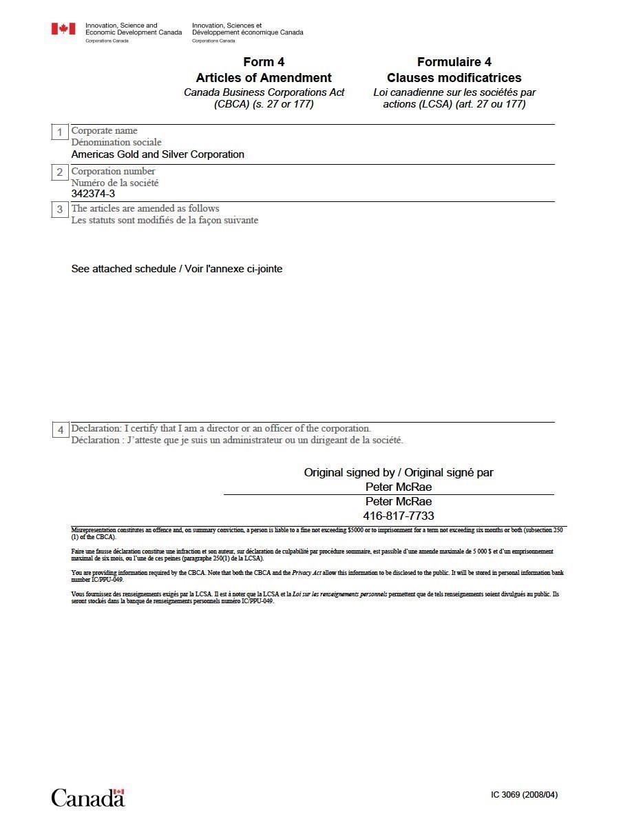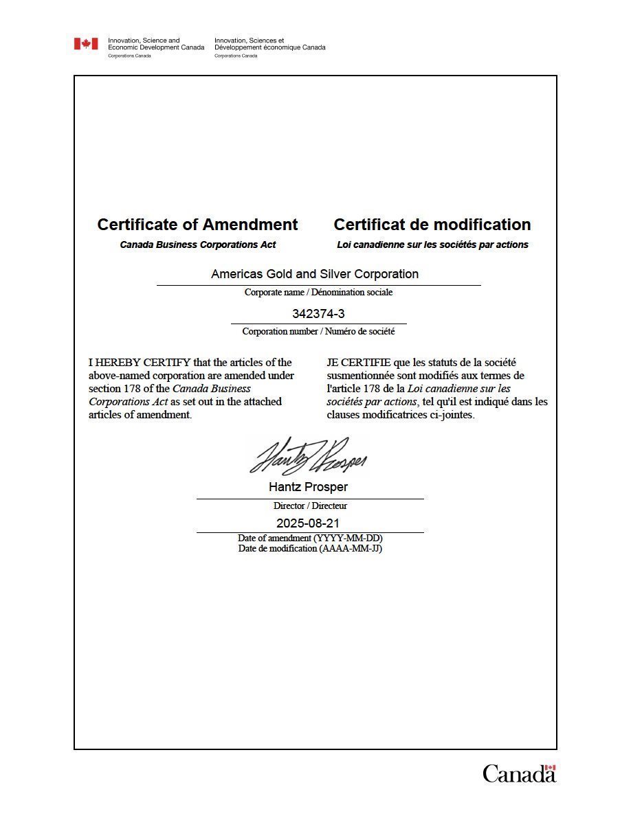 EX-99.2 3 usas_ex992.htm CERTIFICATE OF AMENDMENT usas_ex992.htm